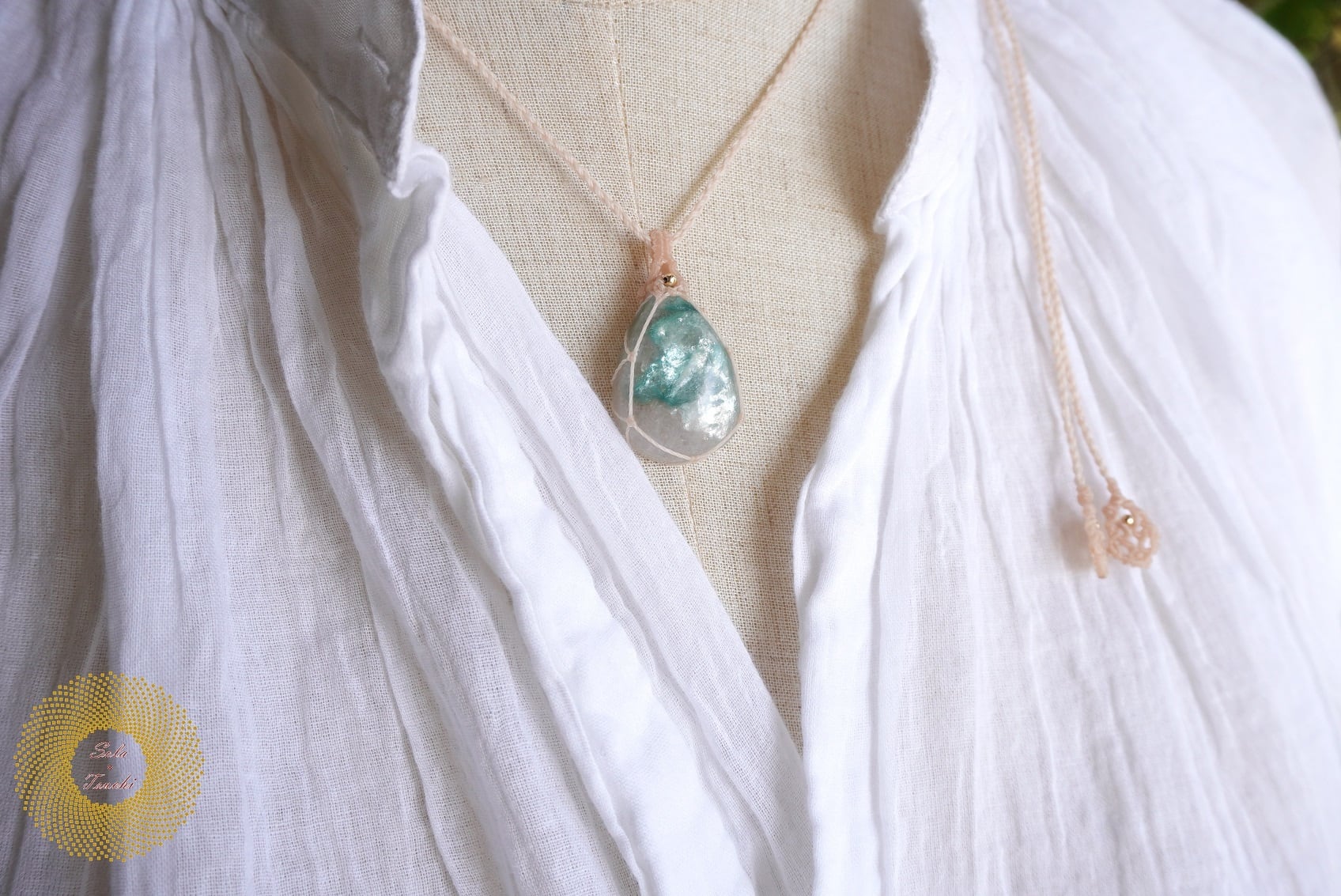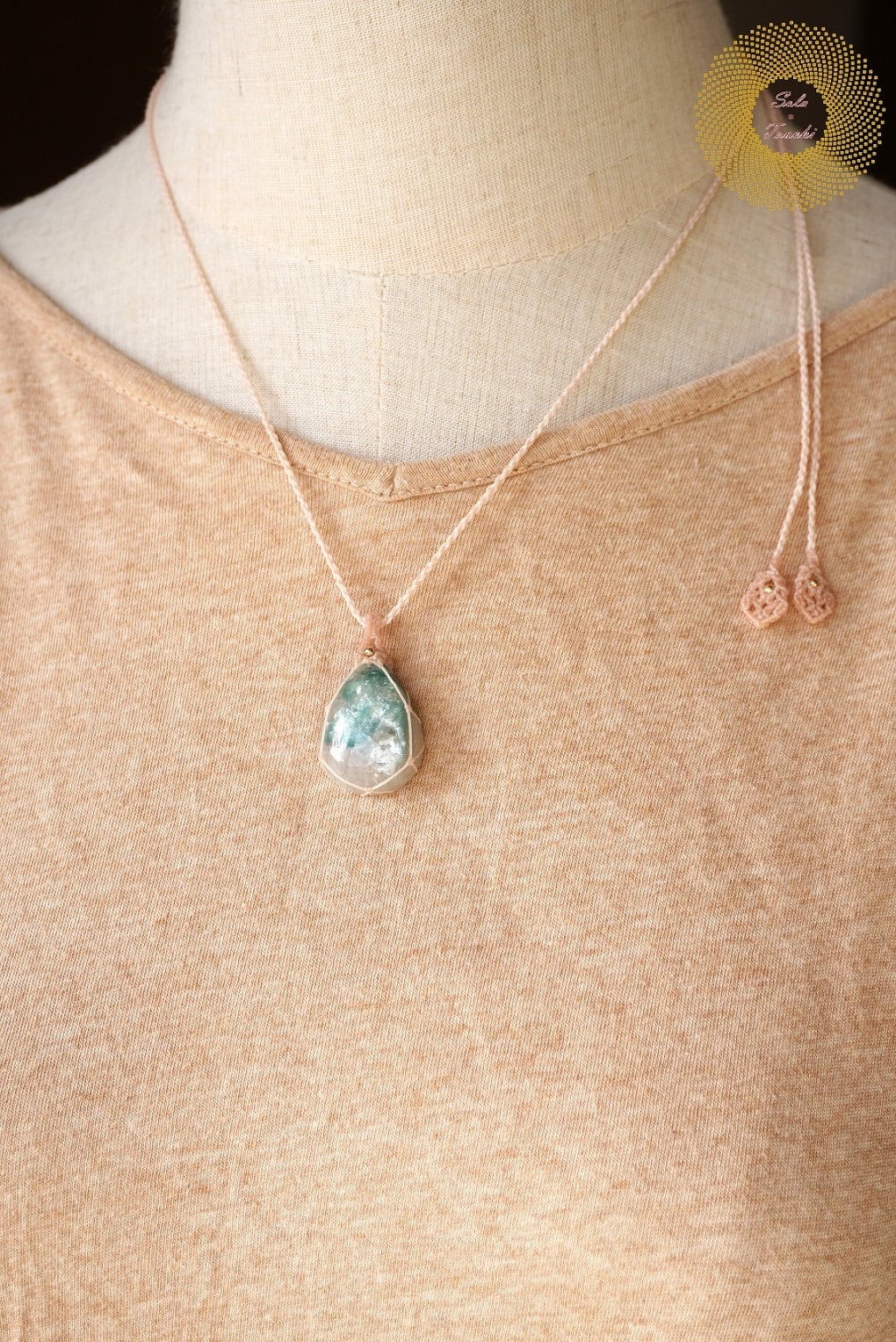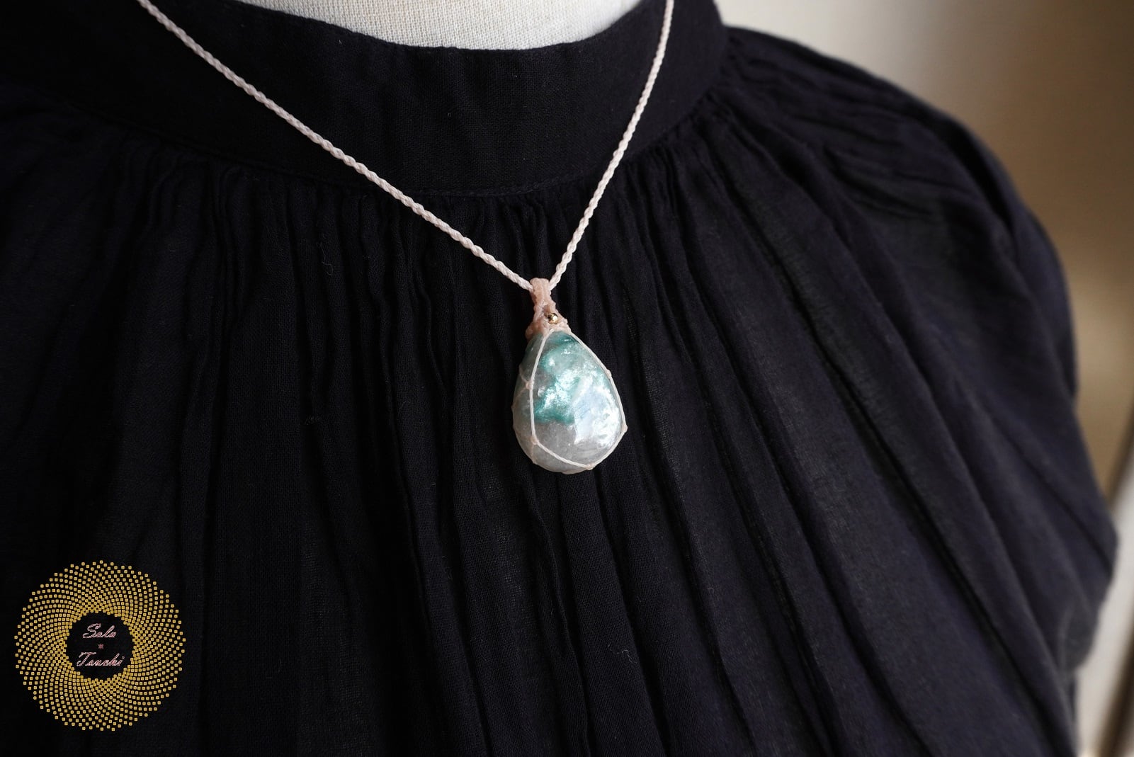 (ワックスコード)フックサイト in クォーツのマクラメ編みペンダント 〜春陽雫〜