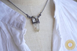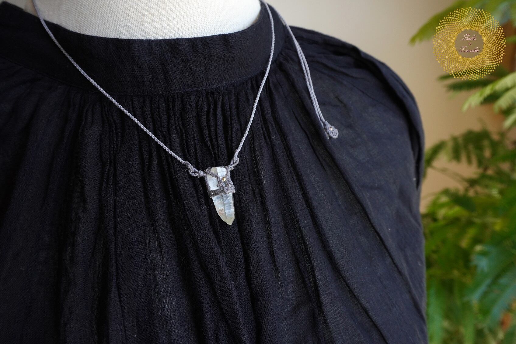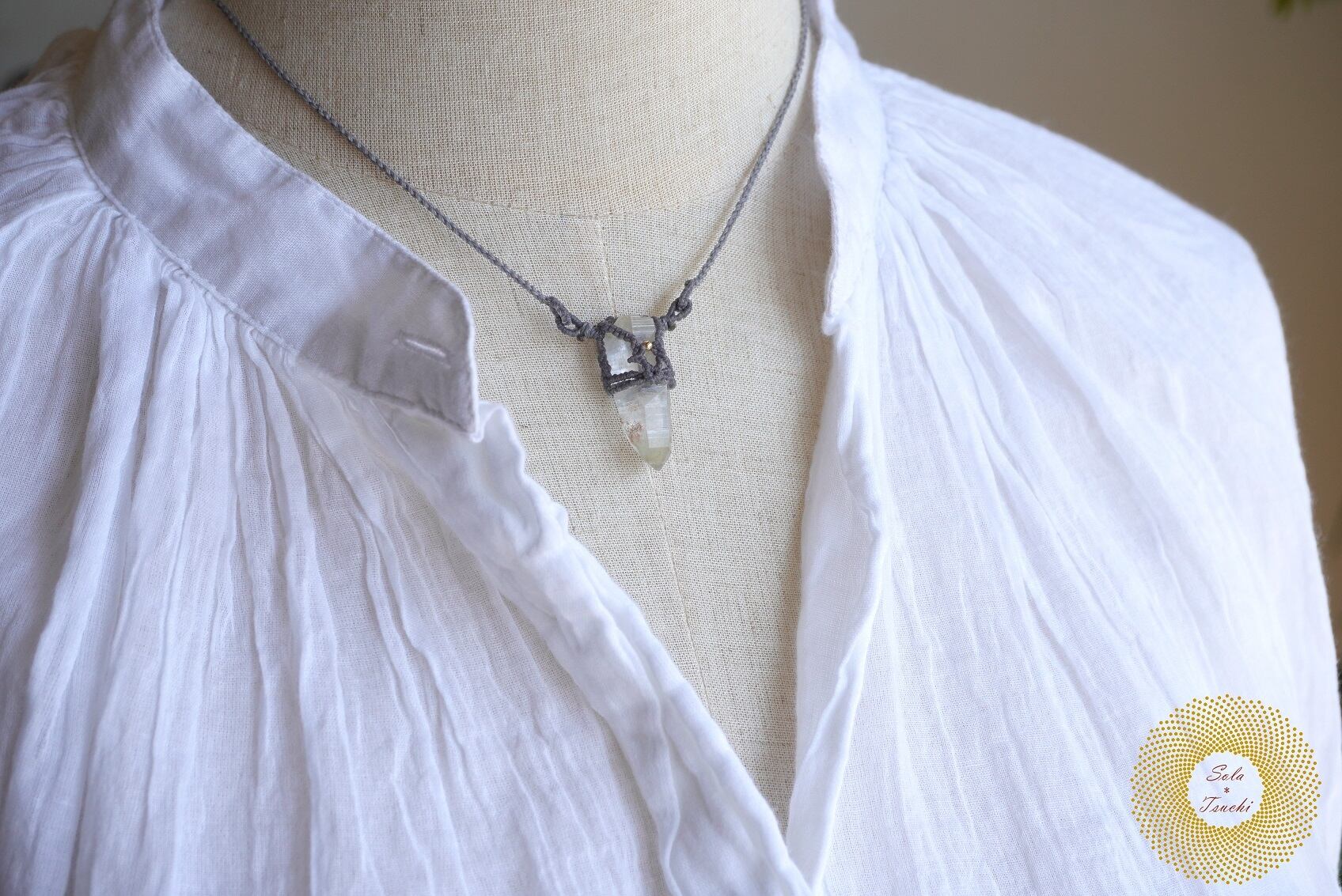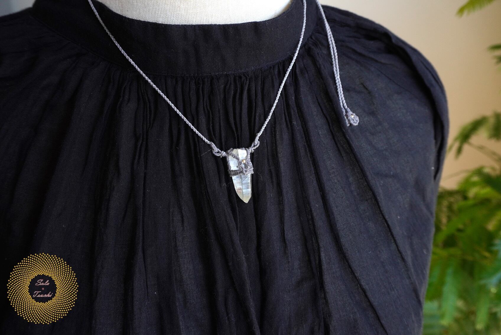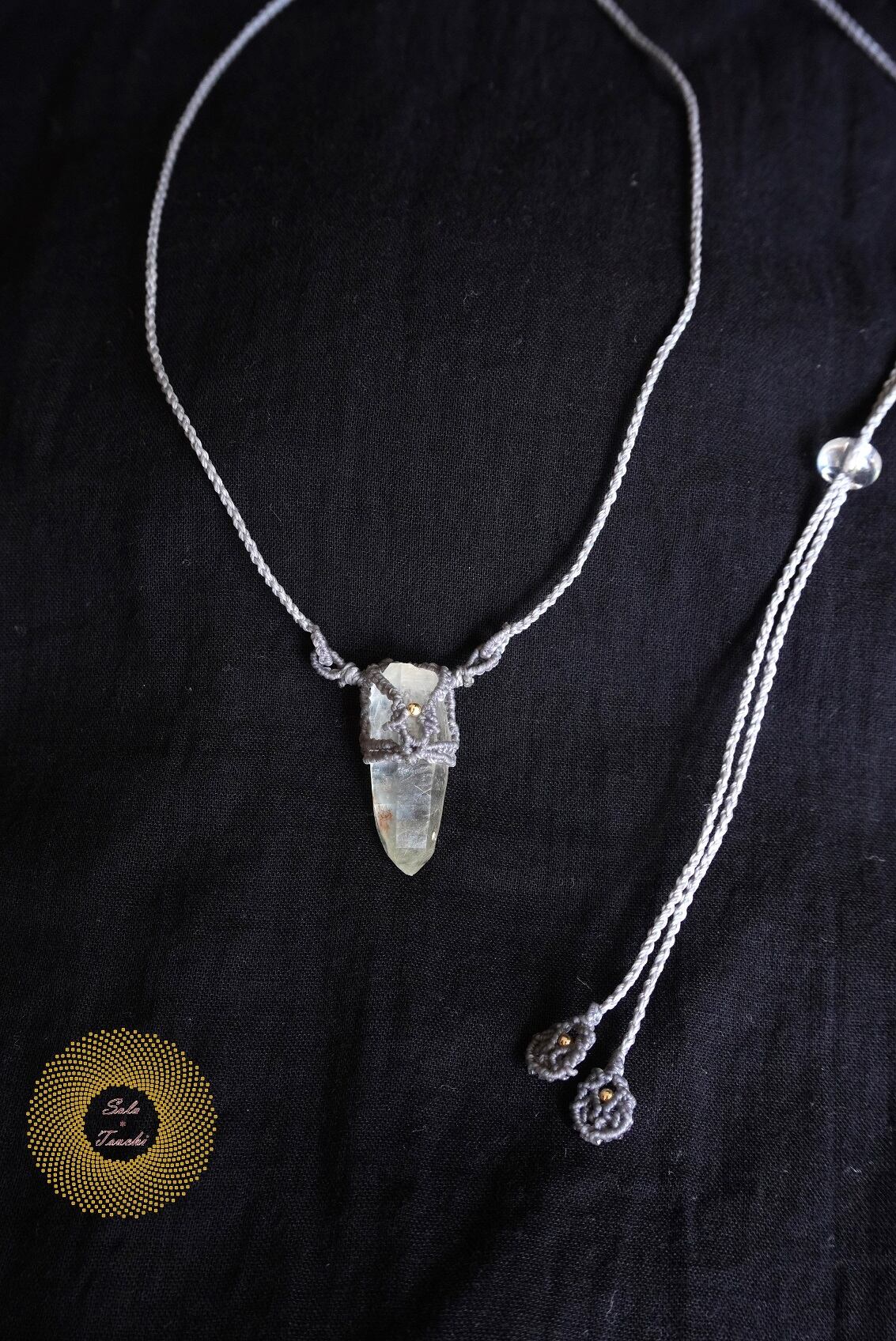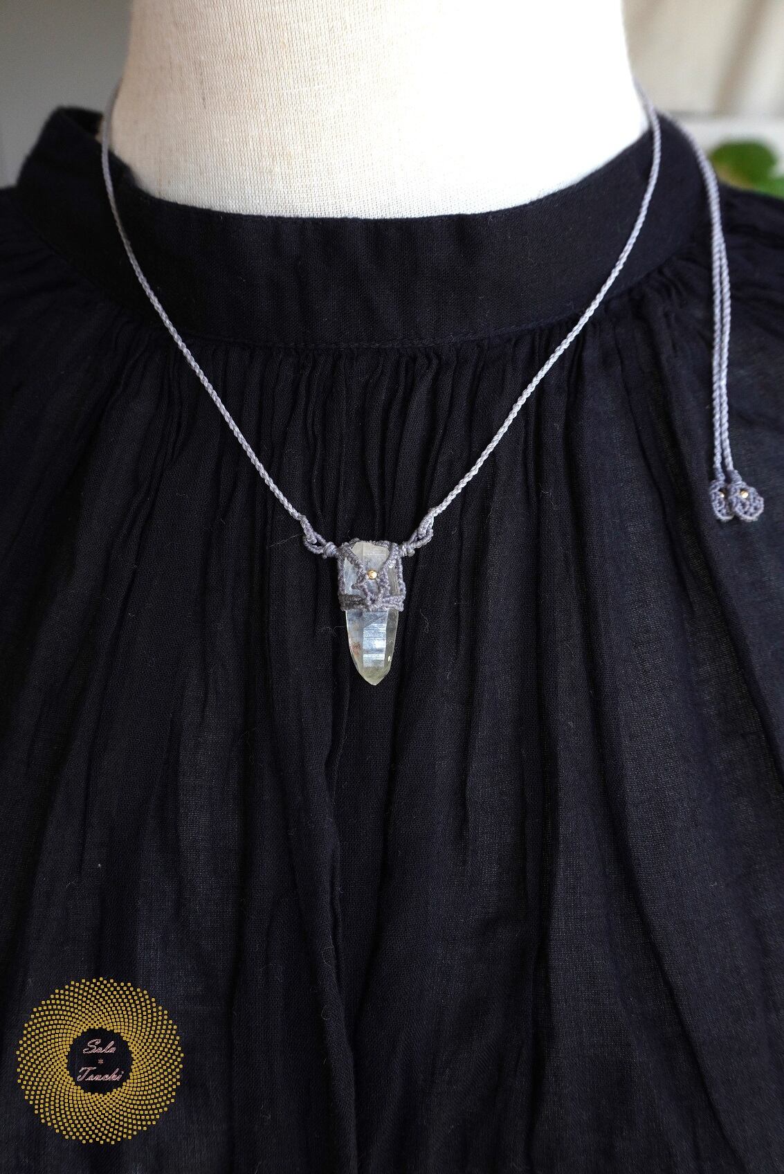 (ワックスコード)山梨県産水晶(ルチル入り)のマクラメ編みペンダント 〜Confidence〜