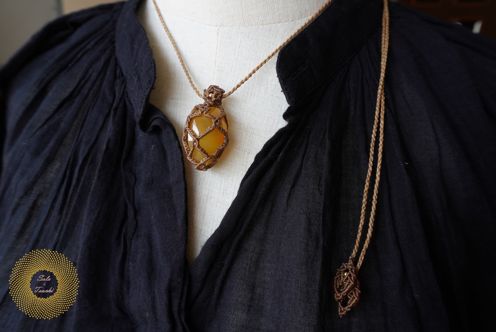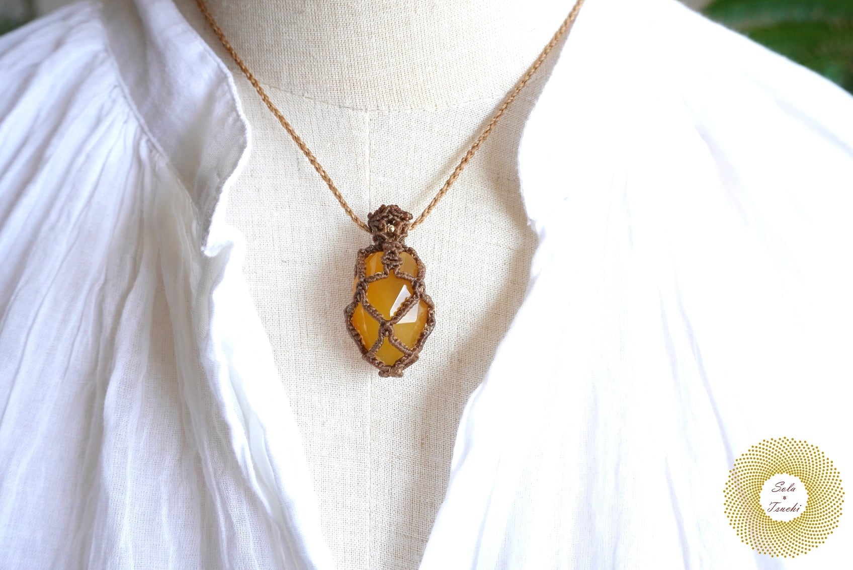 (ワックスコード)カーネリアンのマクラメ編みペンダント 〜伴走者〜