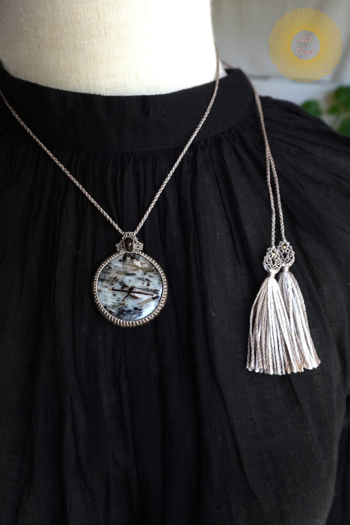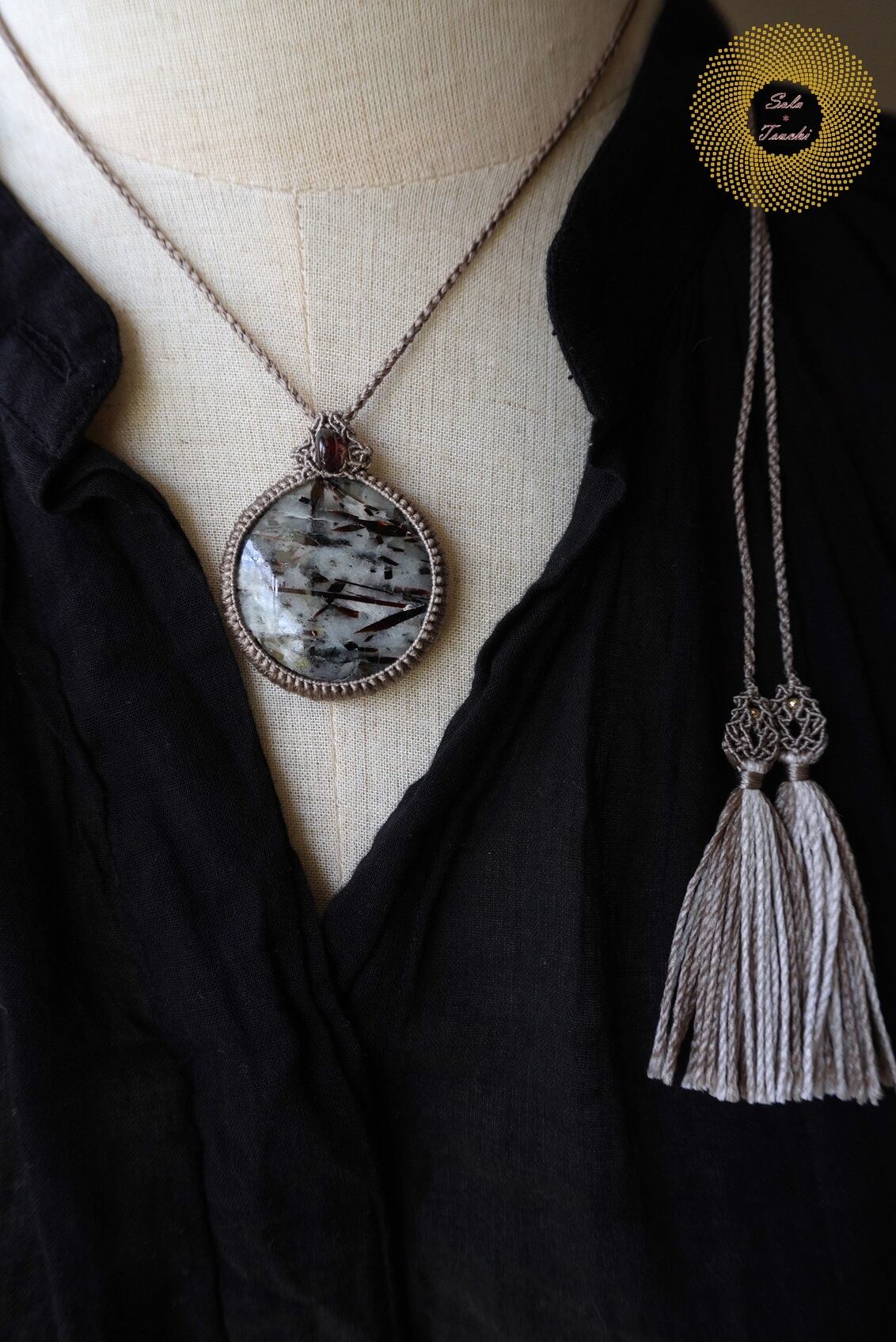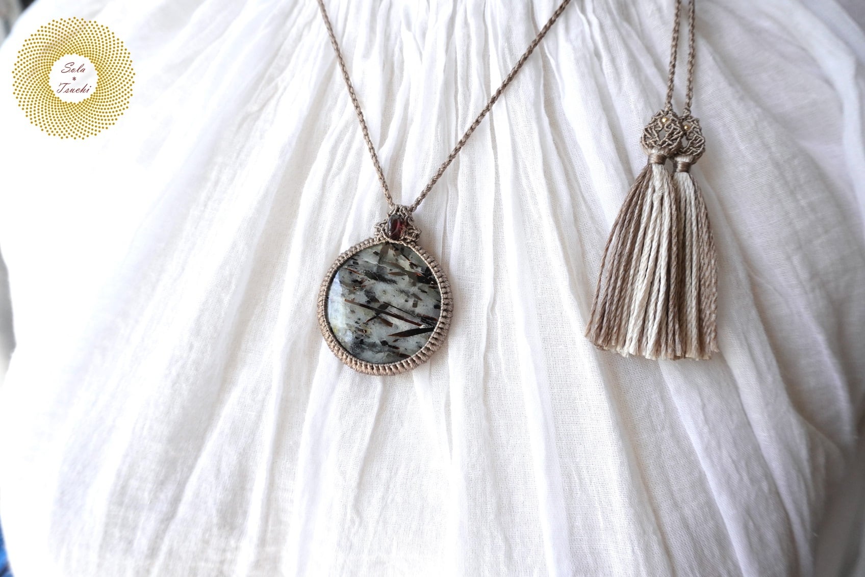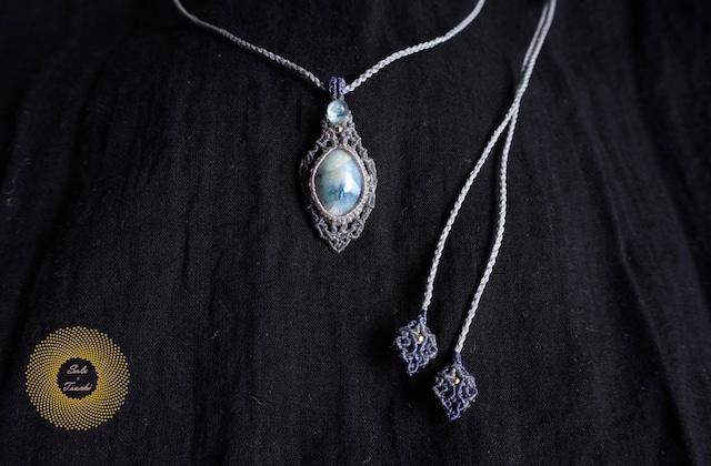 (絹糸)アストロフィライトとガーネットのマクラメ編みペンダント 〜Encounter〜
