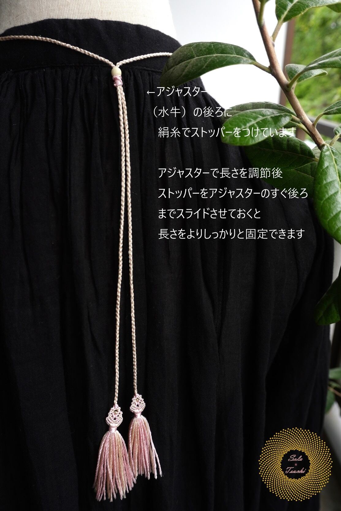 頭をくぐらせて装着し、2本をまとめている水牛(アジャスター)
