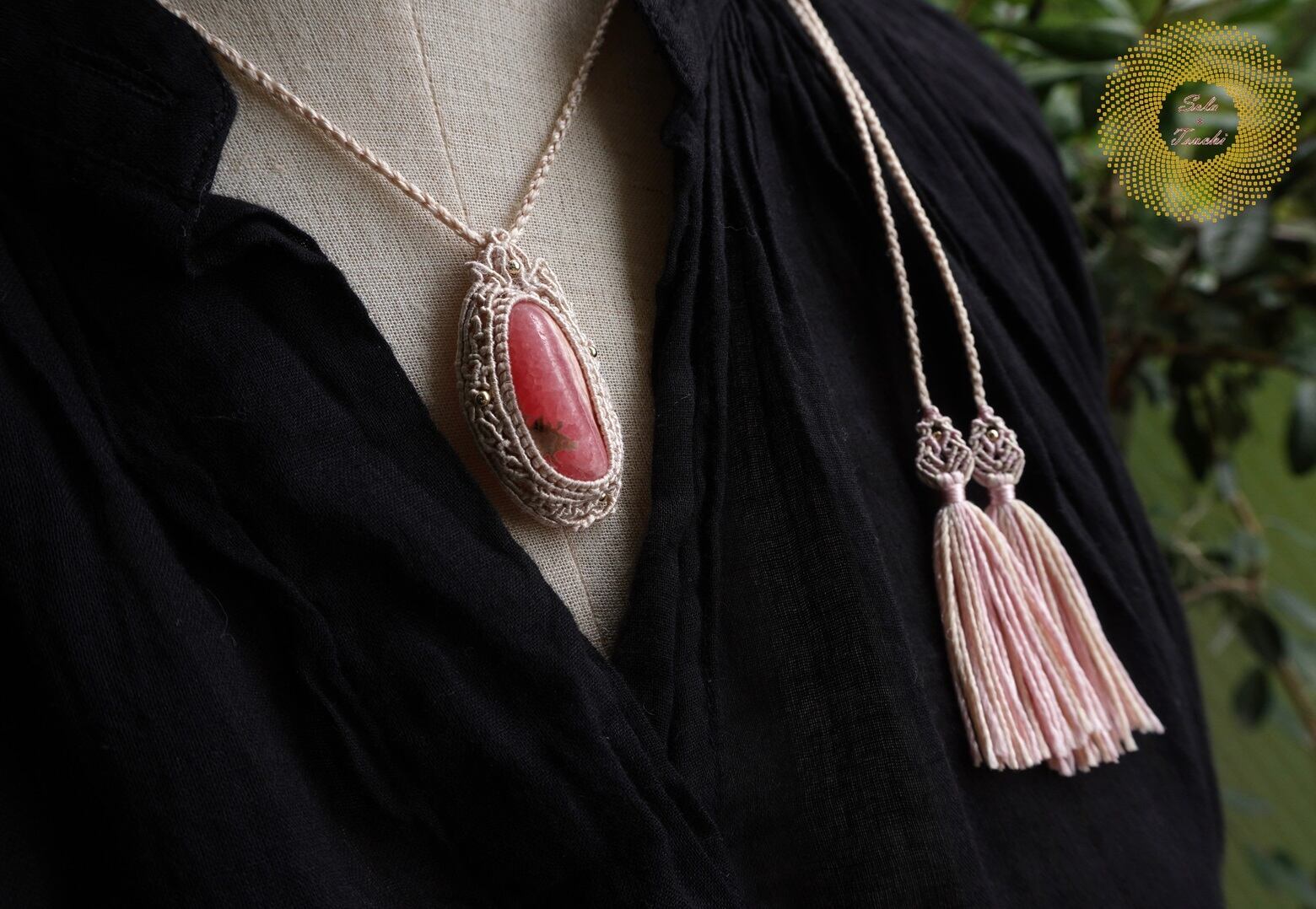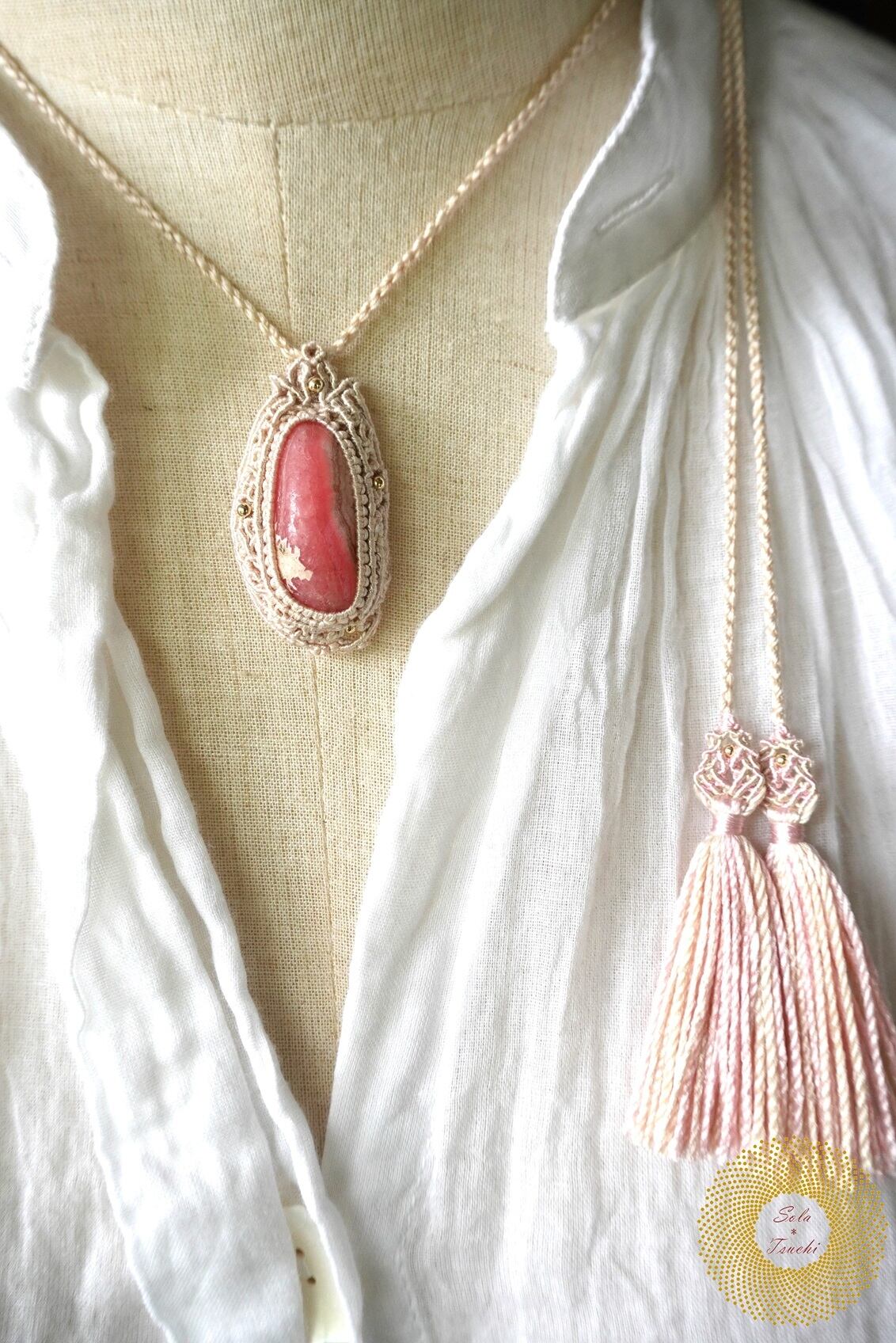 (絹糸) ロードクロサイトのマクラメ編みペンダント 〜Amore〜