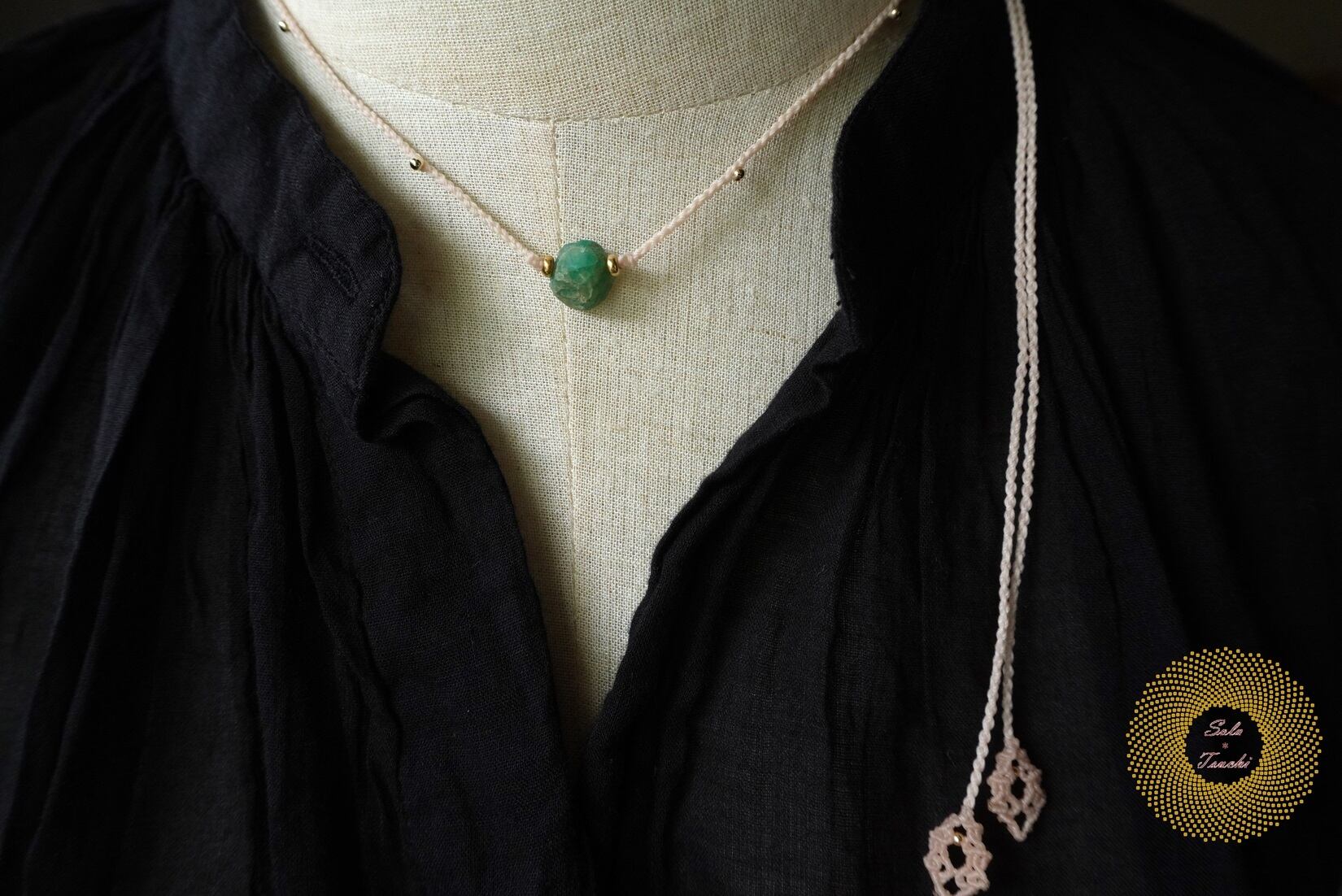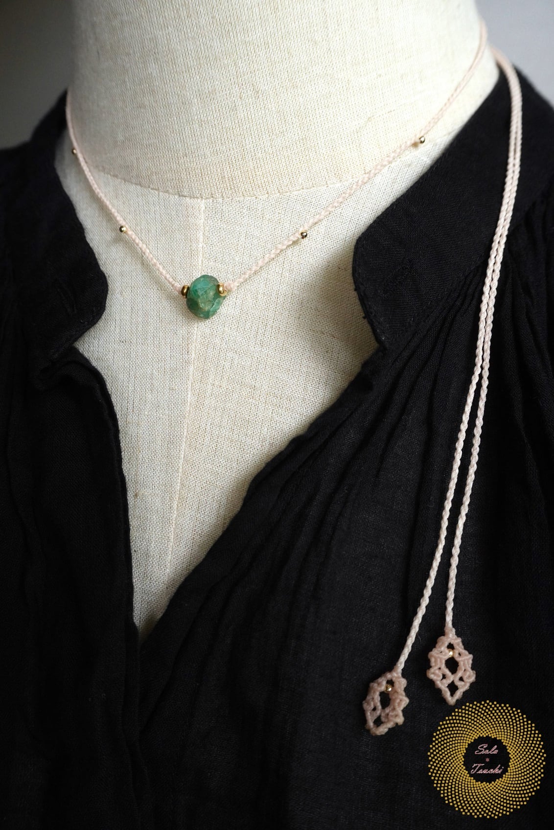 (ワックスコード)エメラルド原石のマクラメ編みネックレス 〜Bliss〜