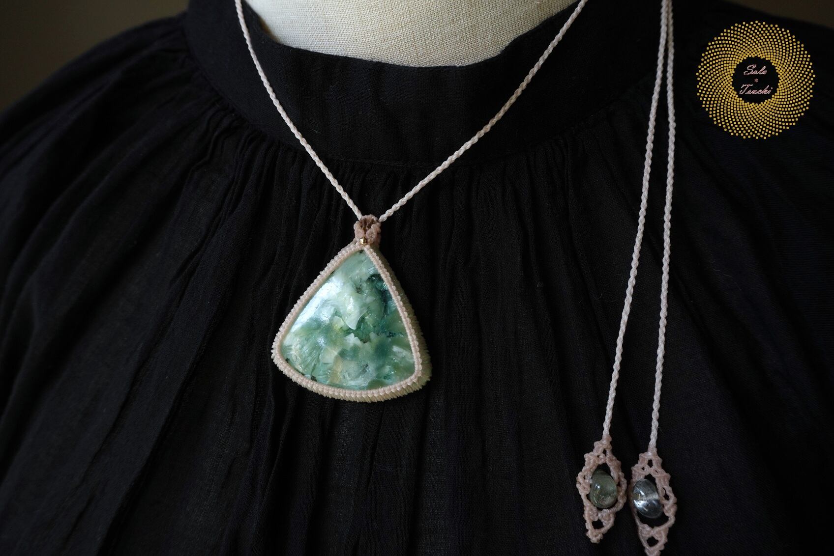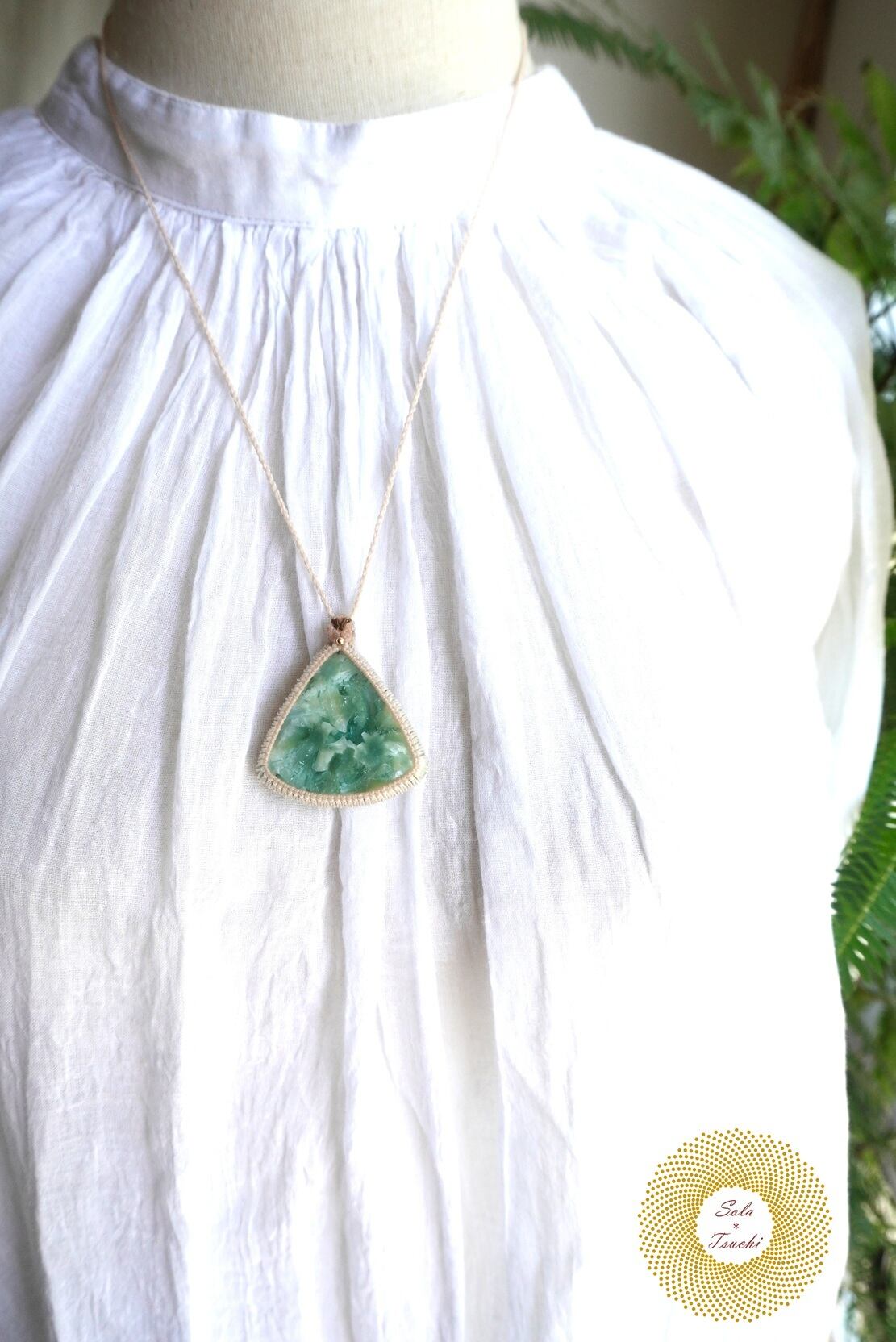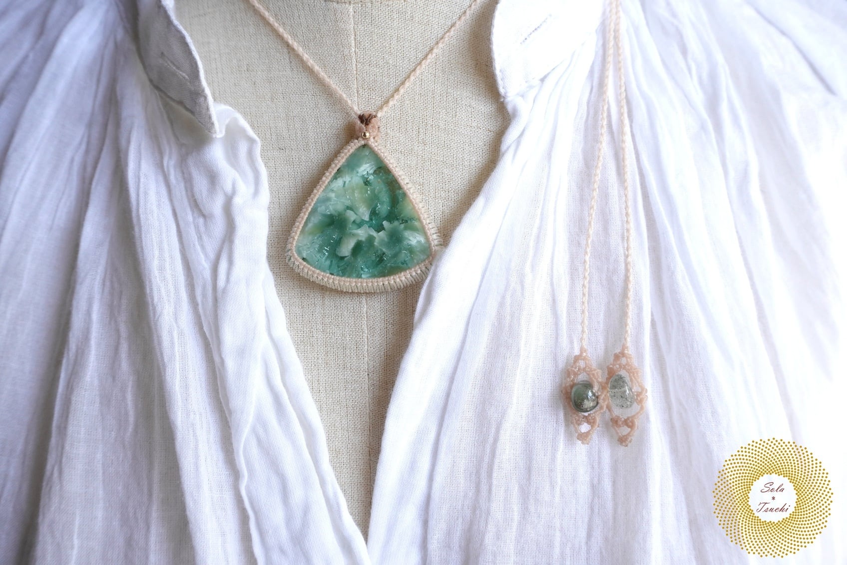 (ワックスコード)ヘミモルファイトのマクラメ編みペンダント 〜羽化〜