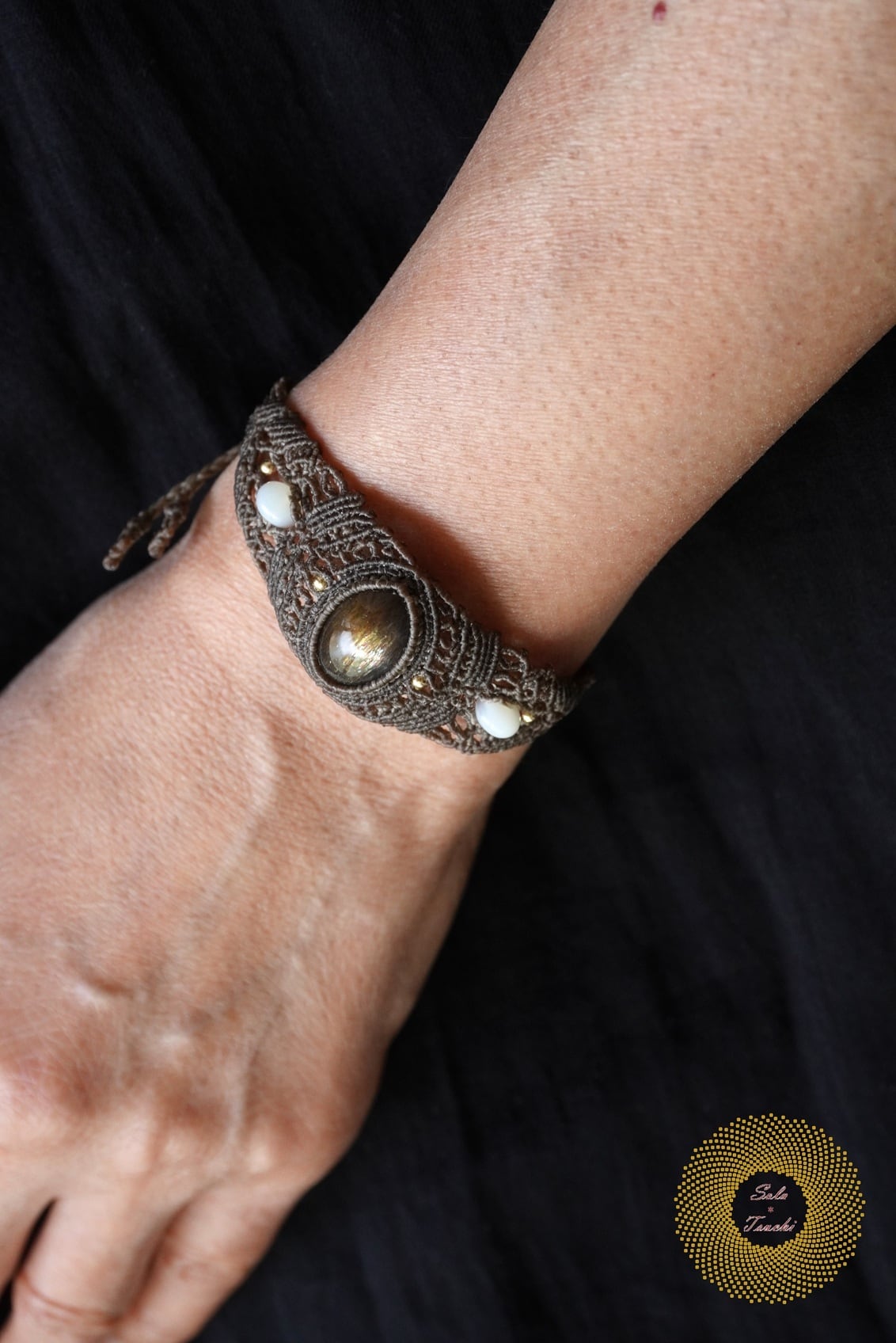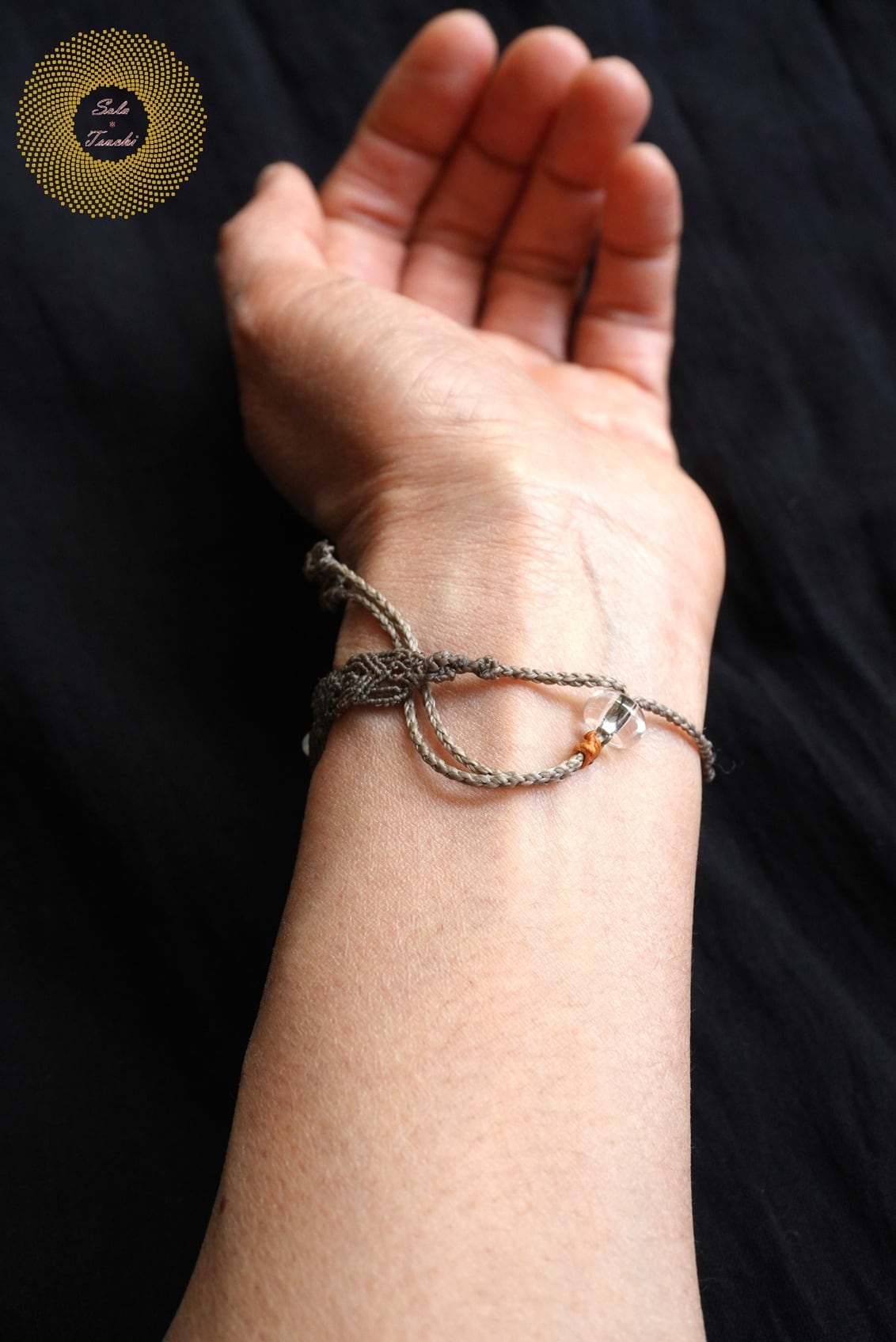 (ワックスコード)ブラックスターサンストーンのマクラメ編みブレスレット 〜回帰〜
