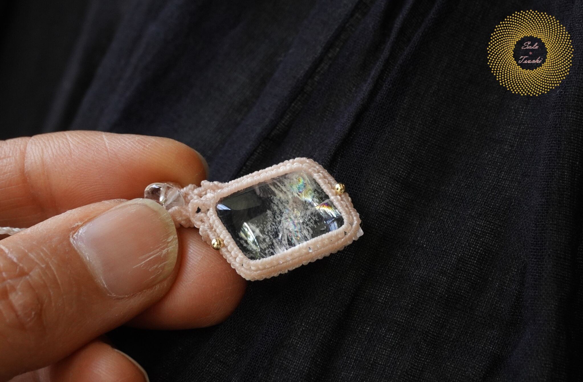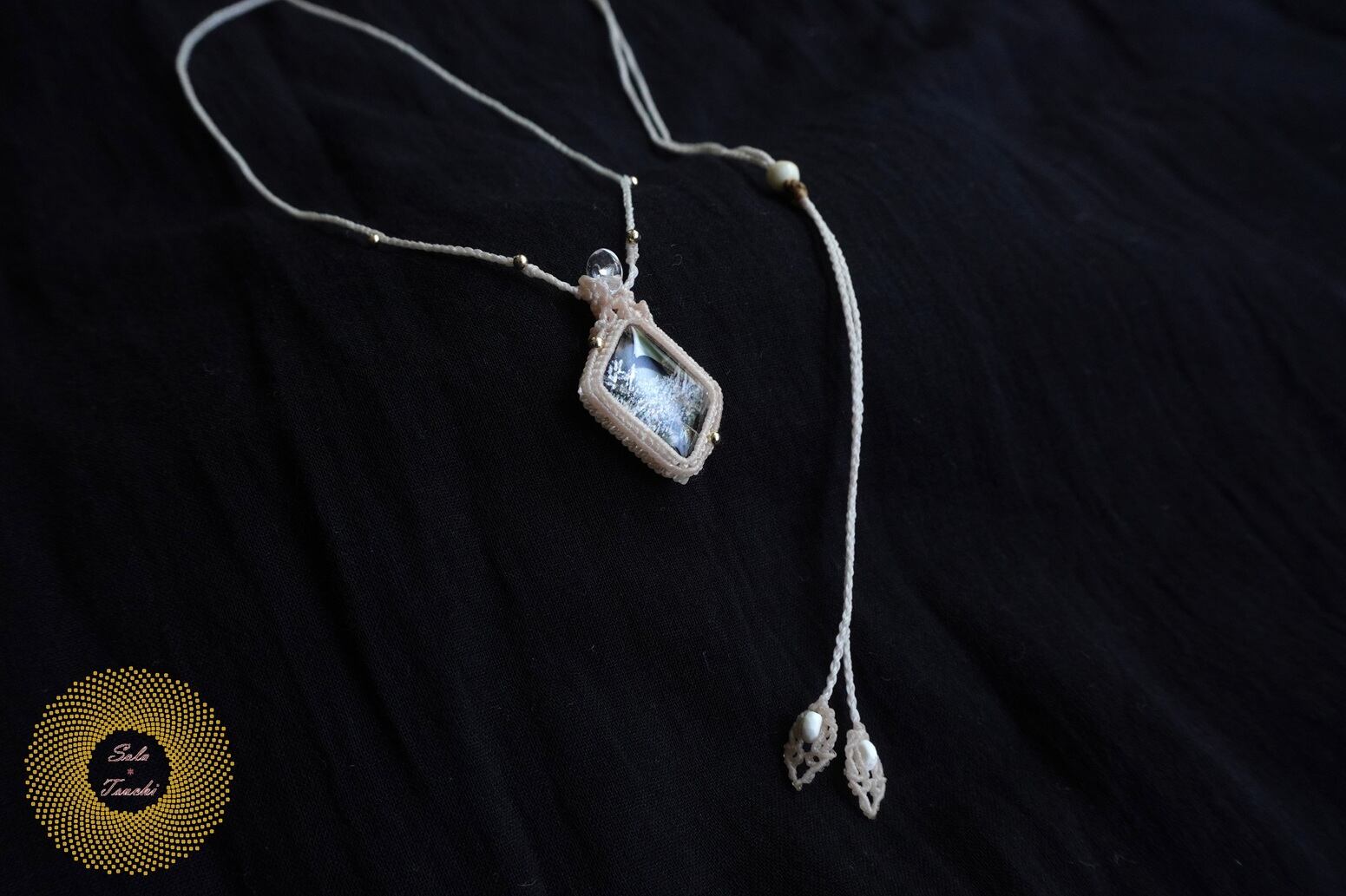 (ワックスコード)ペタライトのマクラメ編みペンダント 〜ペガサスに乗って〜