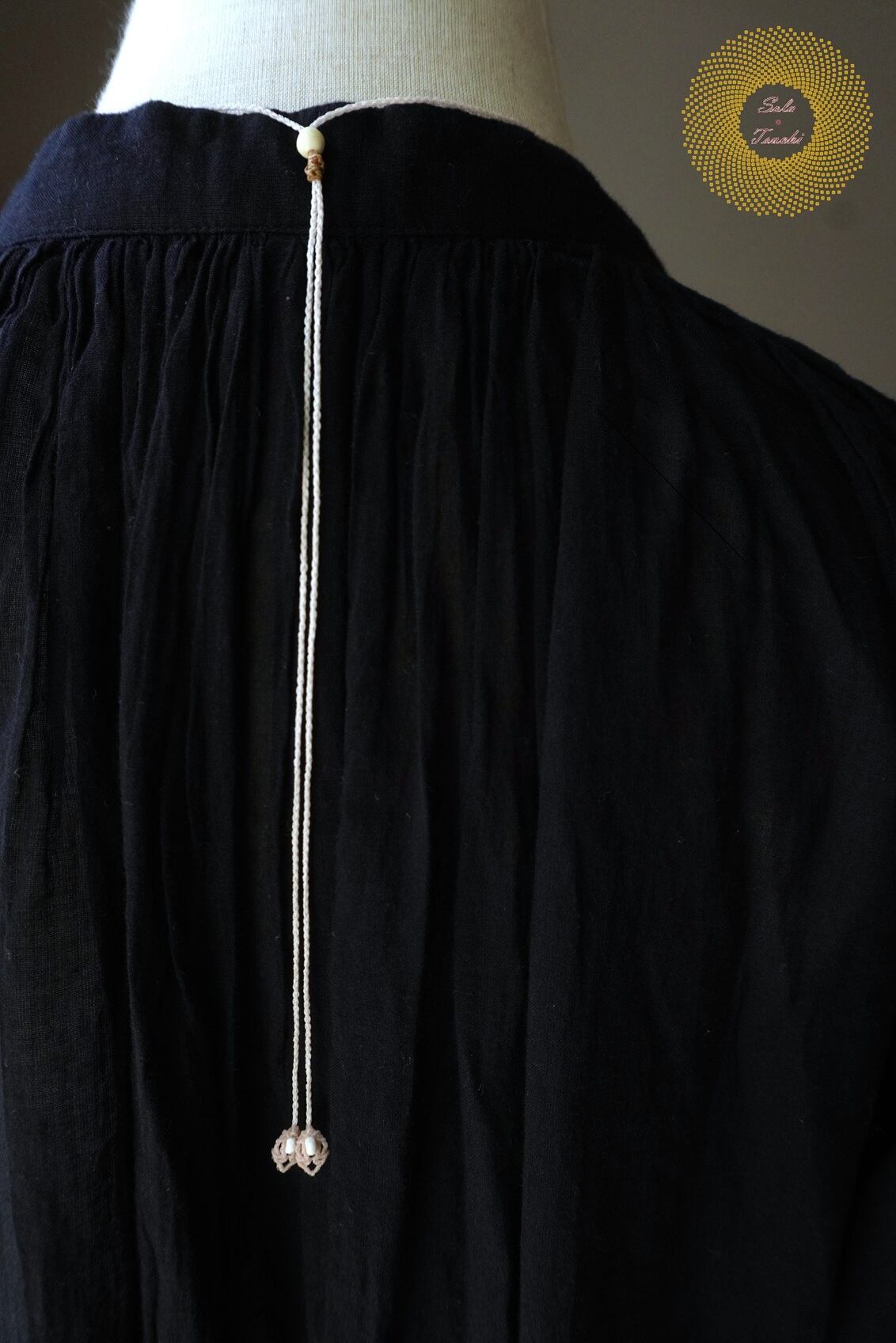 頭をくぐらせて装着し、2本をまとめている水牛(アジャスター)を