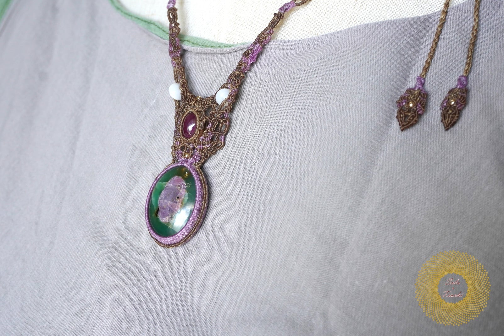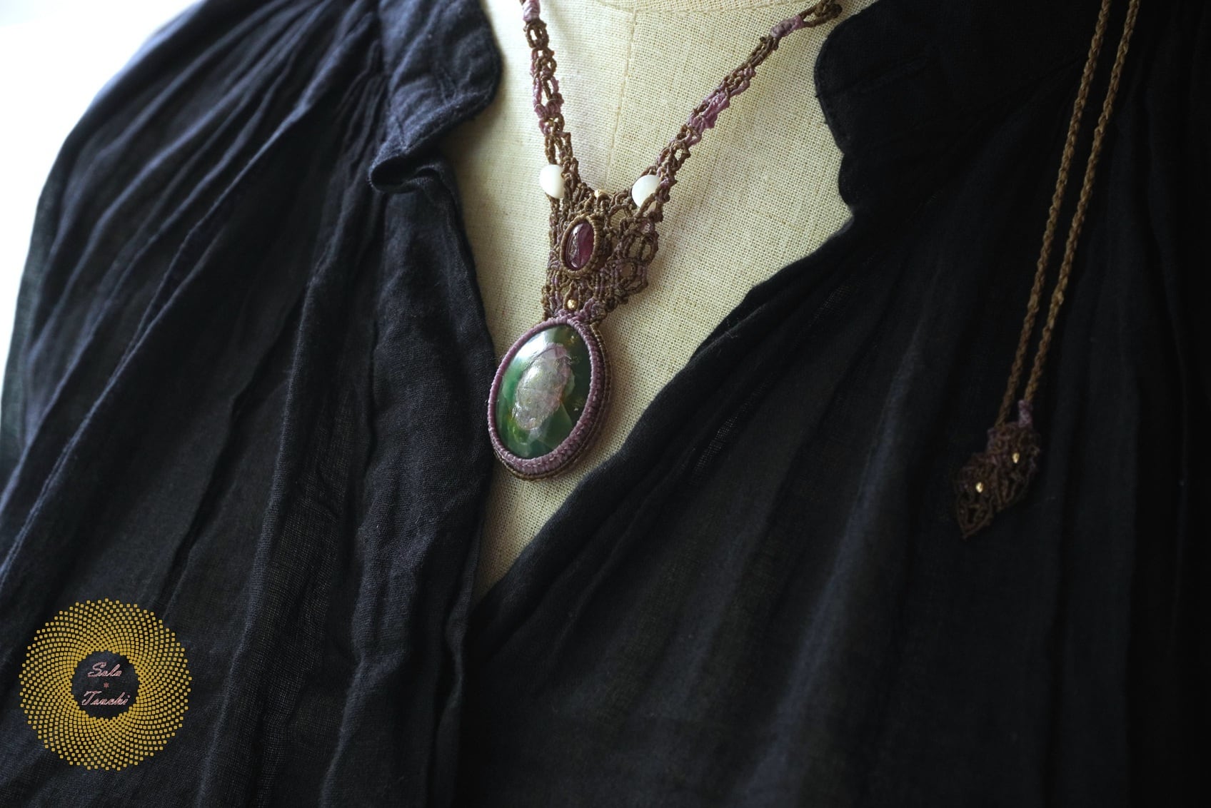 (ワックスコード)ルビー イン フックサイトとルビーのマクラメ編みペンダント 〜Again〜