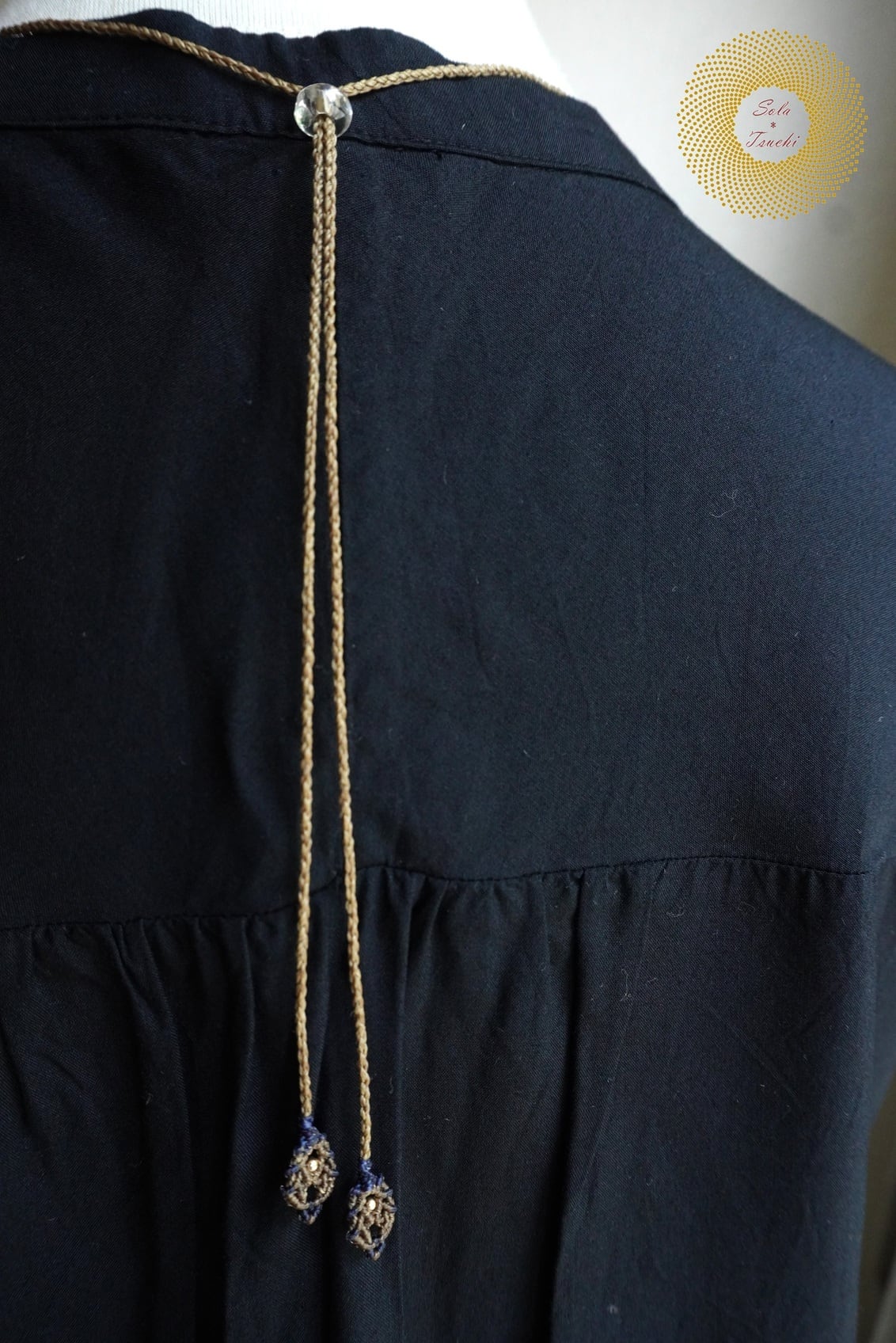頭をくぐらせて装着し、2本をまとめている水晶(アジャスター)