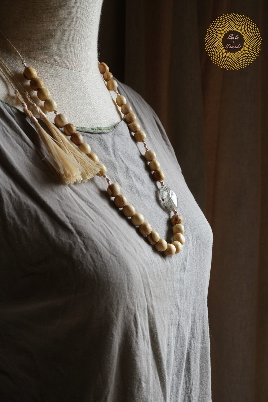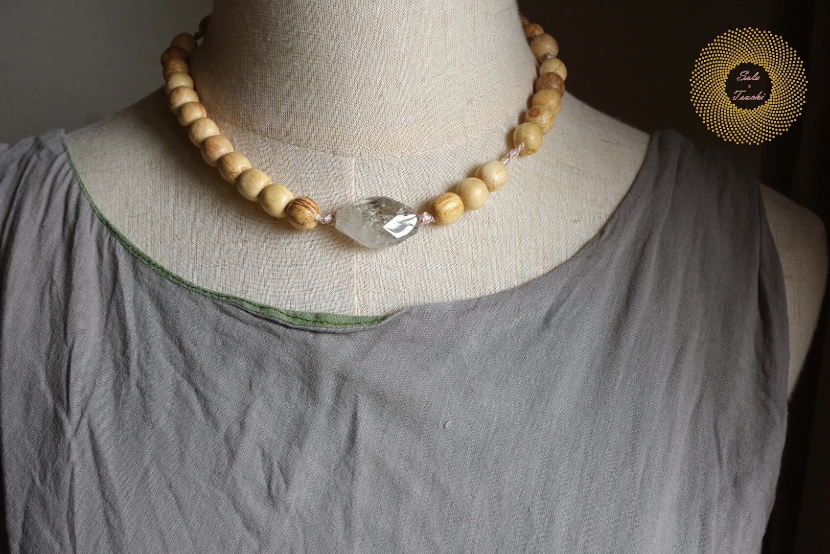 (ワックスコード+絹糸)パロサントと水晶と精麻のマクラメ編みネックレス 〜Peace & Harmony 〜