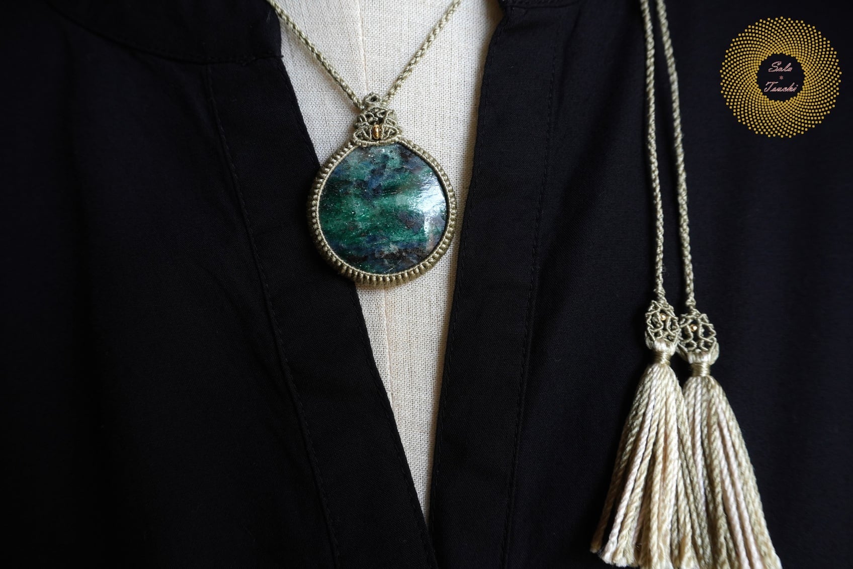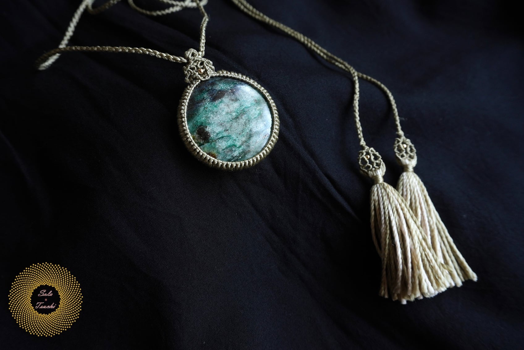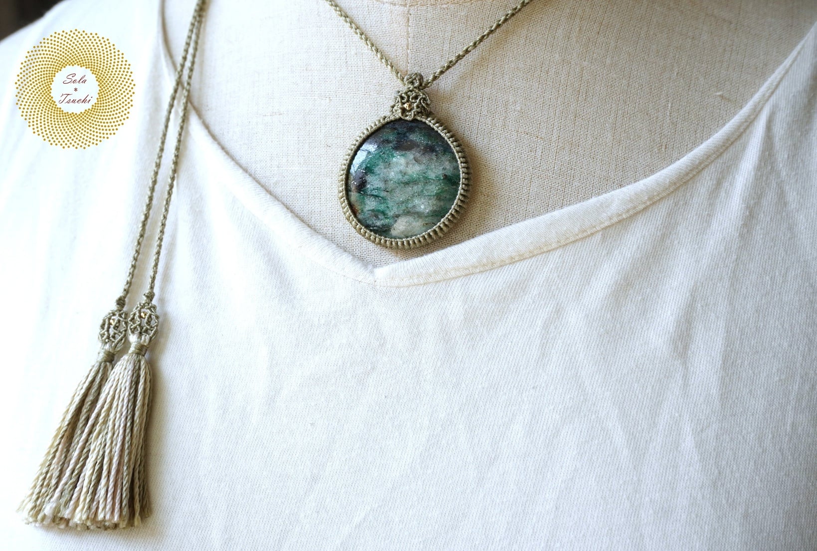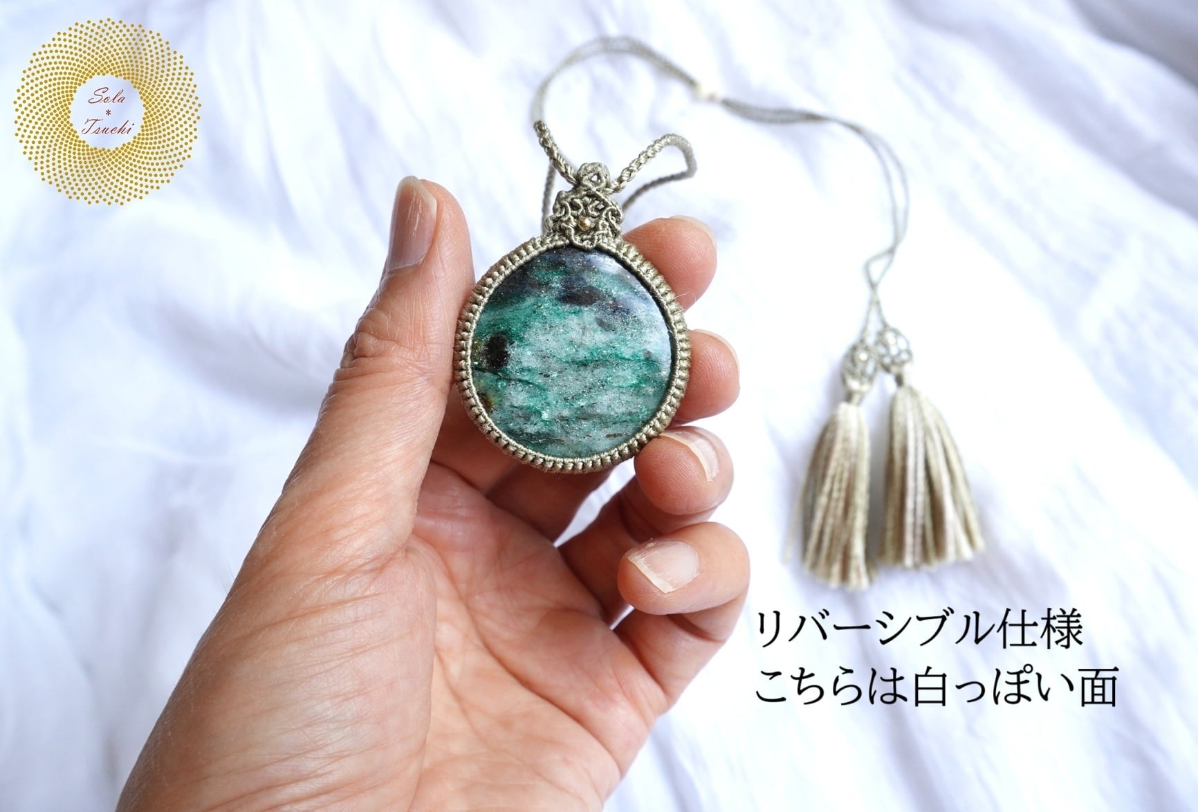 (絹糸)フックサイトのマクラメ編み リバーシブルペンダント 〜Nature Spirit~