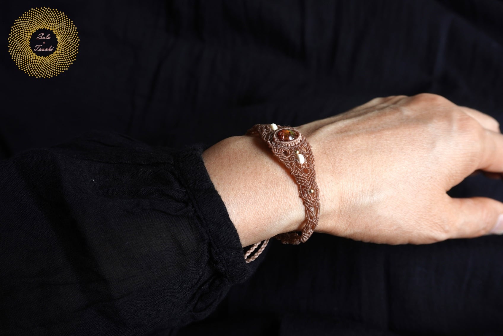 (ワックスコード)カンテラオパールのマクラメ編みブレスレット 〜My Honesty〜