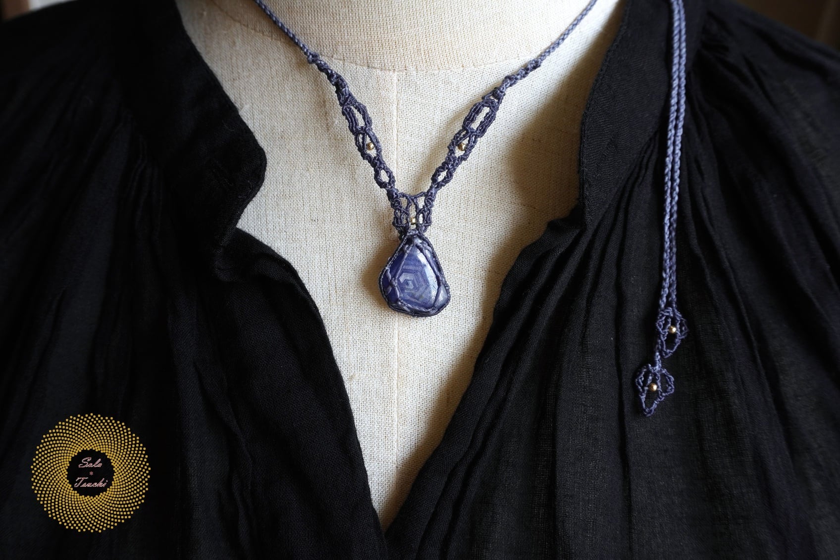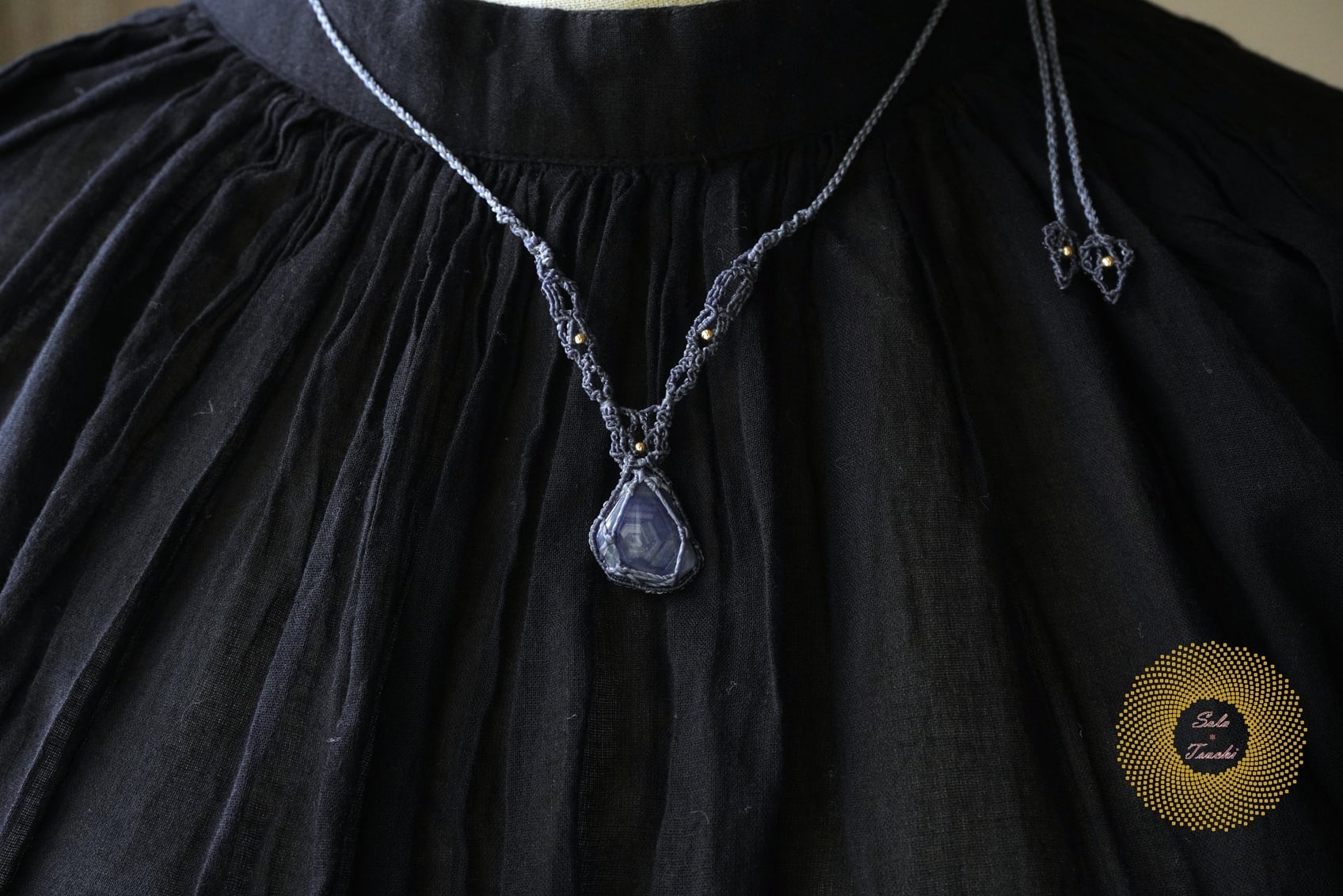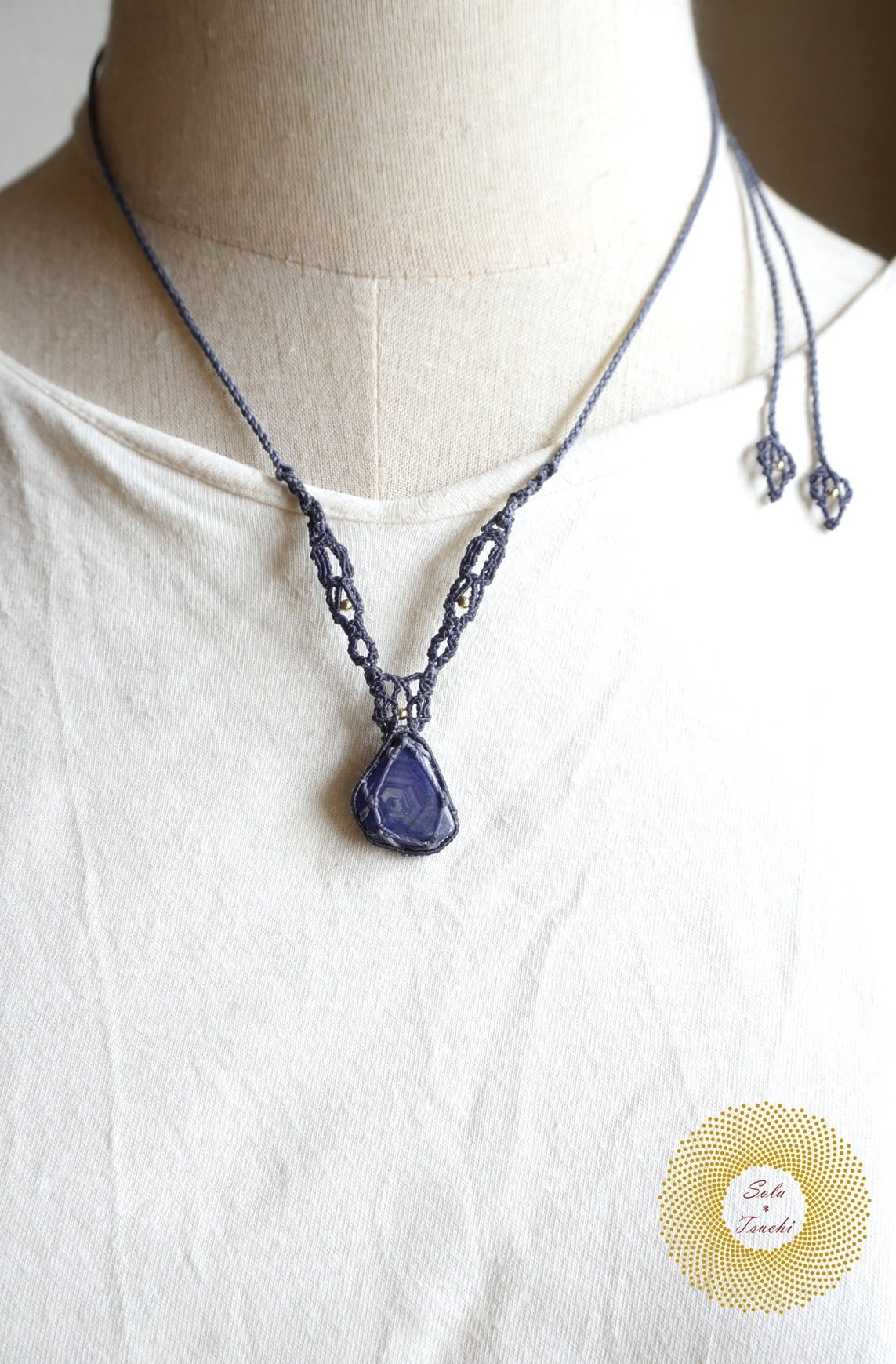 (ワックスコード)非加熱サファイアのマクラメ編みネックレス 〜宇宙の内側〜