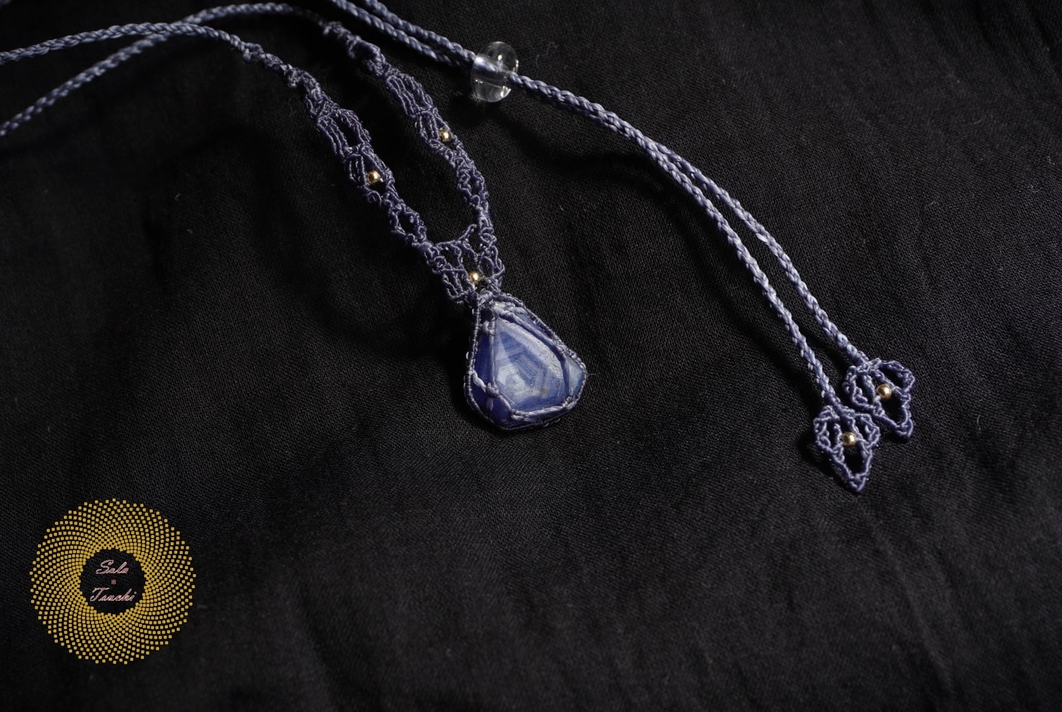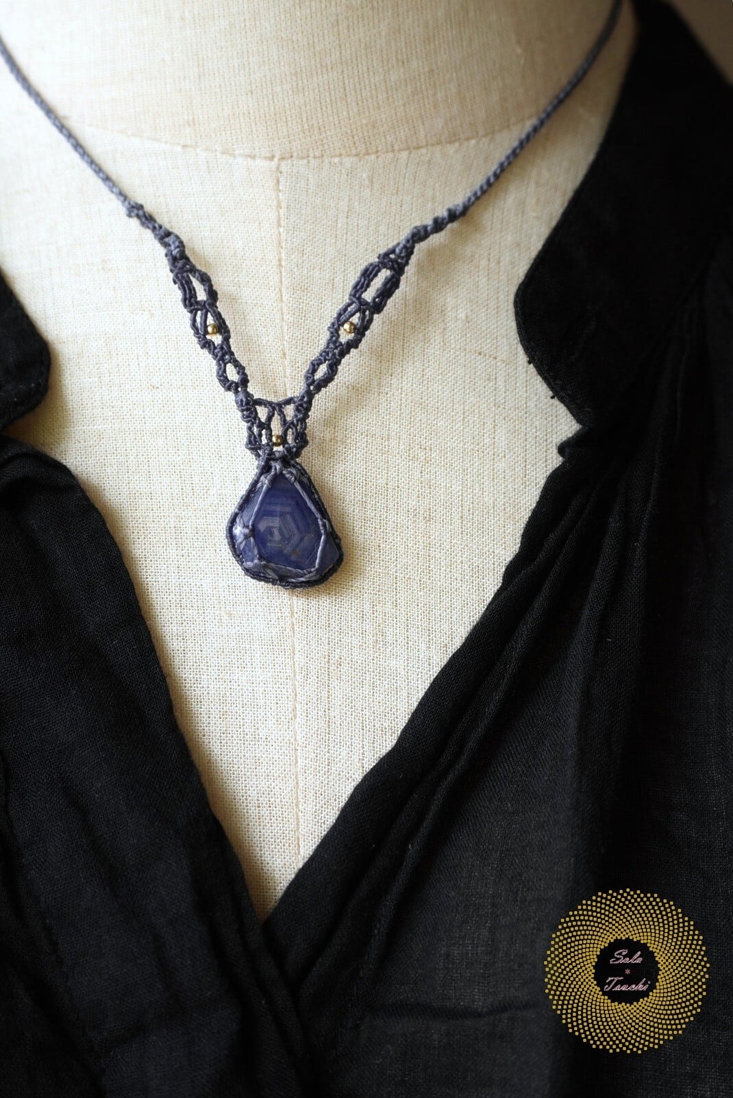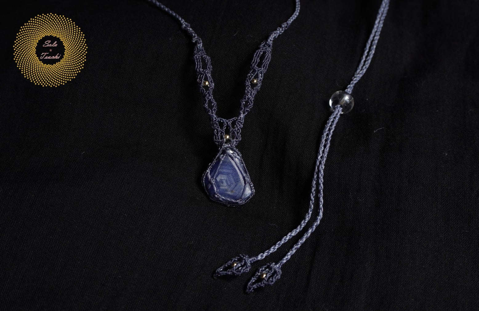 (ワックスコード)非加熱サファイアのマクラメ編みネックレス 〜宇宙の内側〜