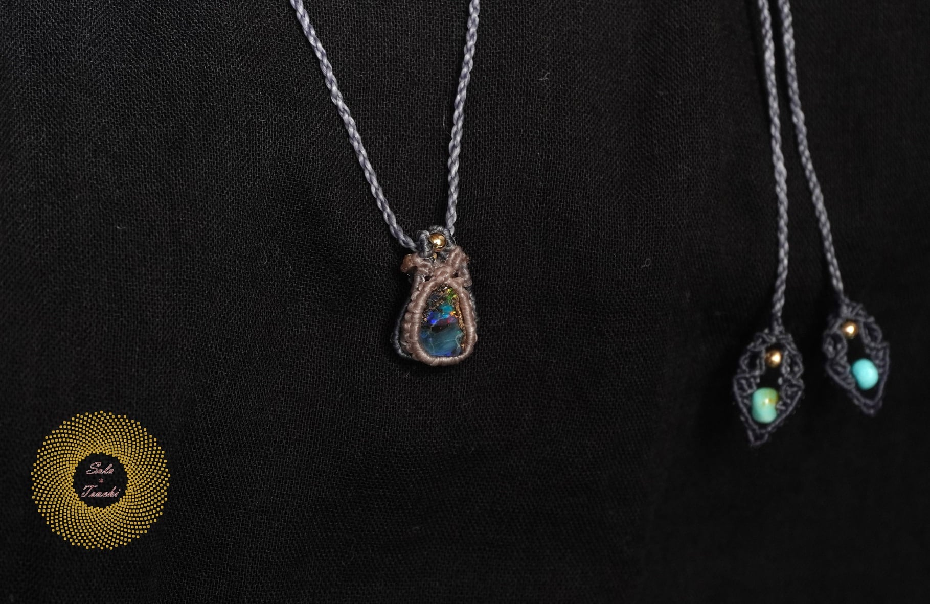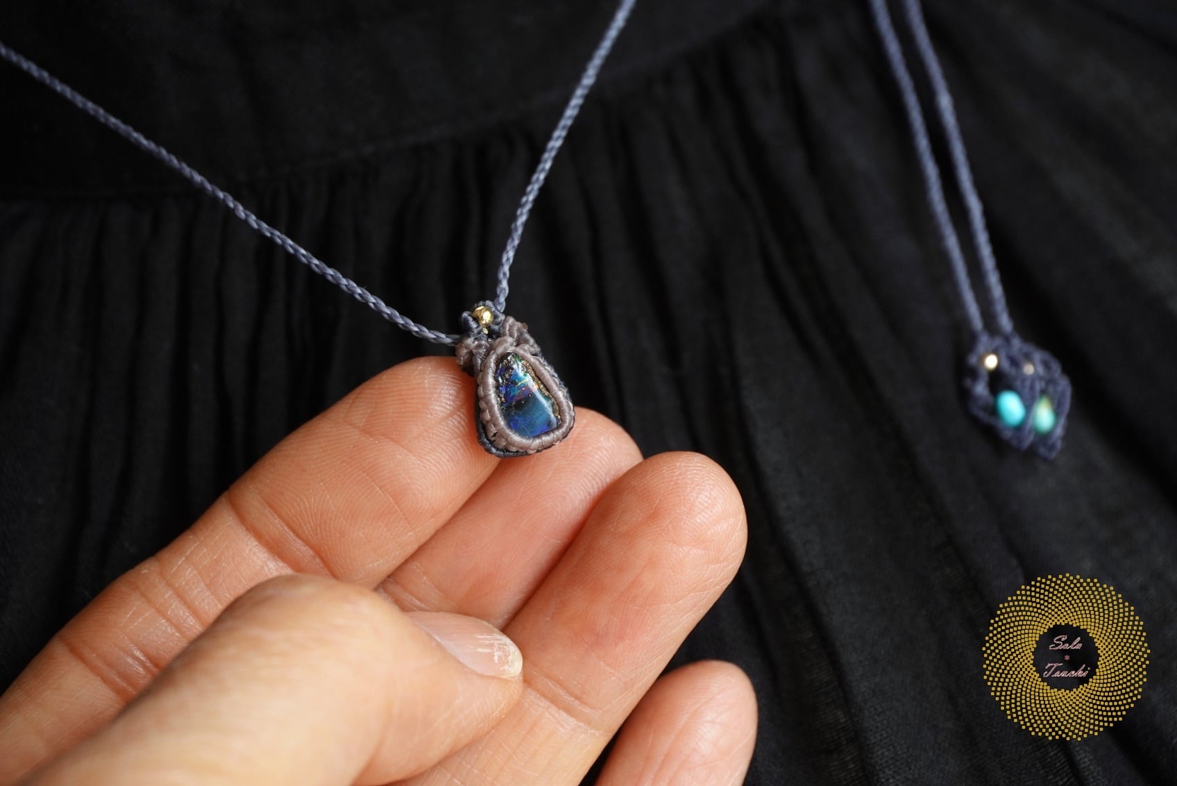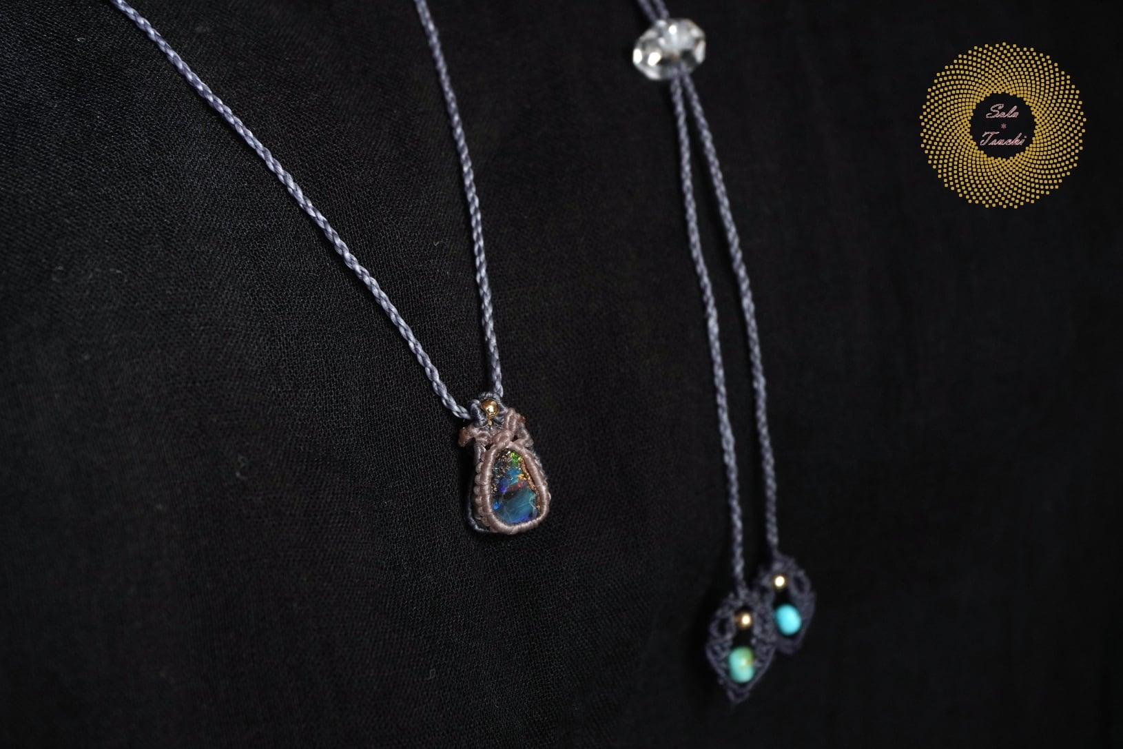 (ワックスコード)ボールダーオパールのマクラメ編みネックレス 〜Luminous〜