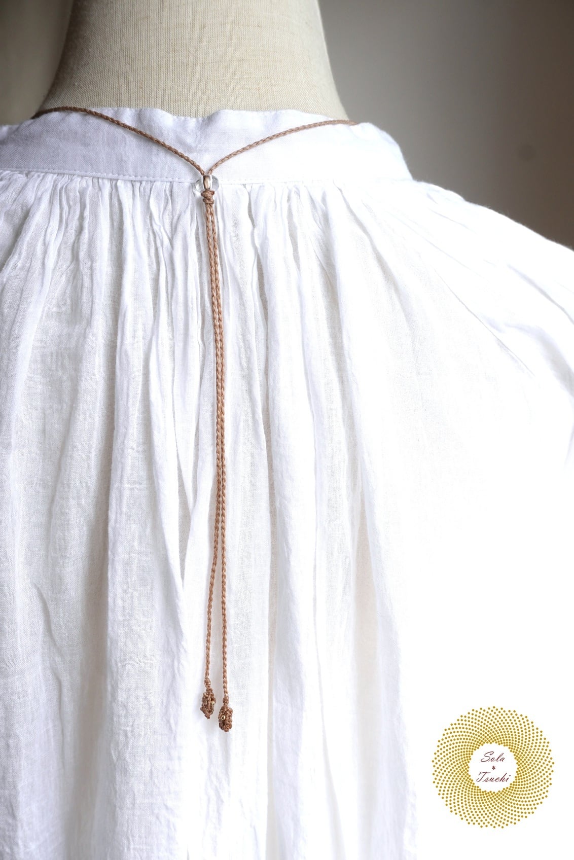 頭をくぐらせて装着し、2本をまとめている水晶部分を