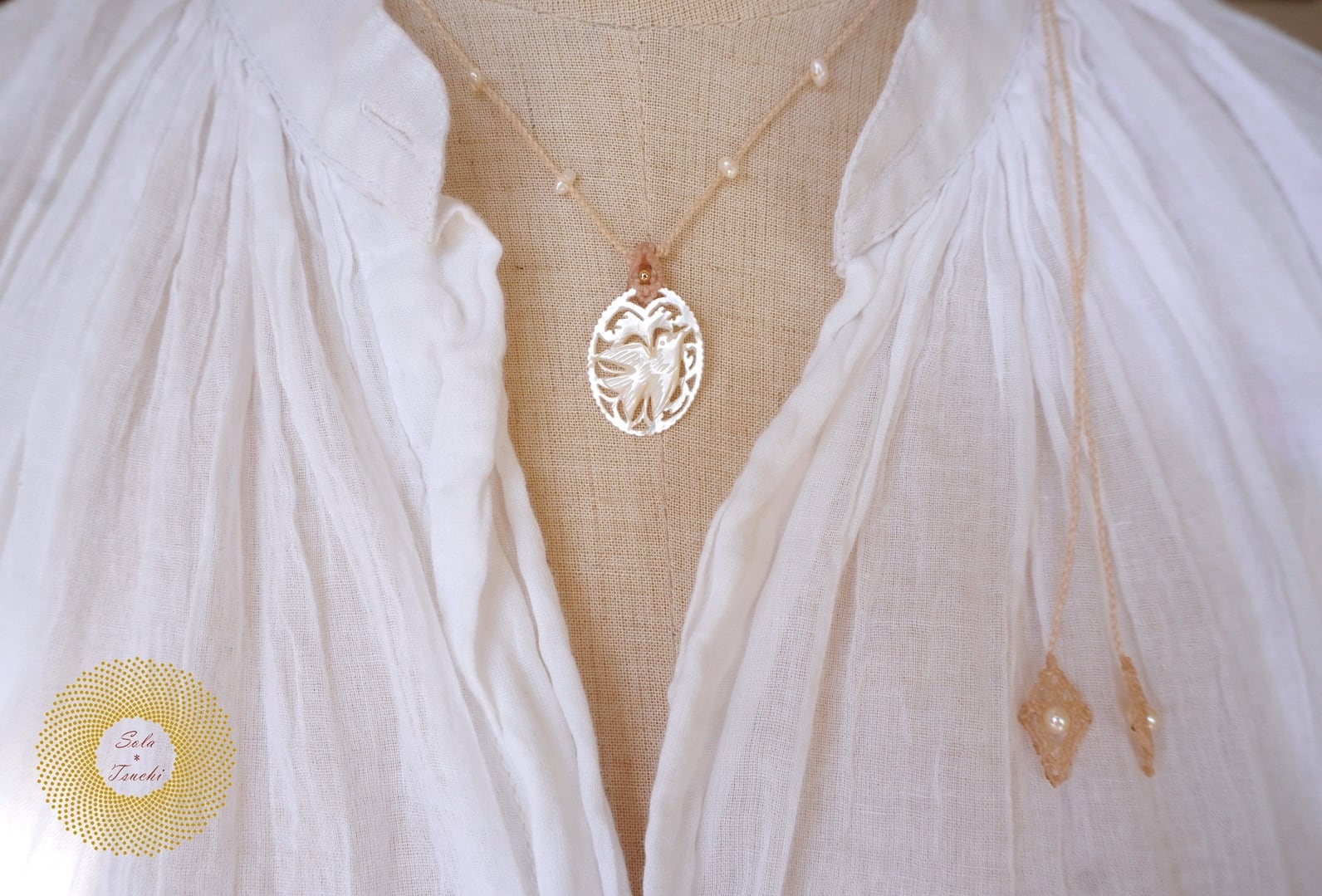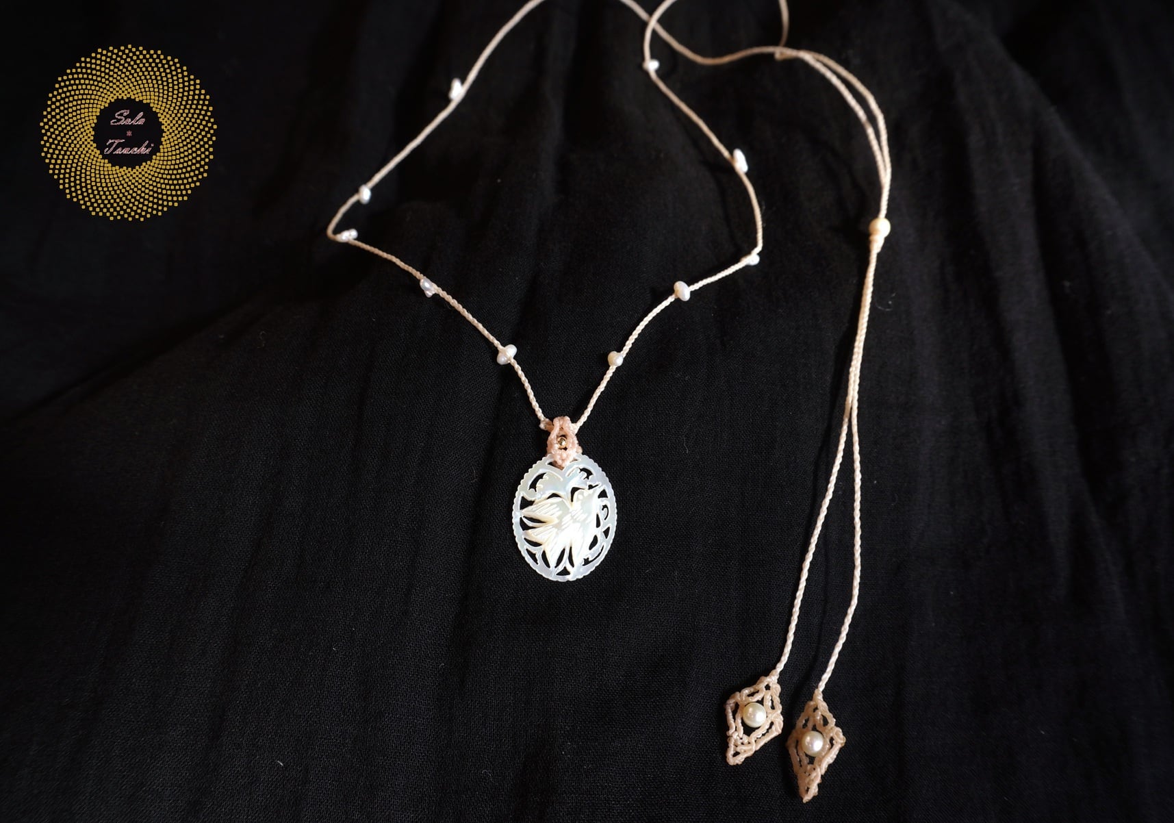 (ワックスコード)ベツレヘムパールと淡水パールのマクラメ編みネックレス 〜Bring~
