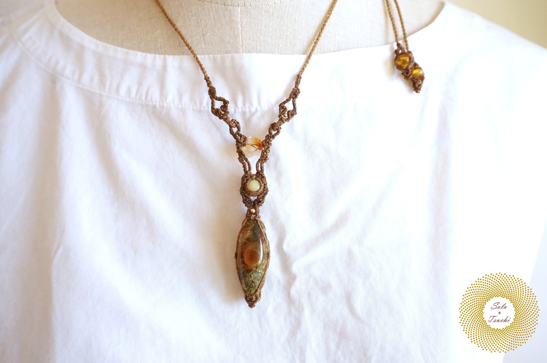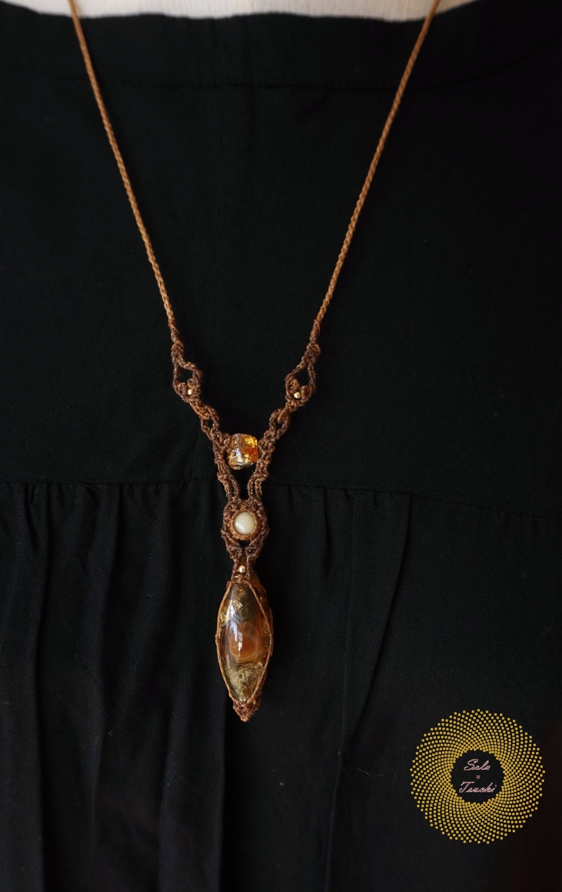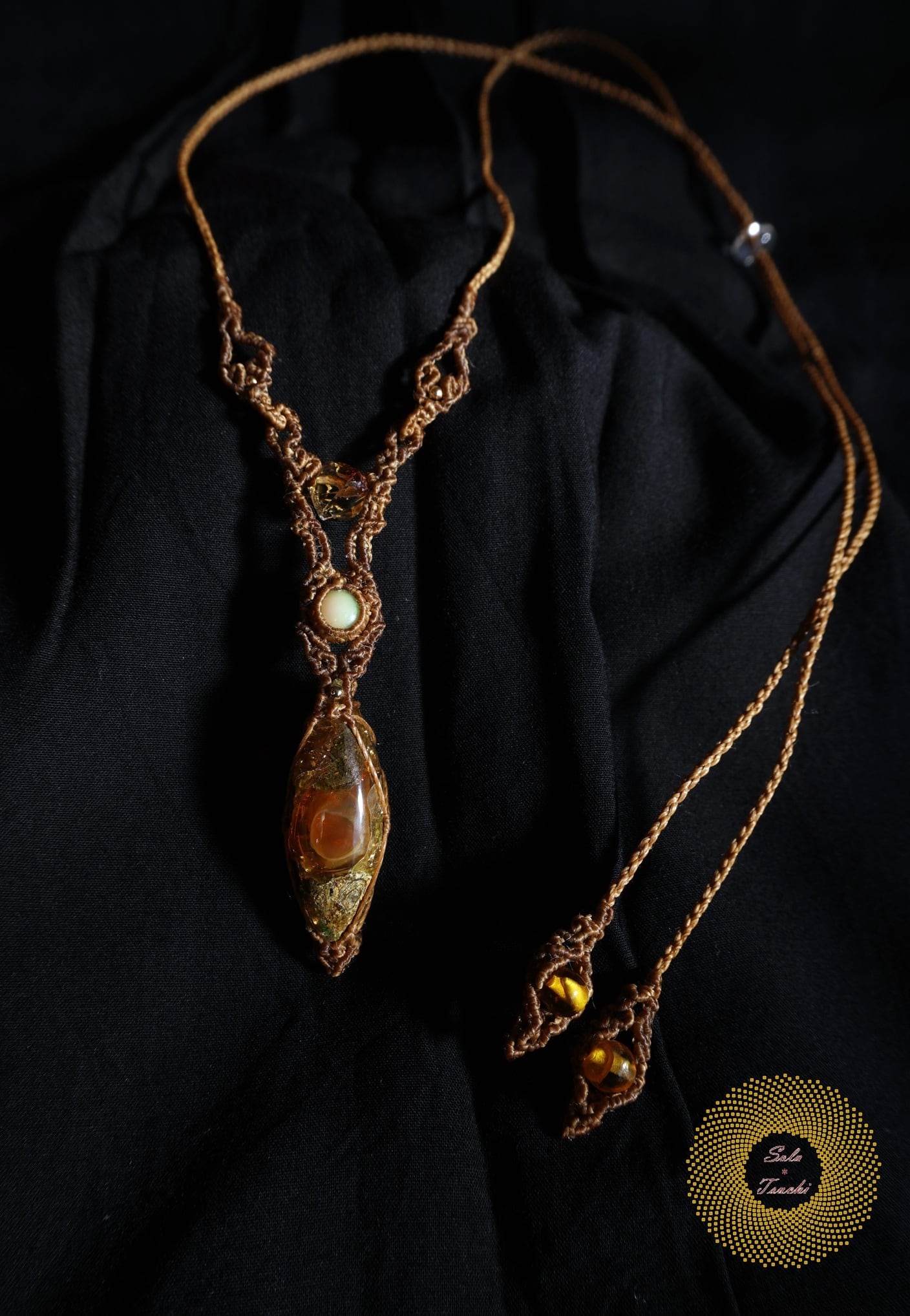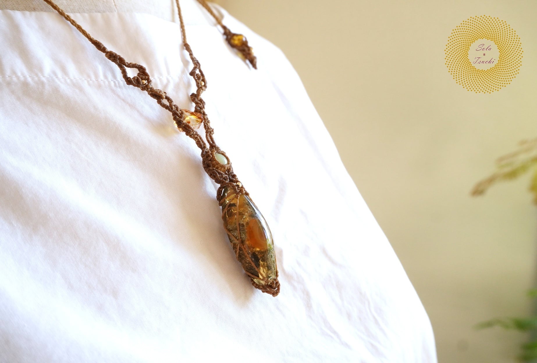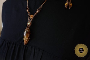 (ワックスコード)ふたつのオパールとかっこみシトリンのマクラメ編みペンダント 〜太陽神〜