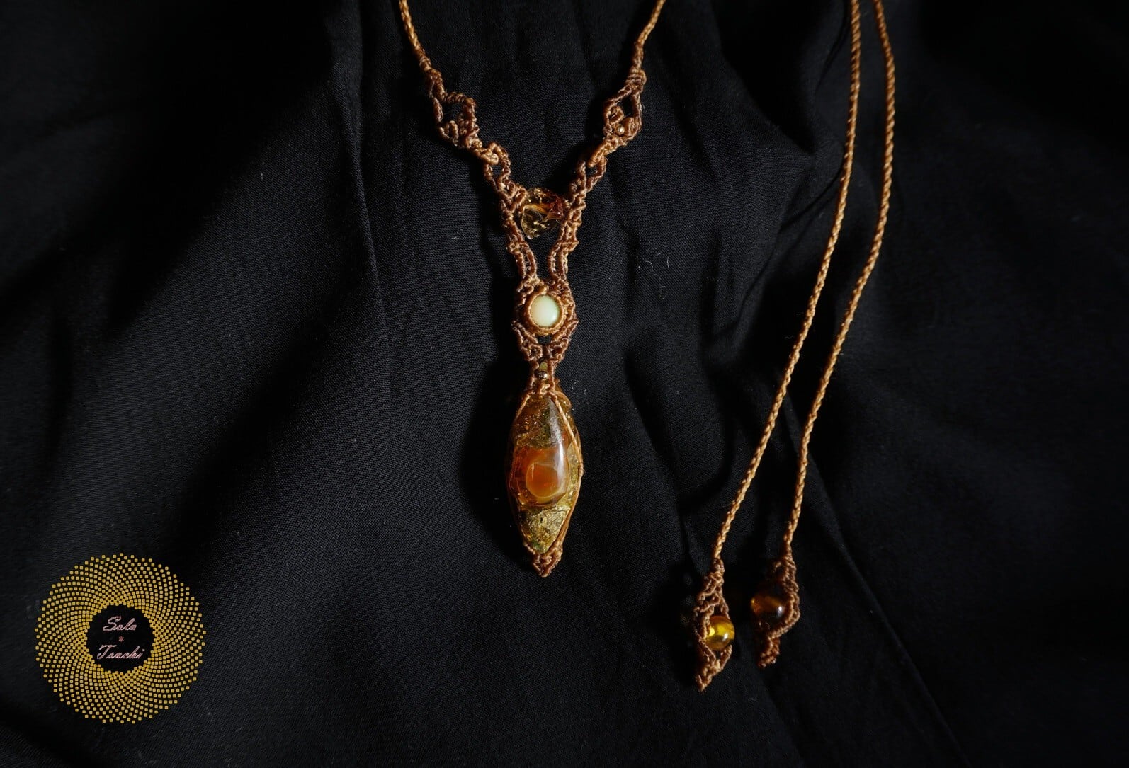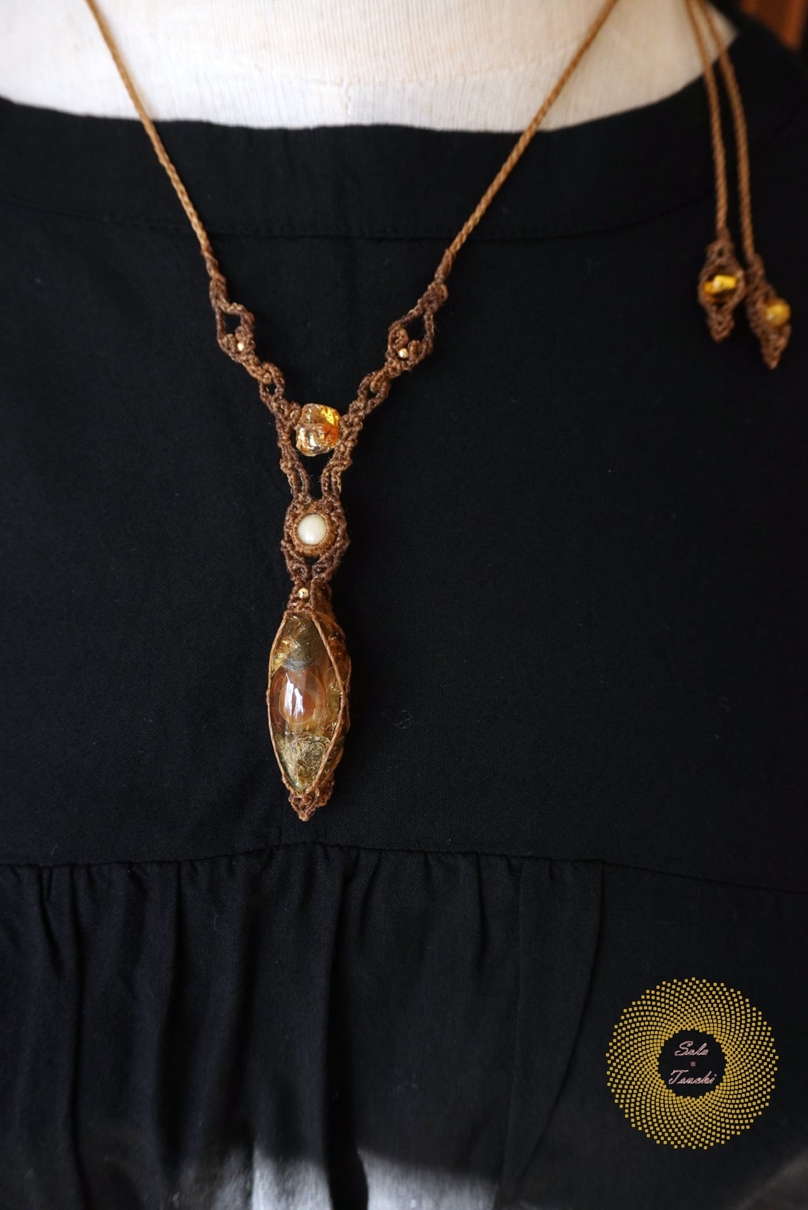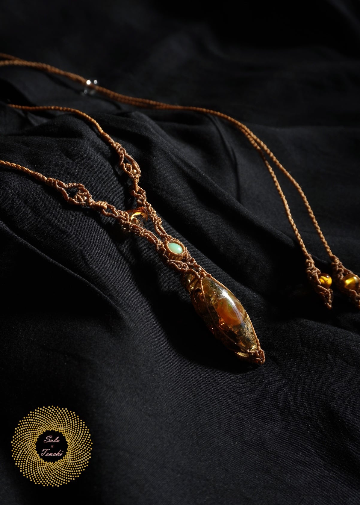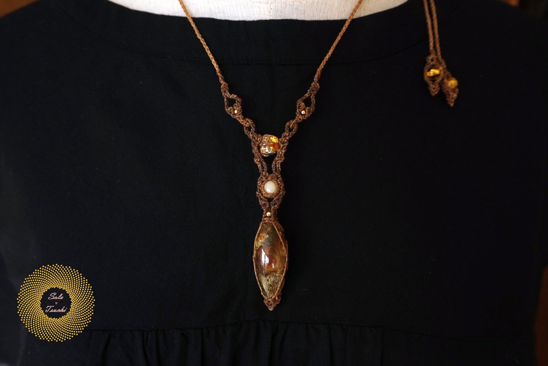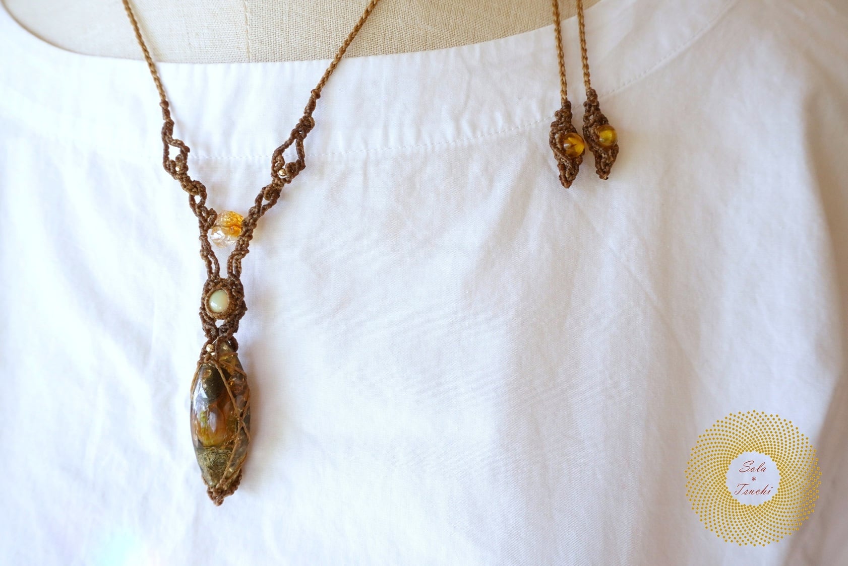(ワックスコード)ふたつのオパールとかっこみシトリンのマクラメ編みペンダント 〜太陽神〜