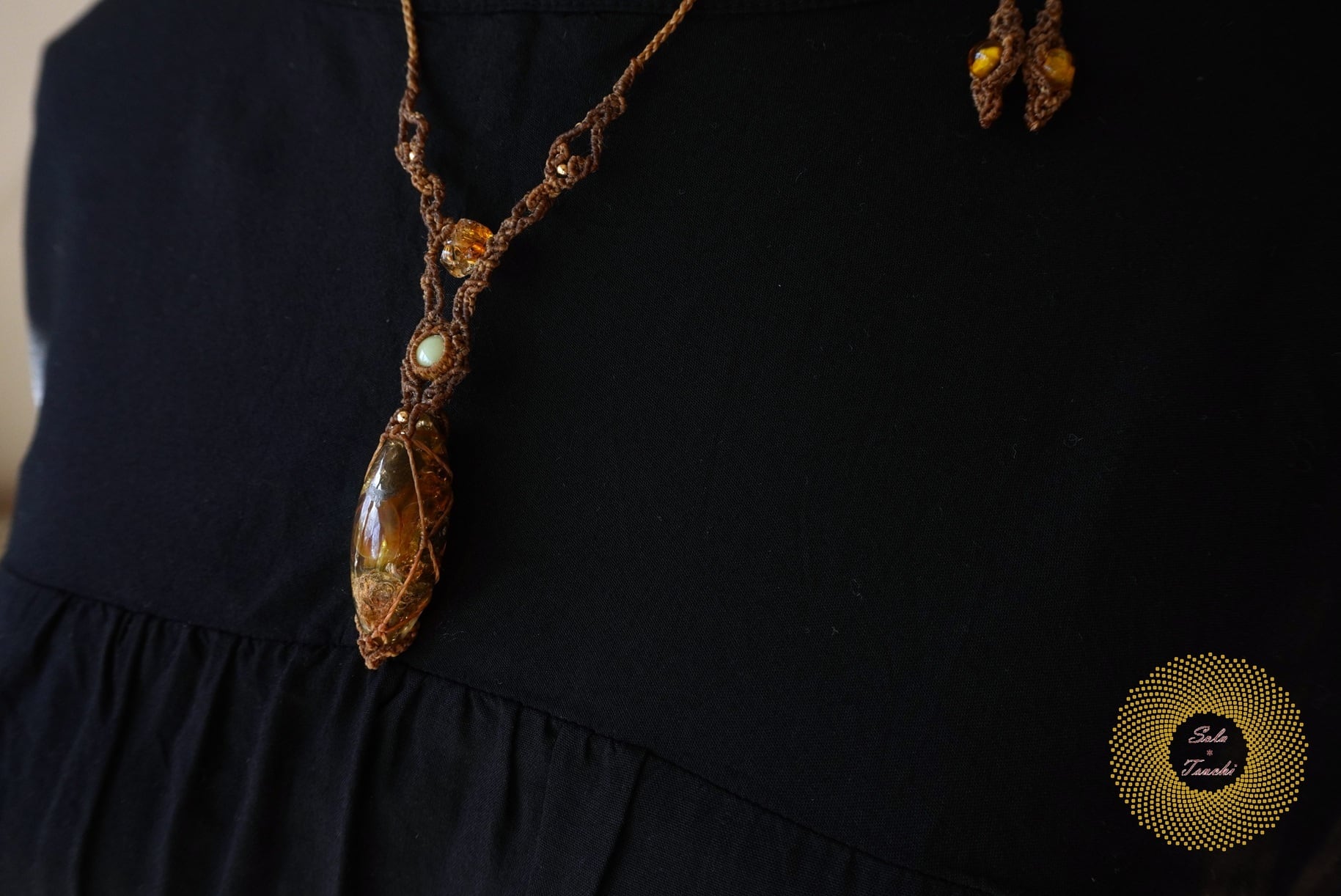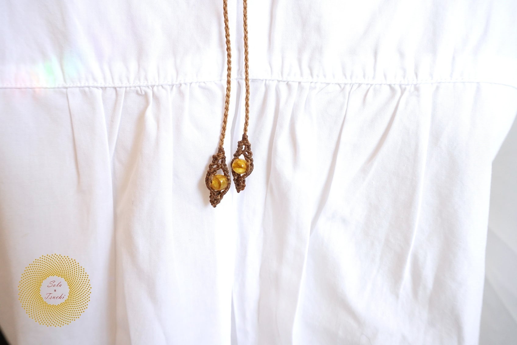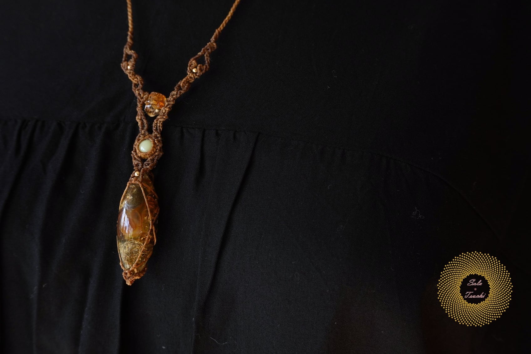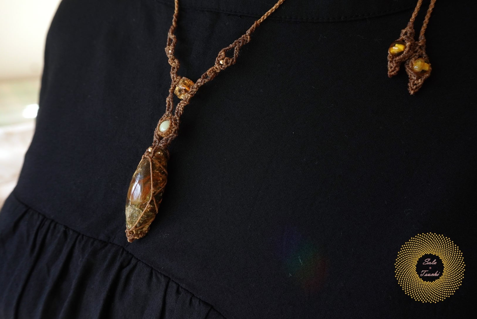 (ワックスコード)ふたつのオパールとかっこみシトリンのマクラメ編みペンダント 〜太陽神〜