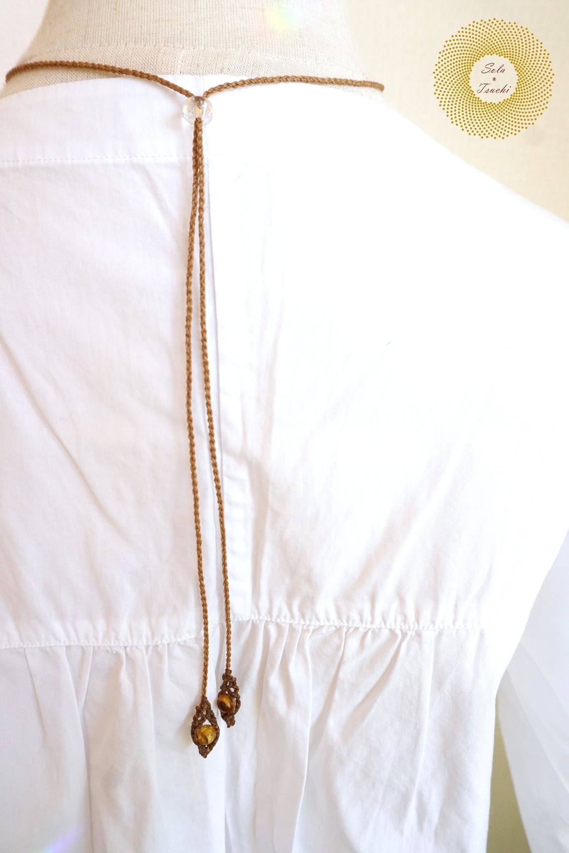 編みひもは 土を感じさせるゴールドブラウン色