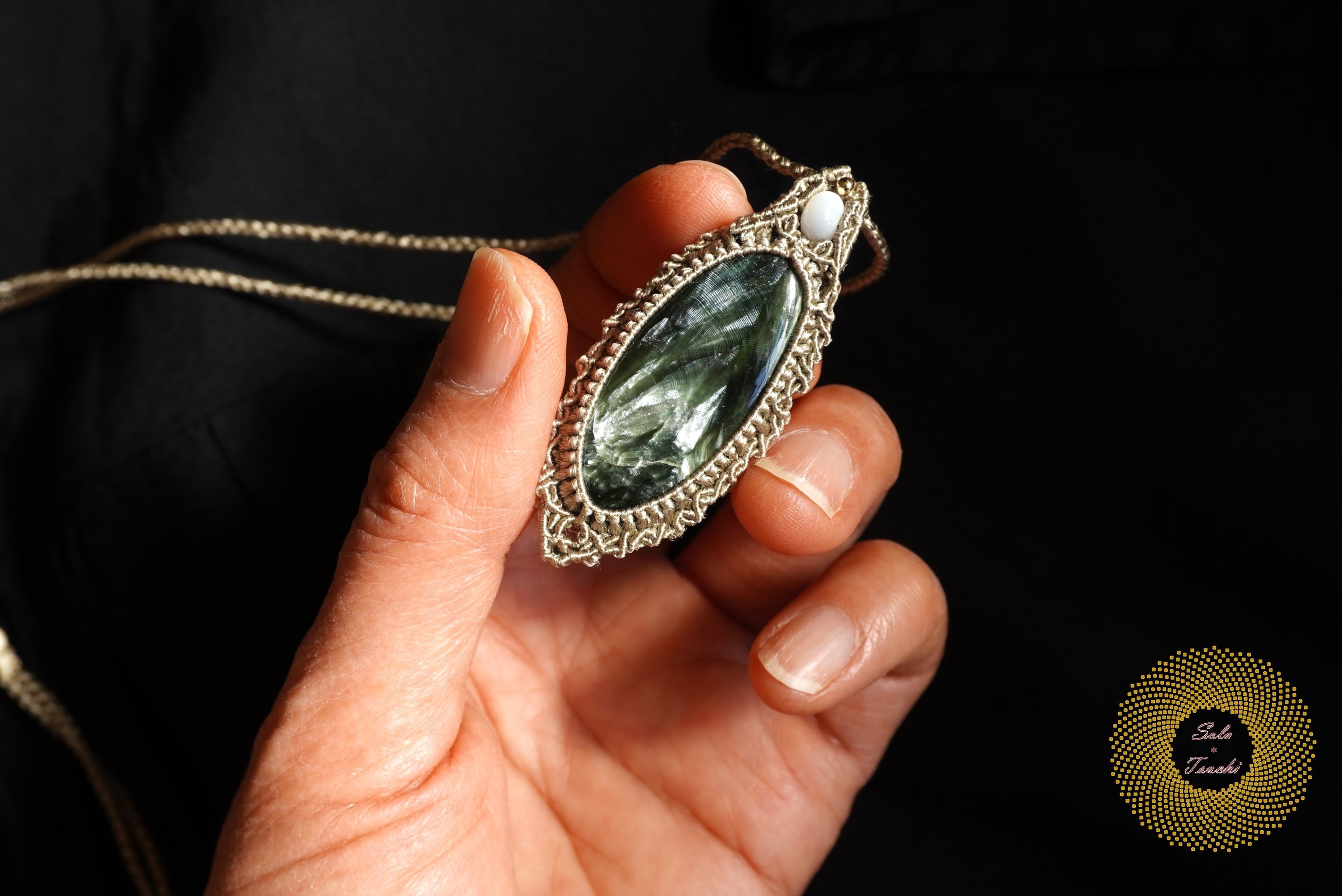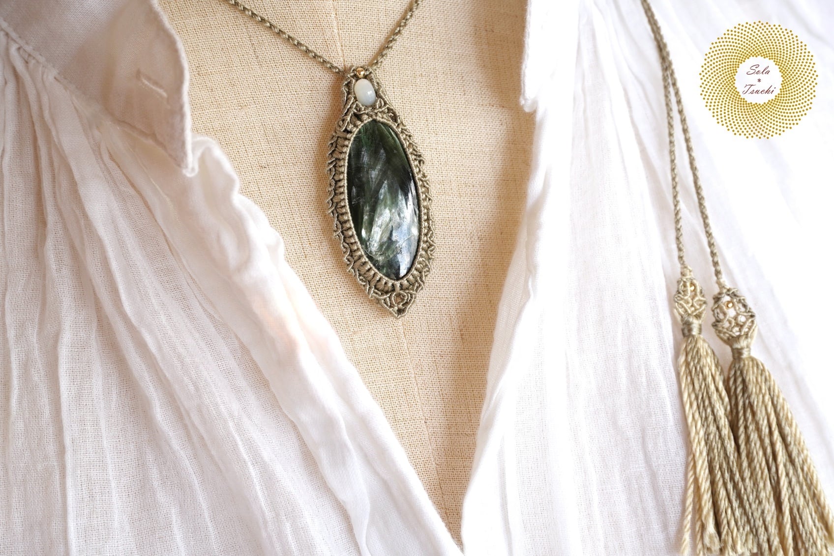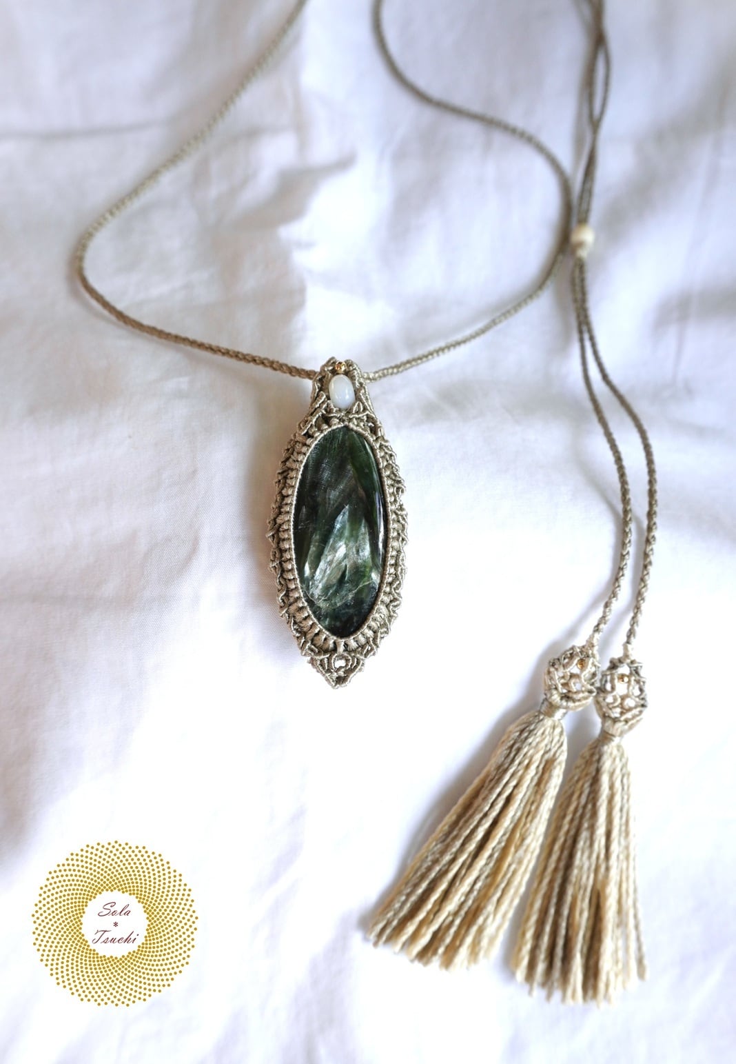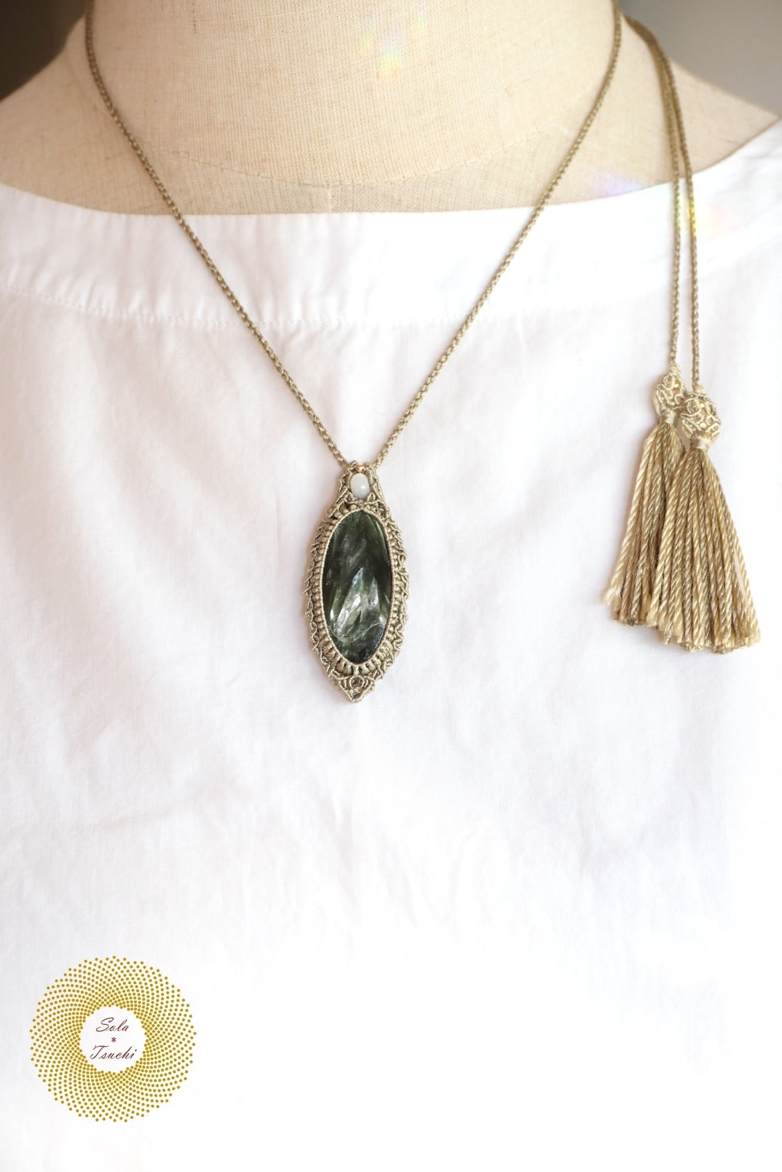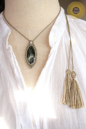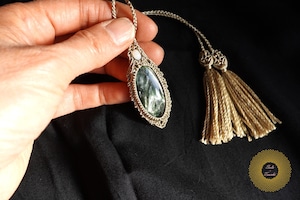 (絹糸)セラフィナイトのマクラメ編みペンダント 〜Light path〜