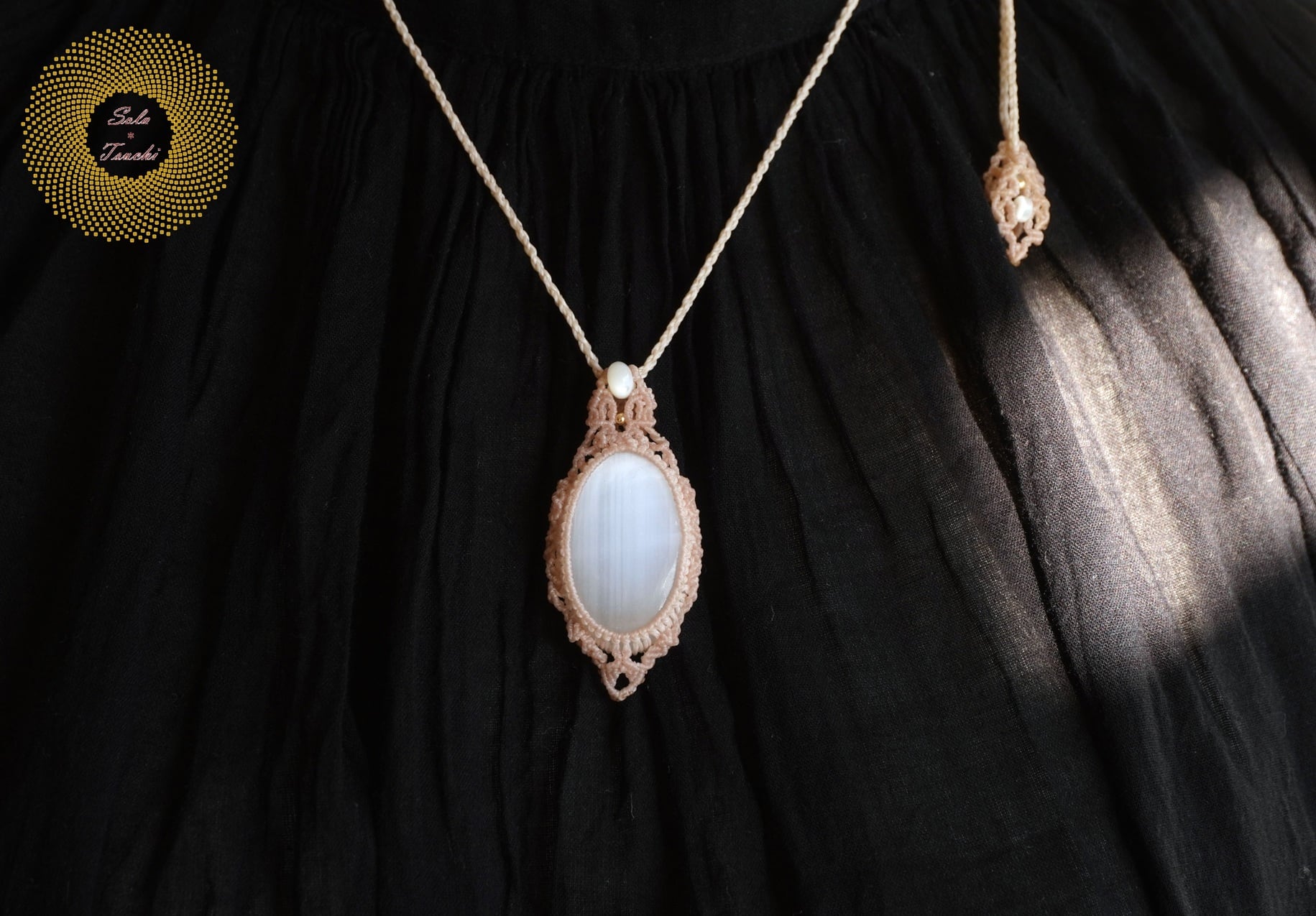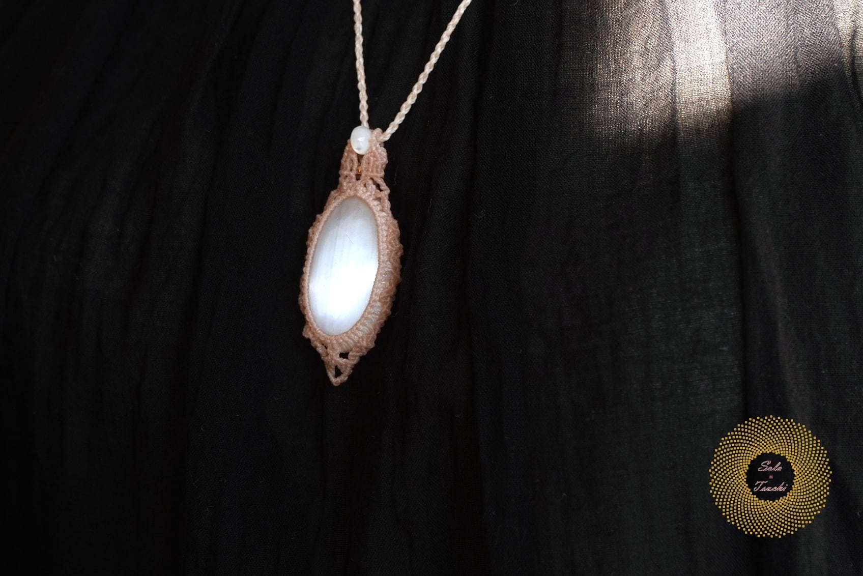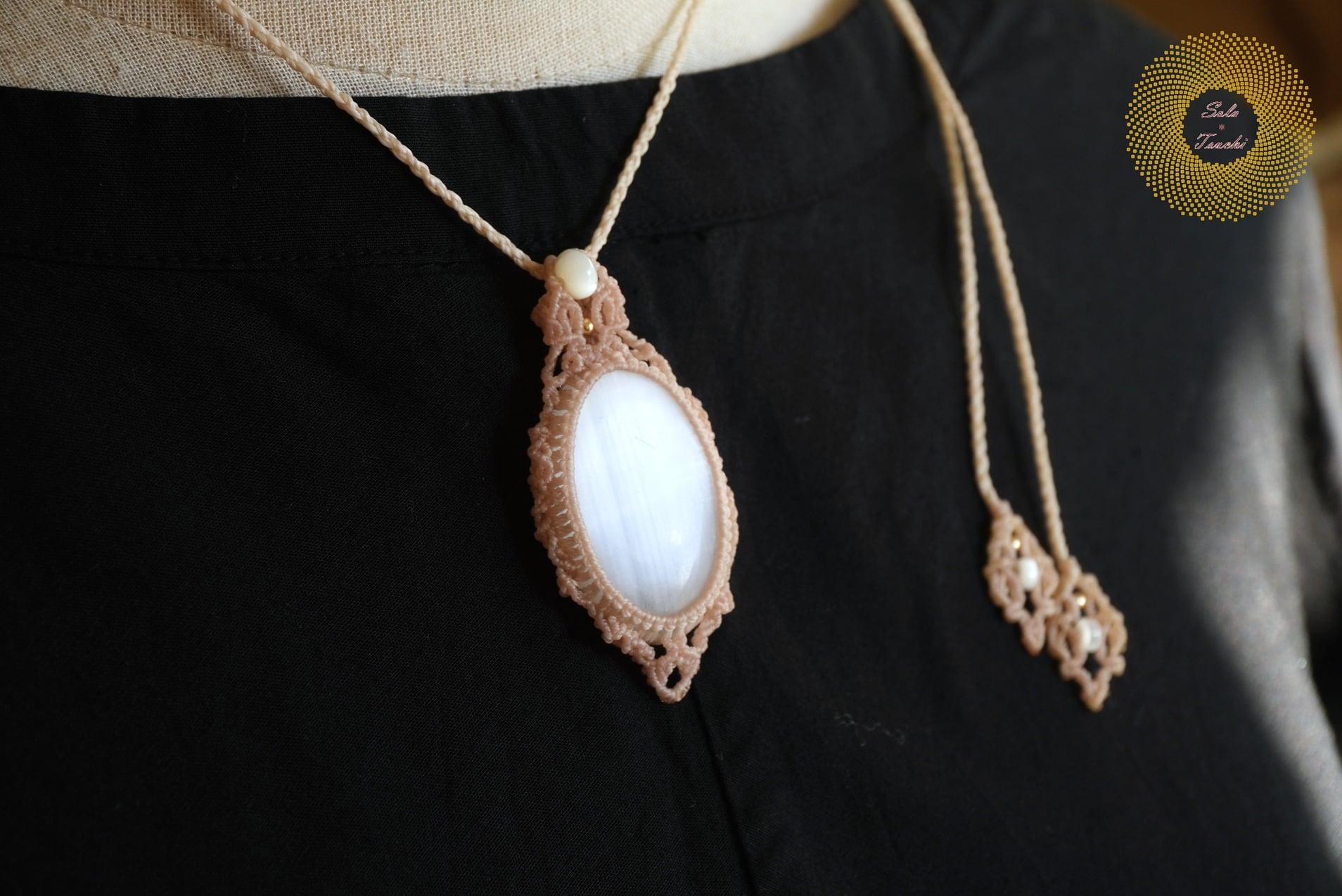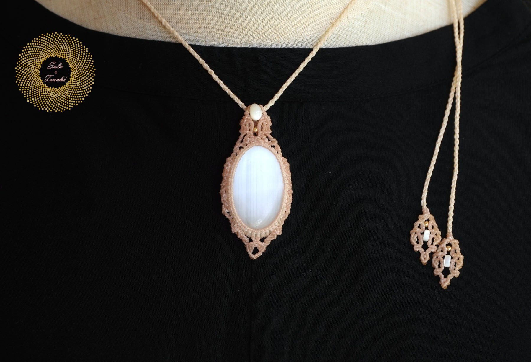 (ワックスコード)セレナイトのマクラメ編みペンダント 〜The Light〜