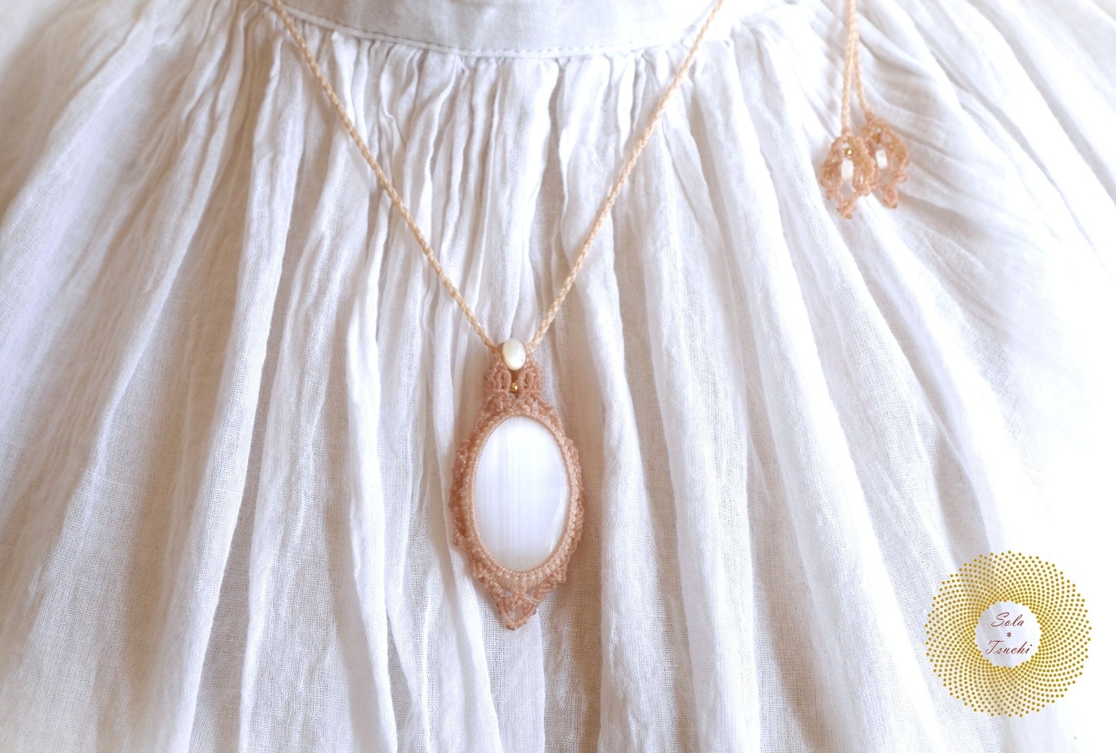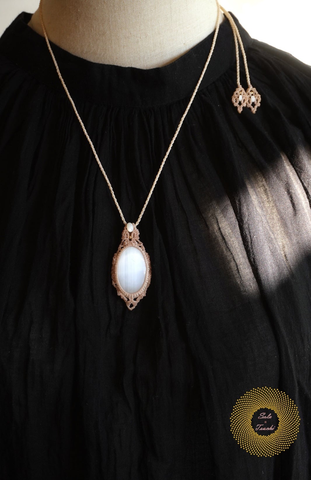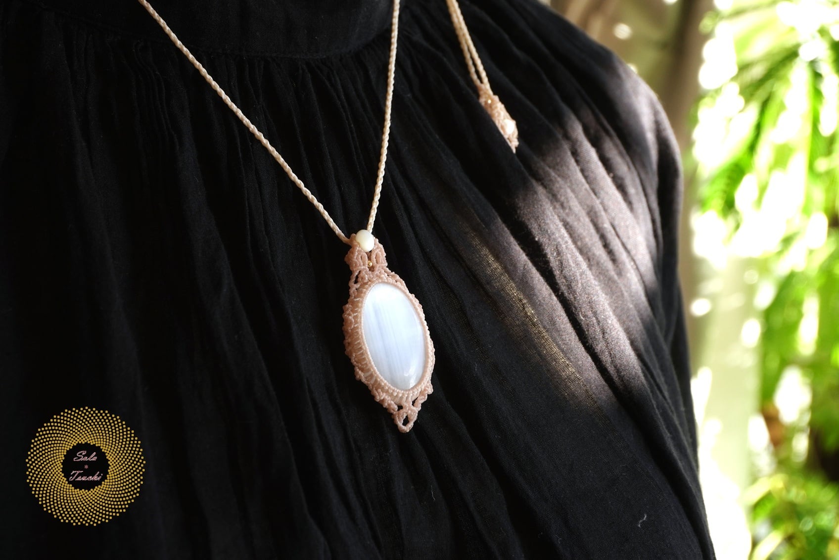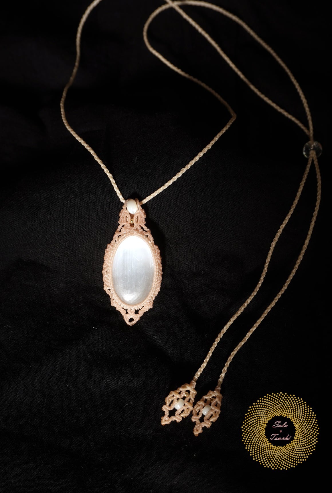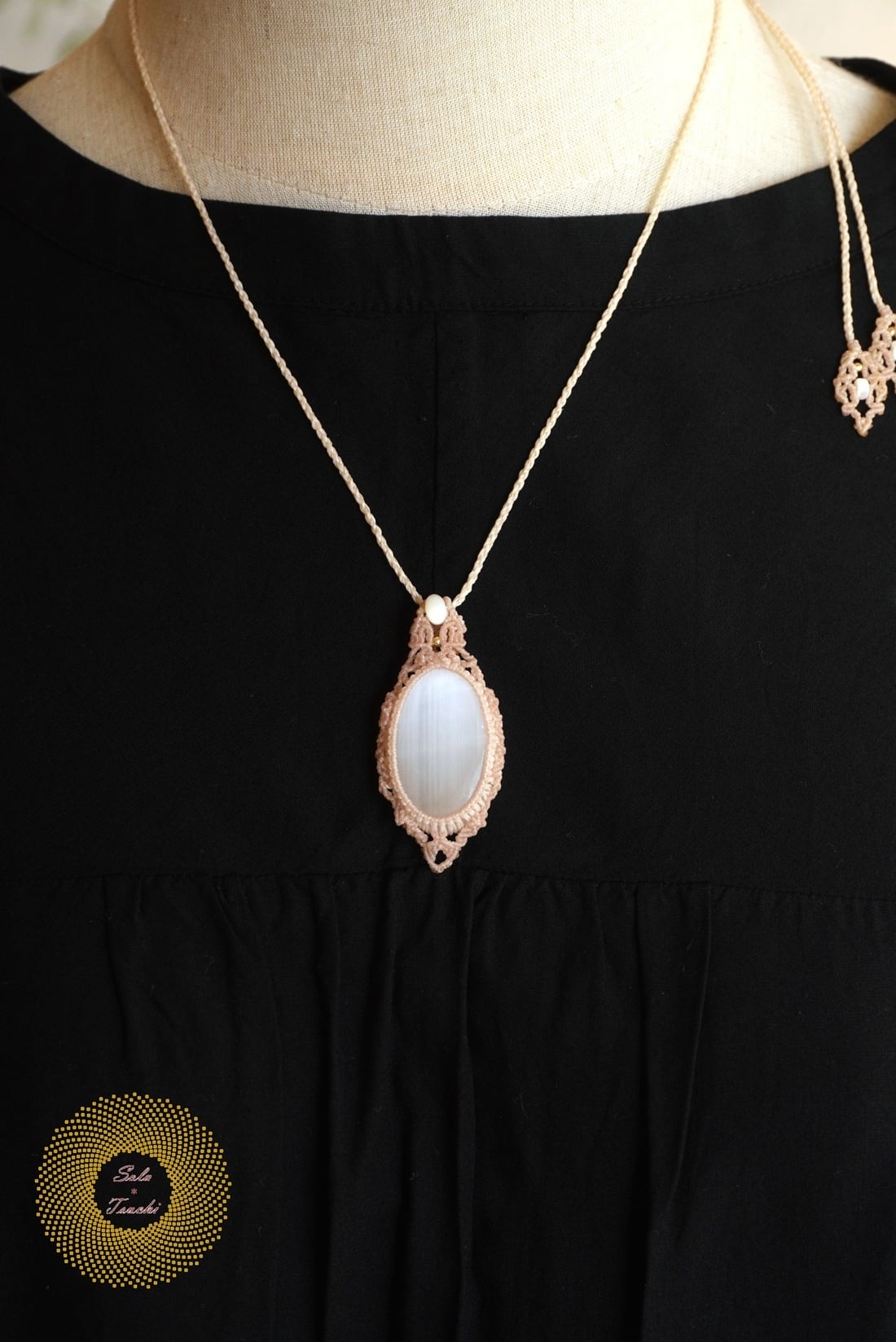 (ワックスコード)セレナイトのマクラメ編みペンダント 〜The Light〜