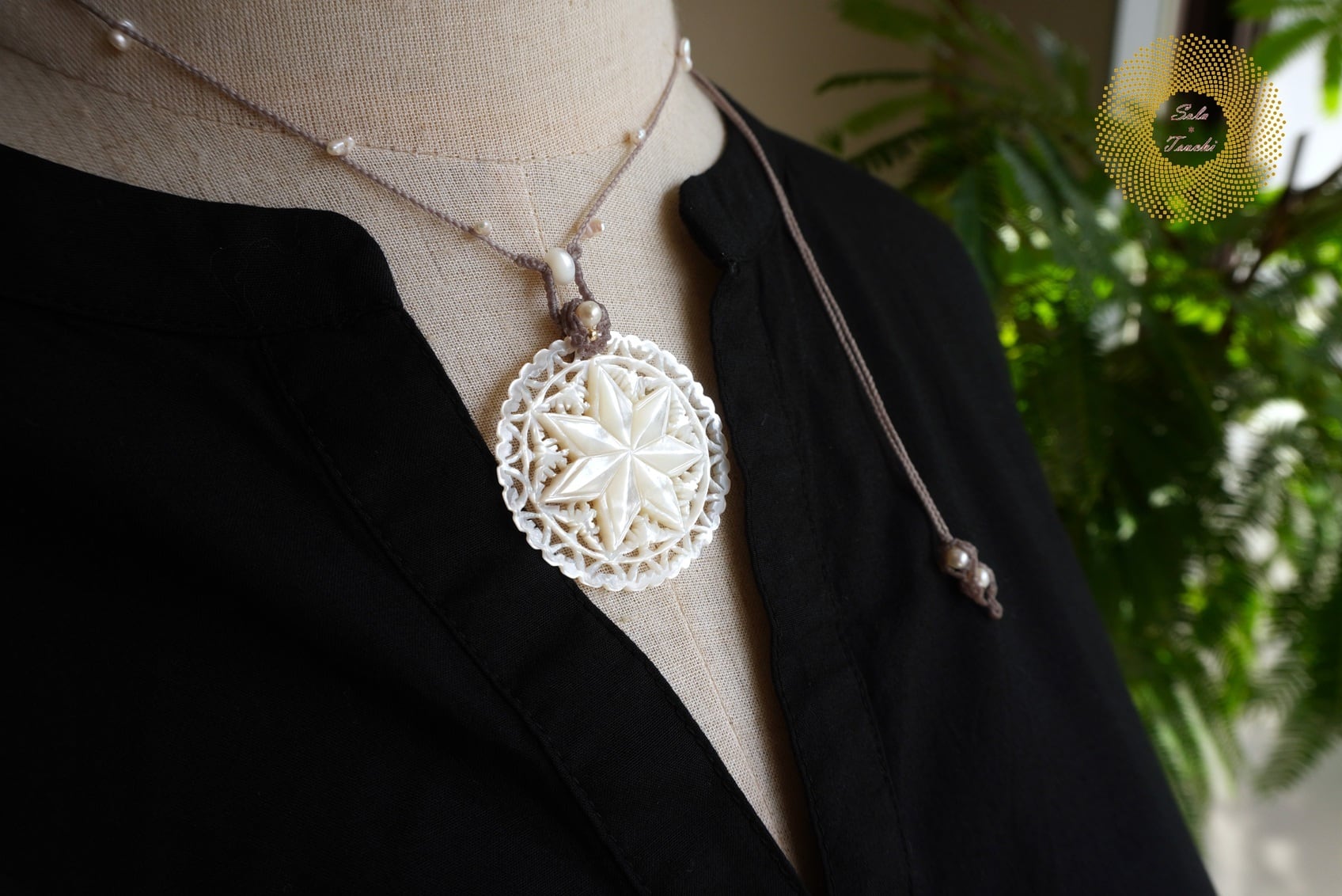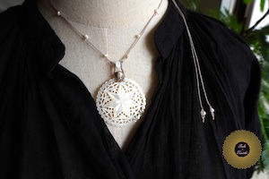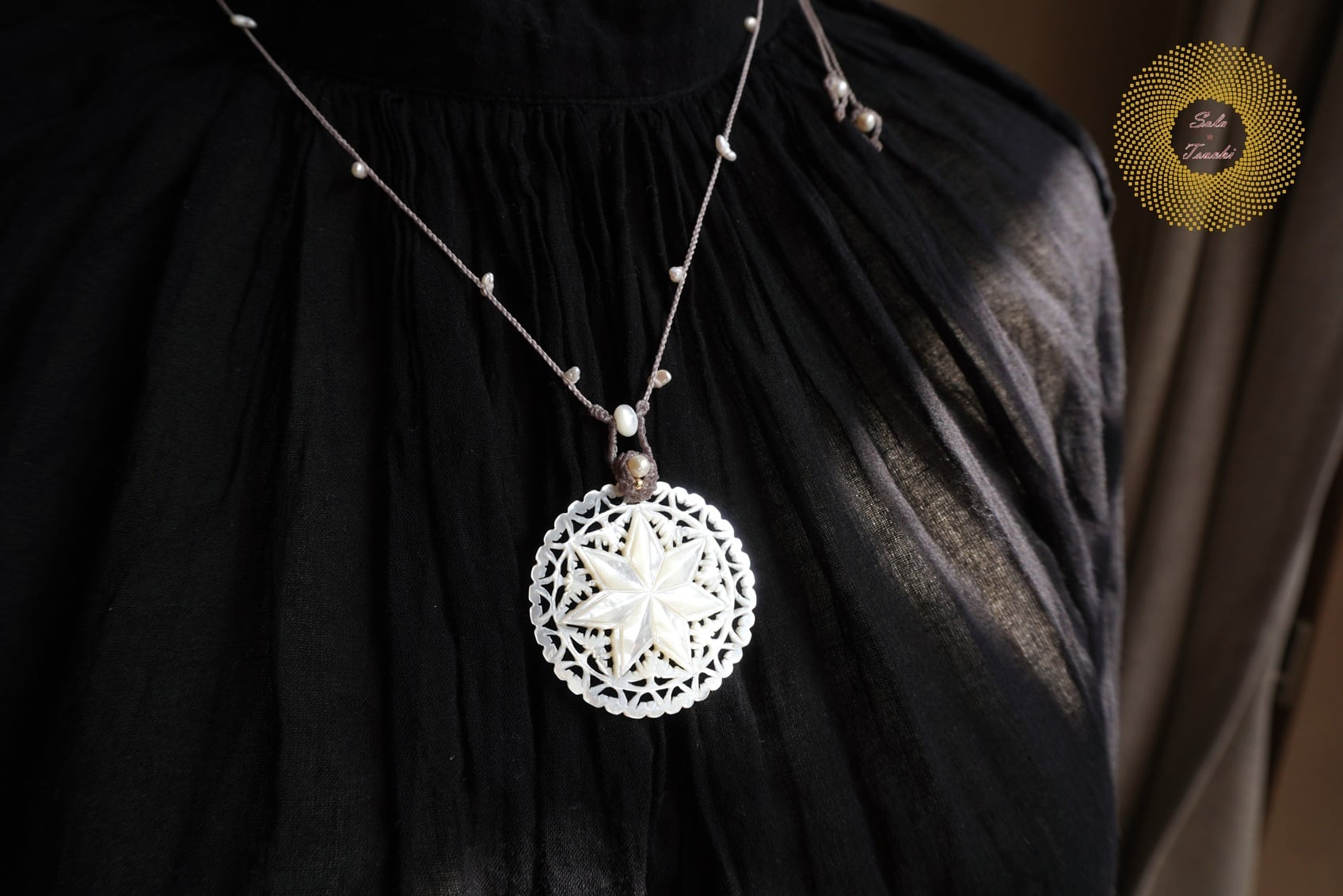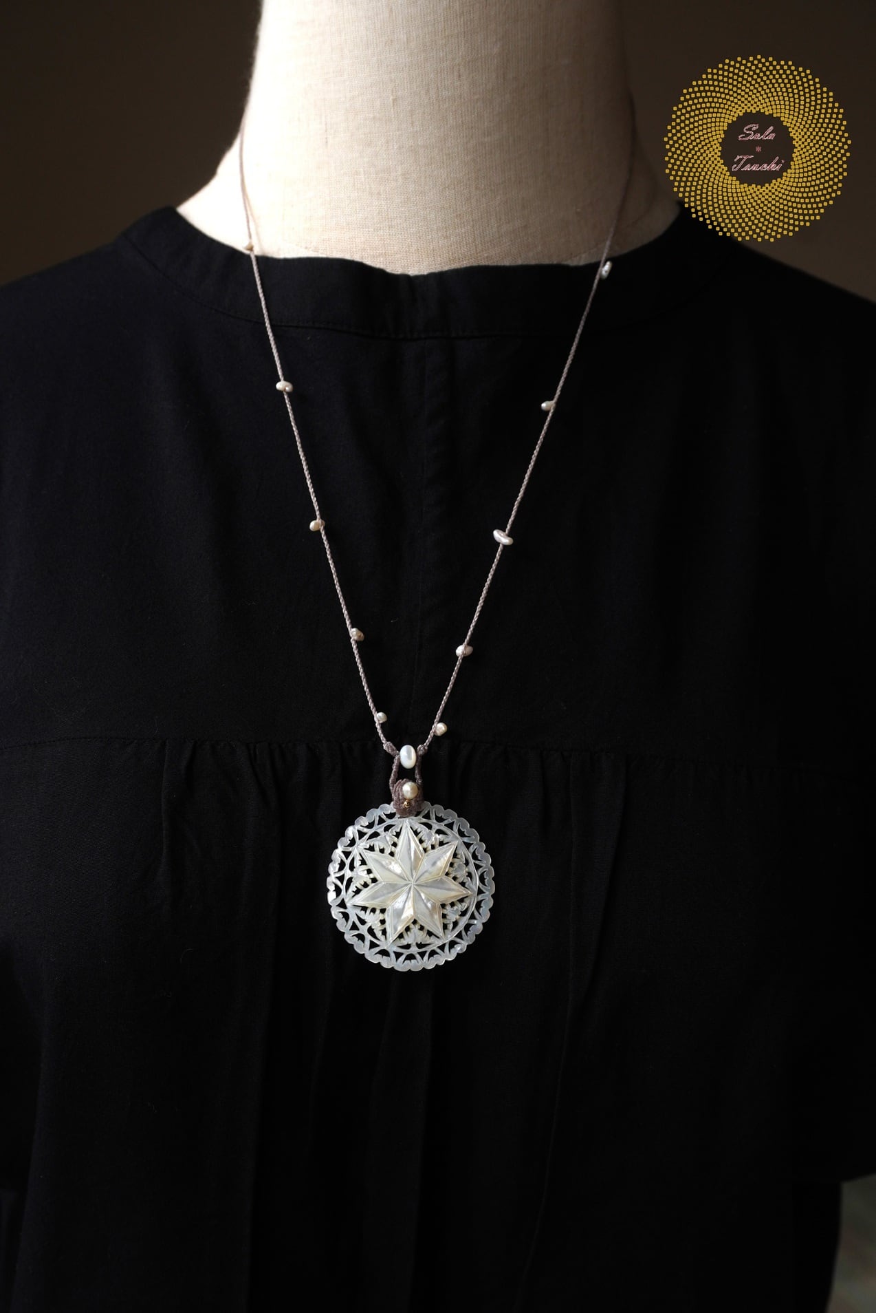 胸元で輝き拡がるベツレヘムパールのペンダントに