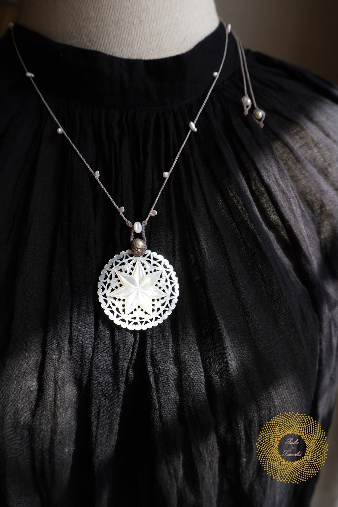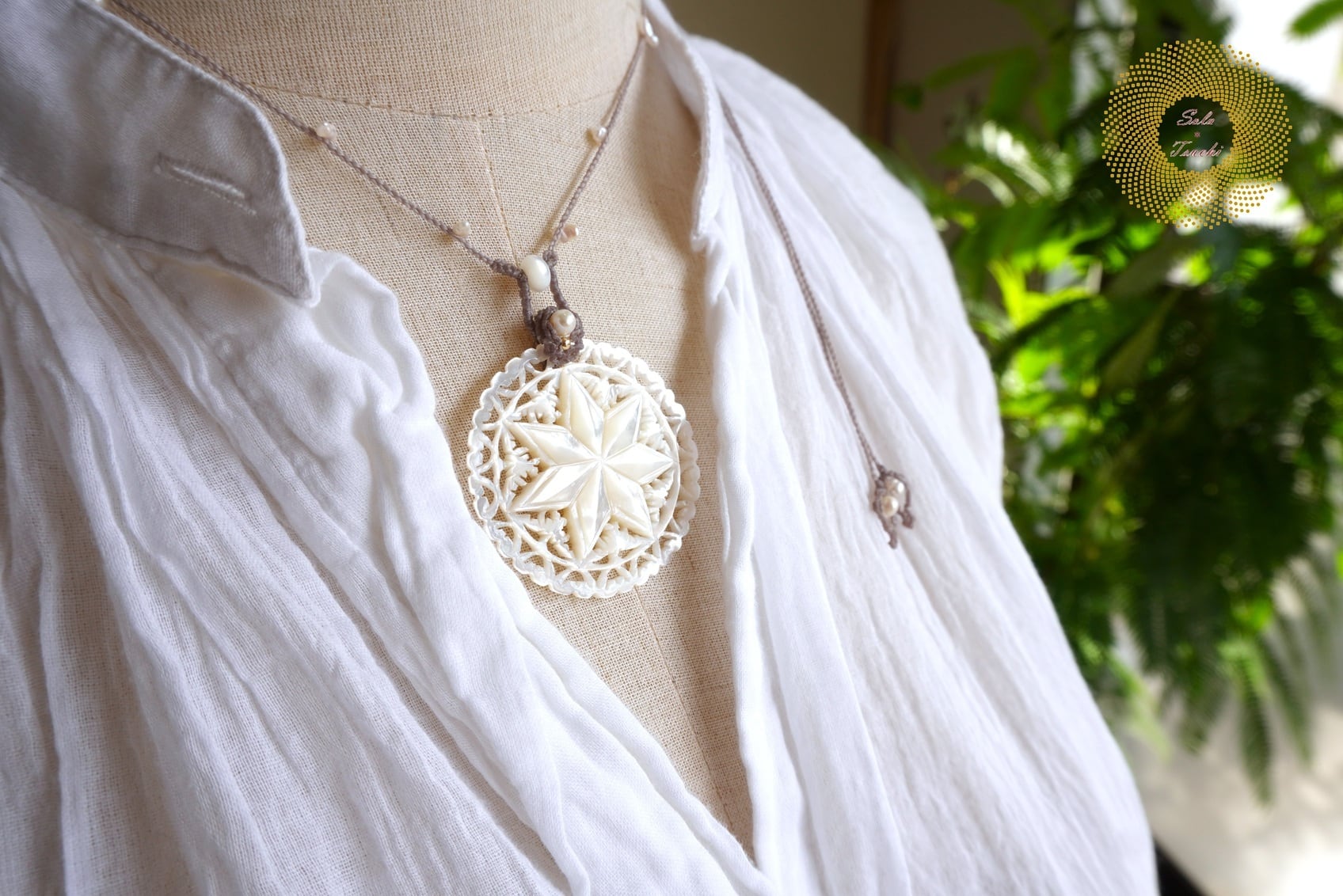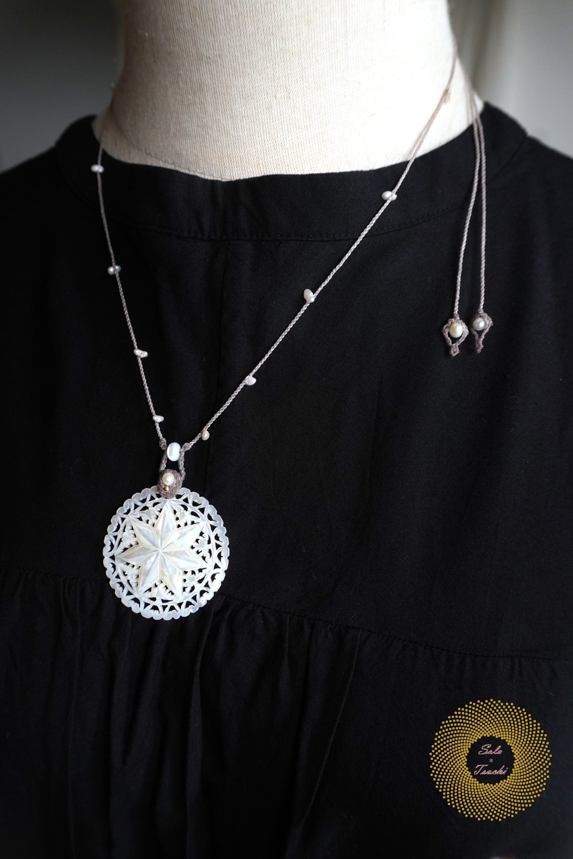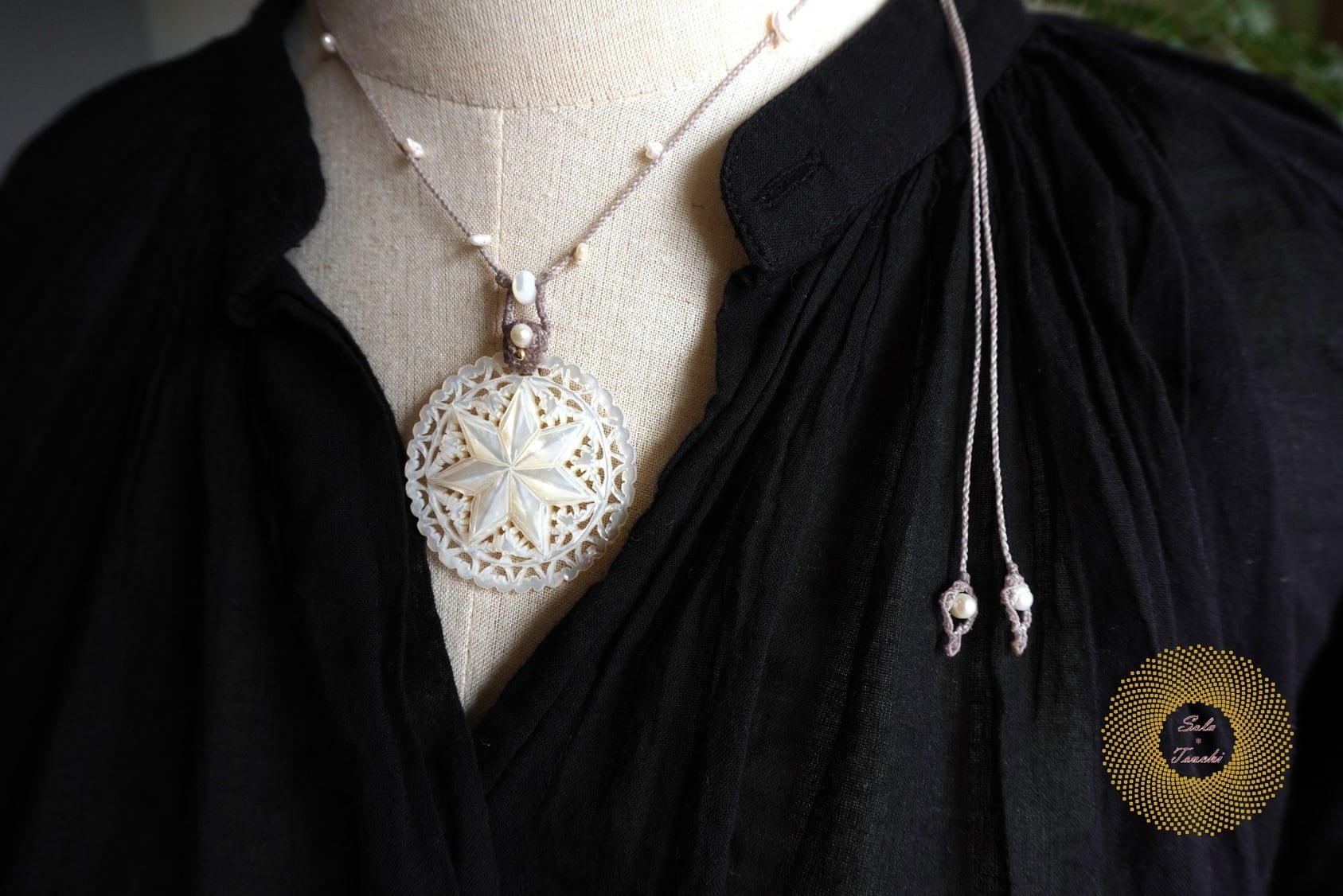 (ワックスコード)ベツレヘムパールと淡水パールのマクラメ編みペンダント 〜Star Light〜