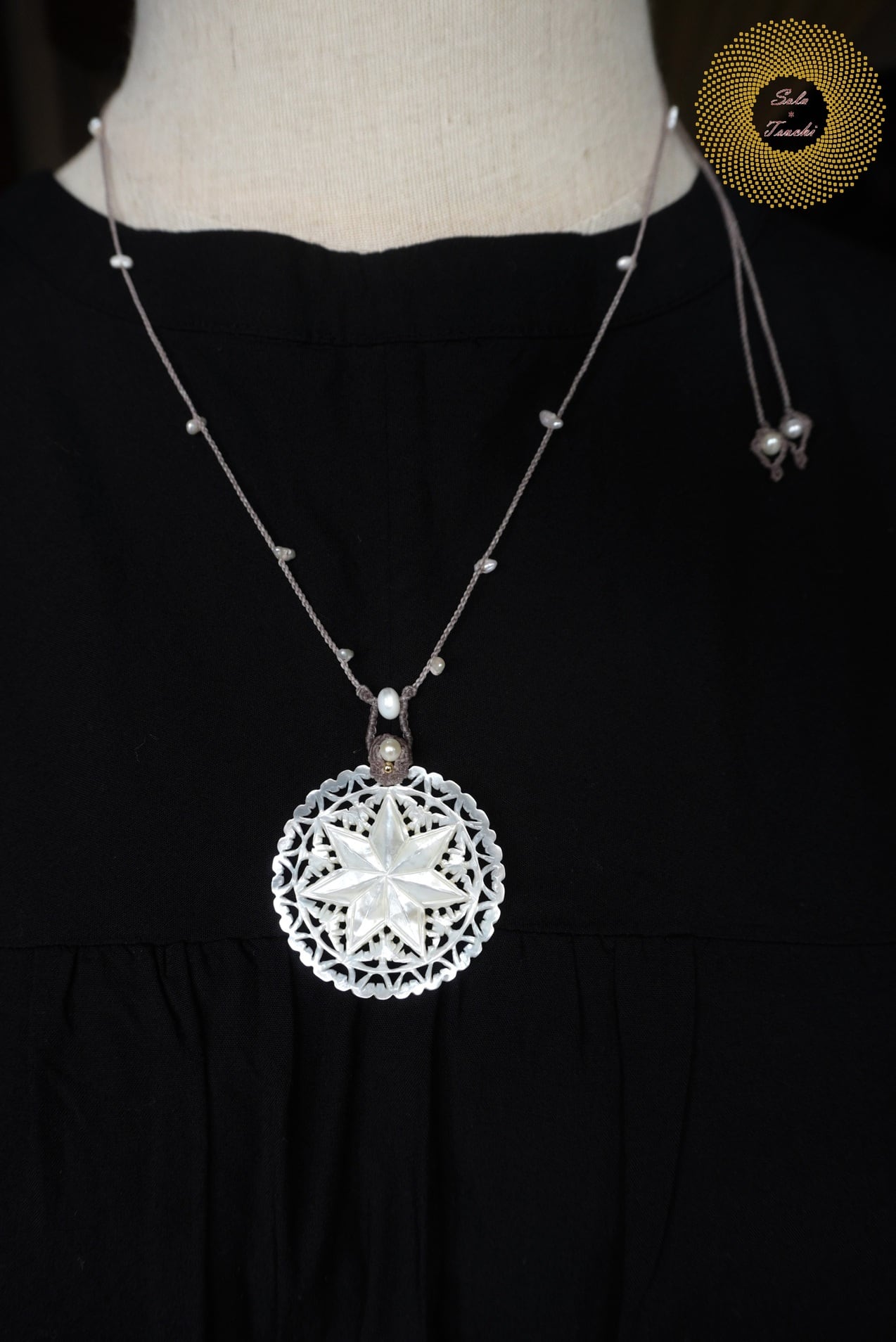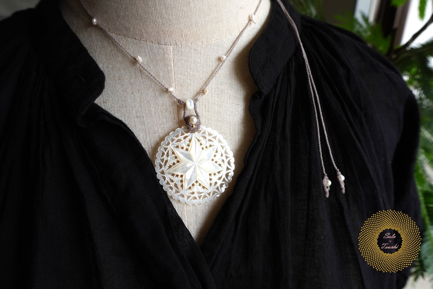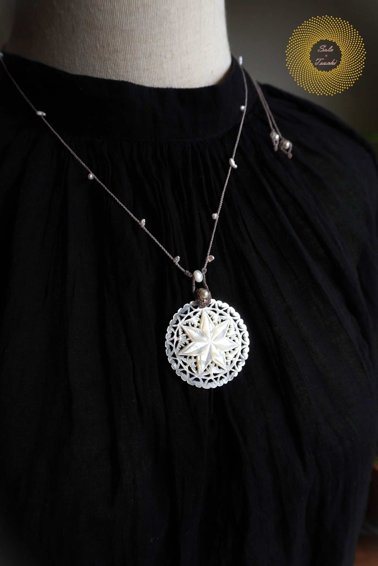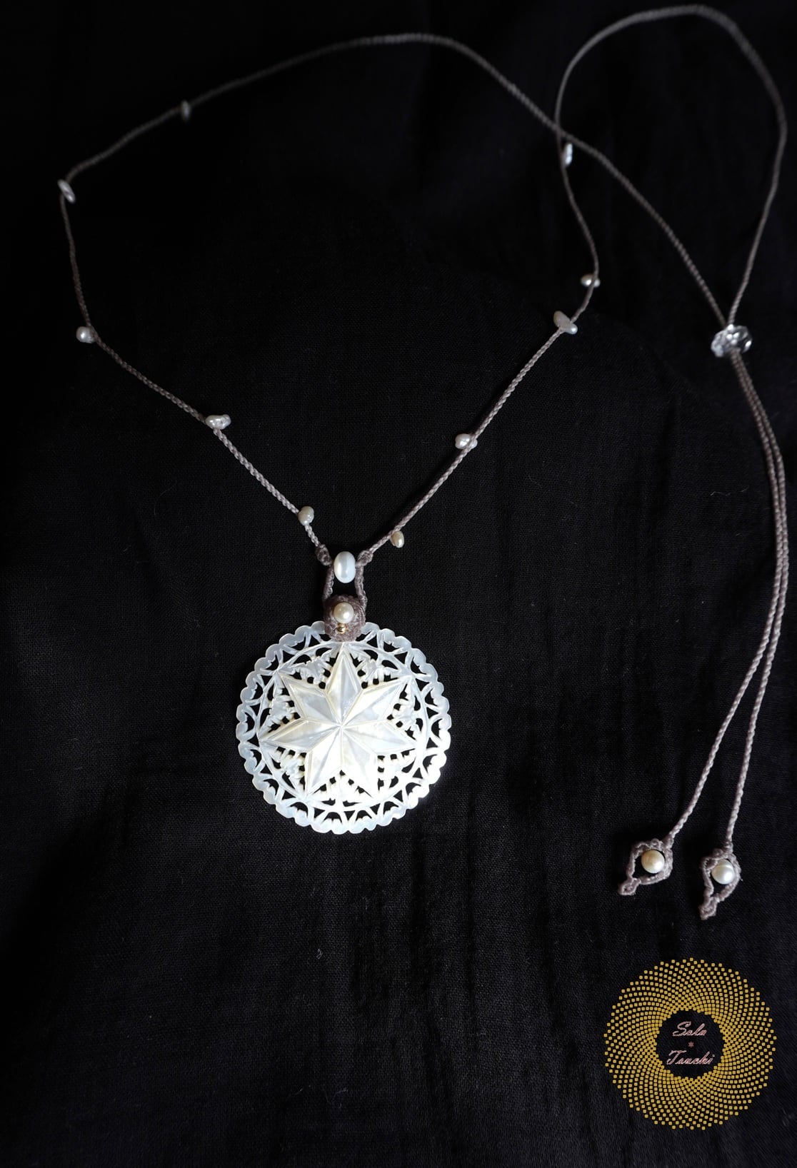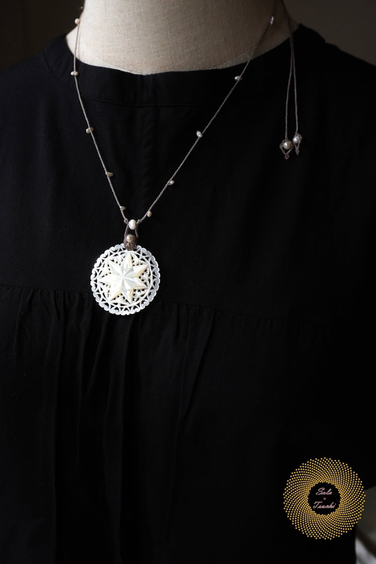 (ワックスコード)ベツレヘムパールと淡水パールのマクラメ編みペンダント 〜Star Light〜