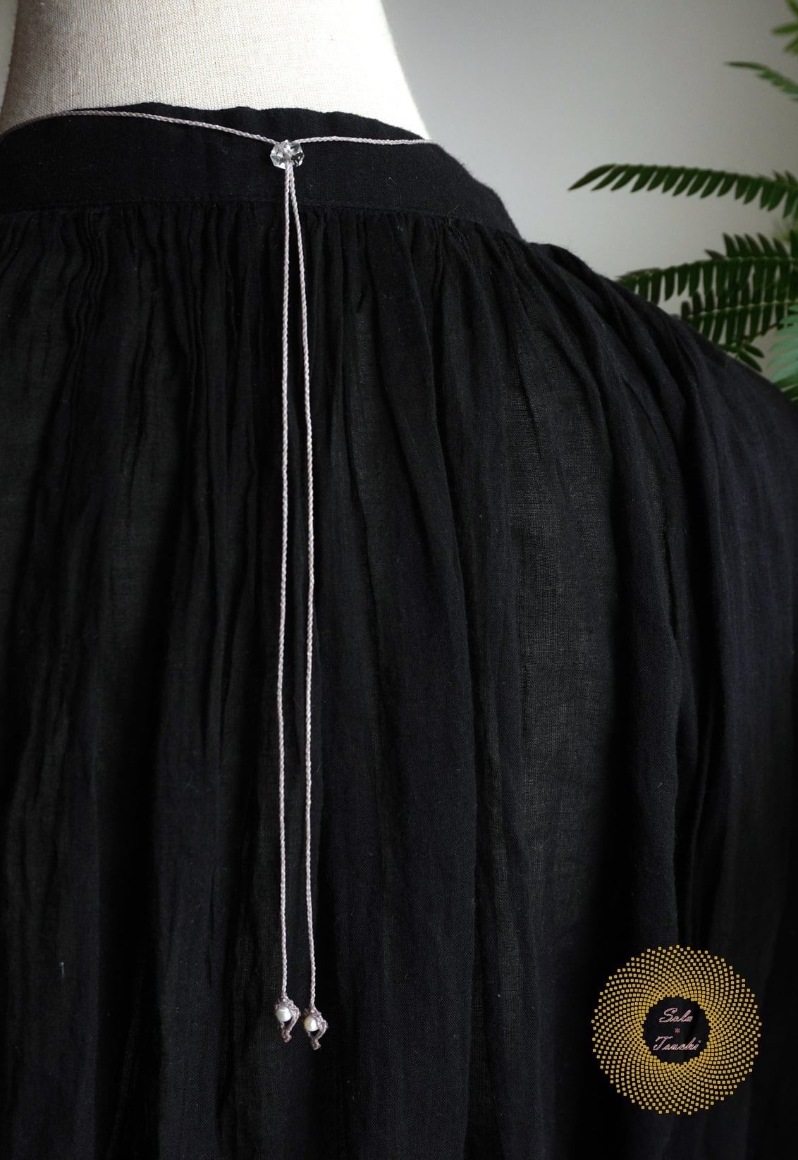 頭をくぐらせて装着し、2本をまとめている水晶(アジャスター)