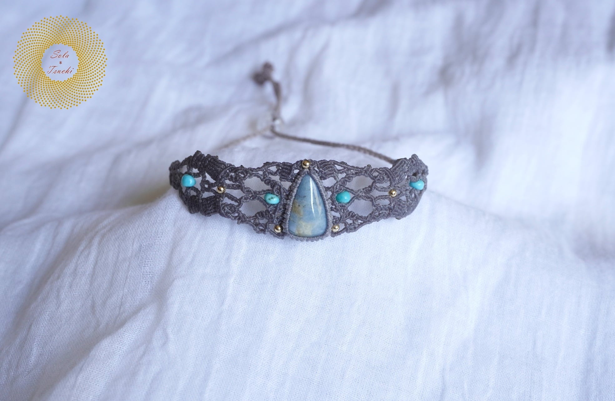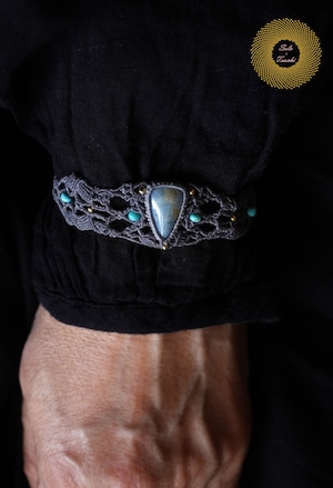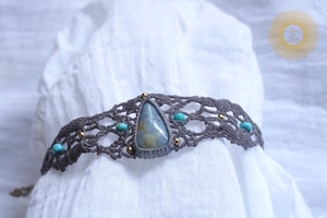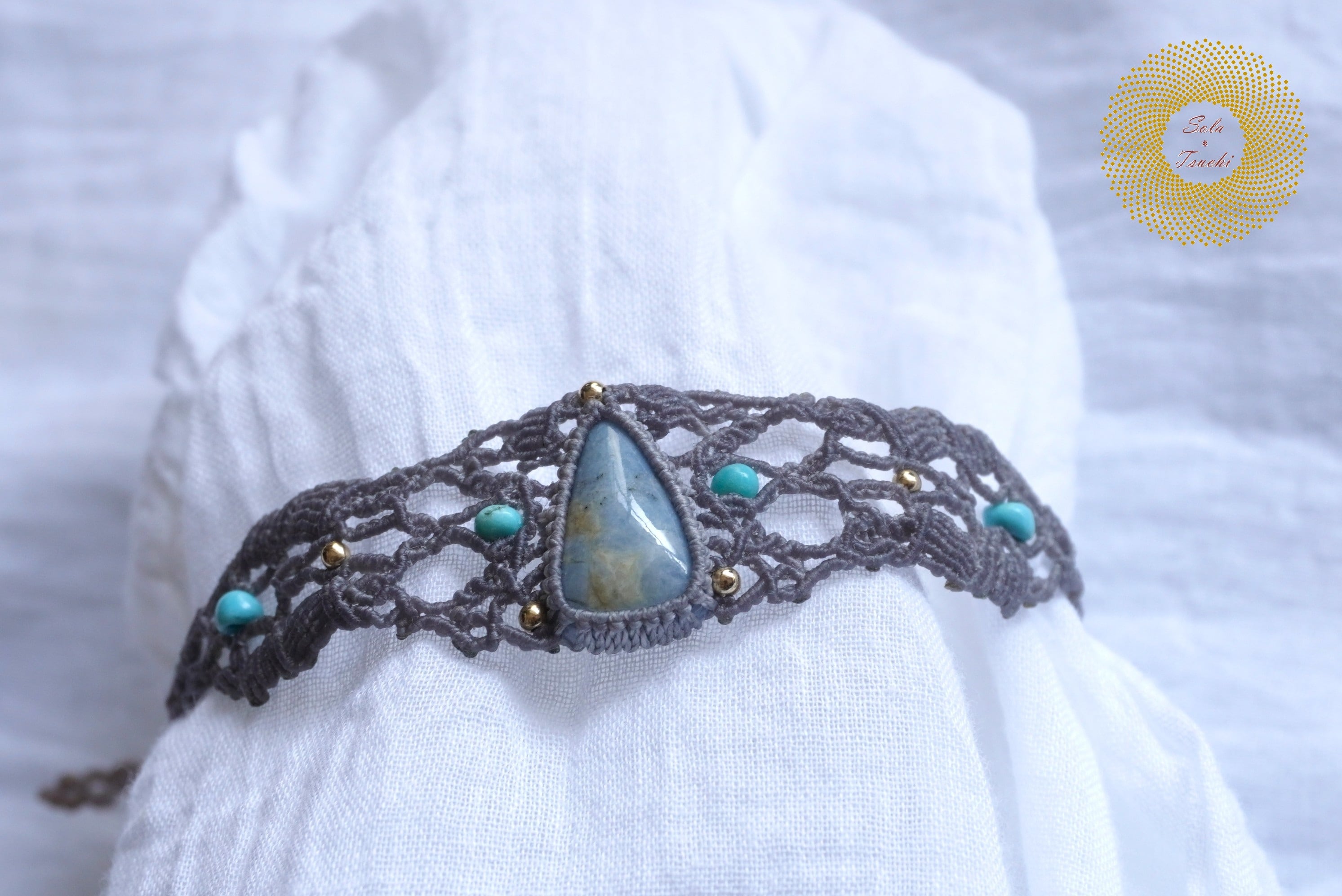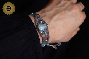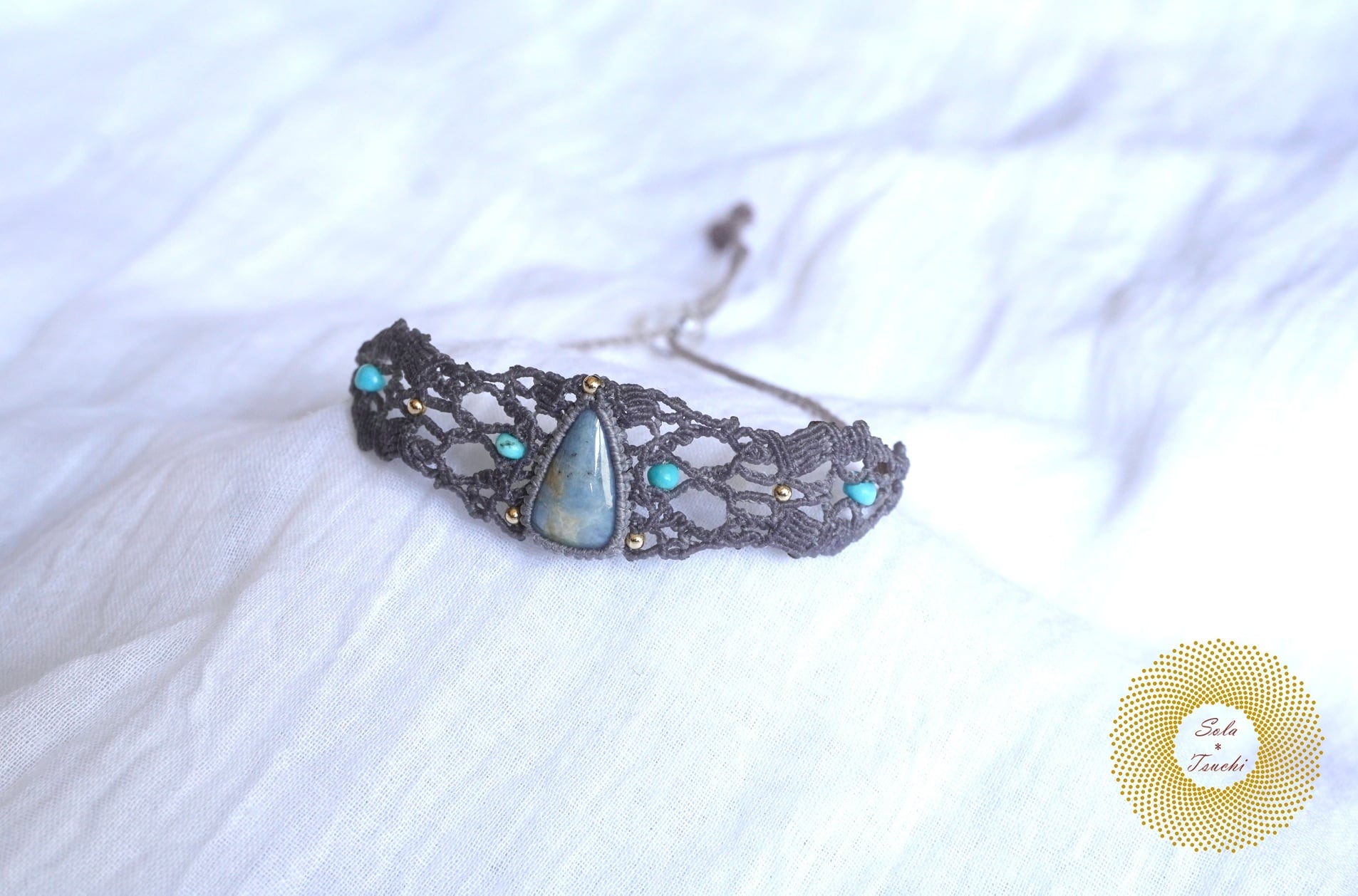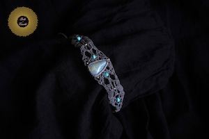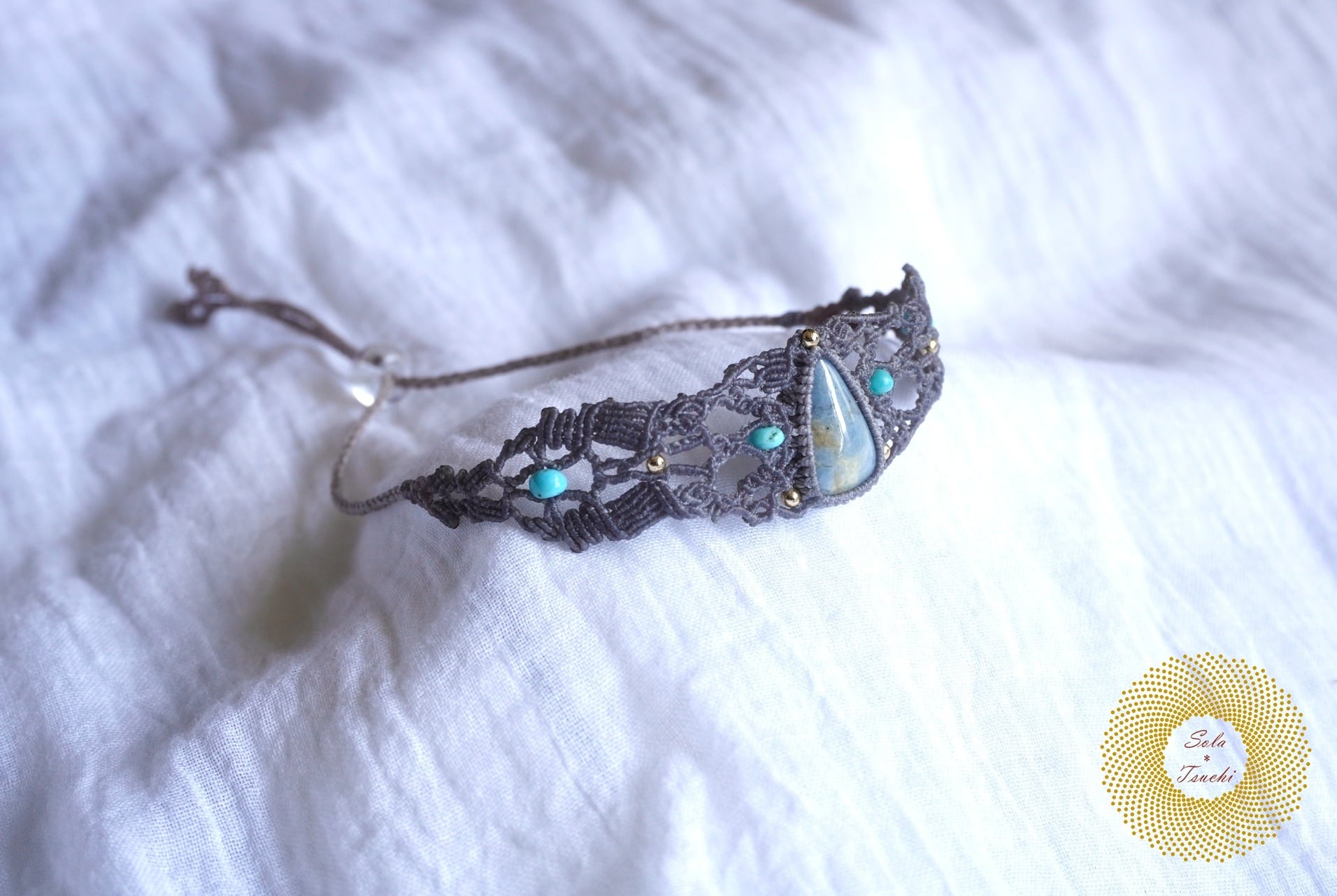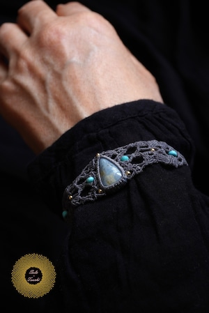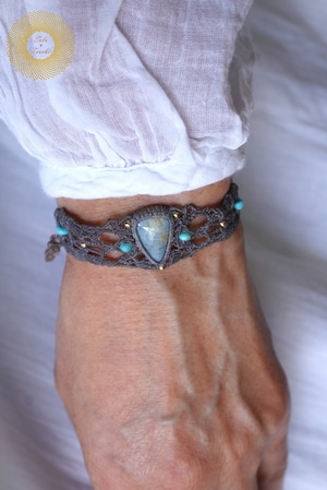 (ワックスコード)鳥取県産 青翡翠のマクラメ編みブレスレット 〜Slow Time〜