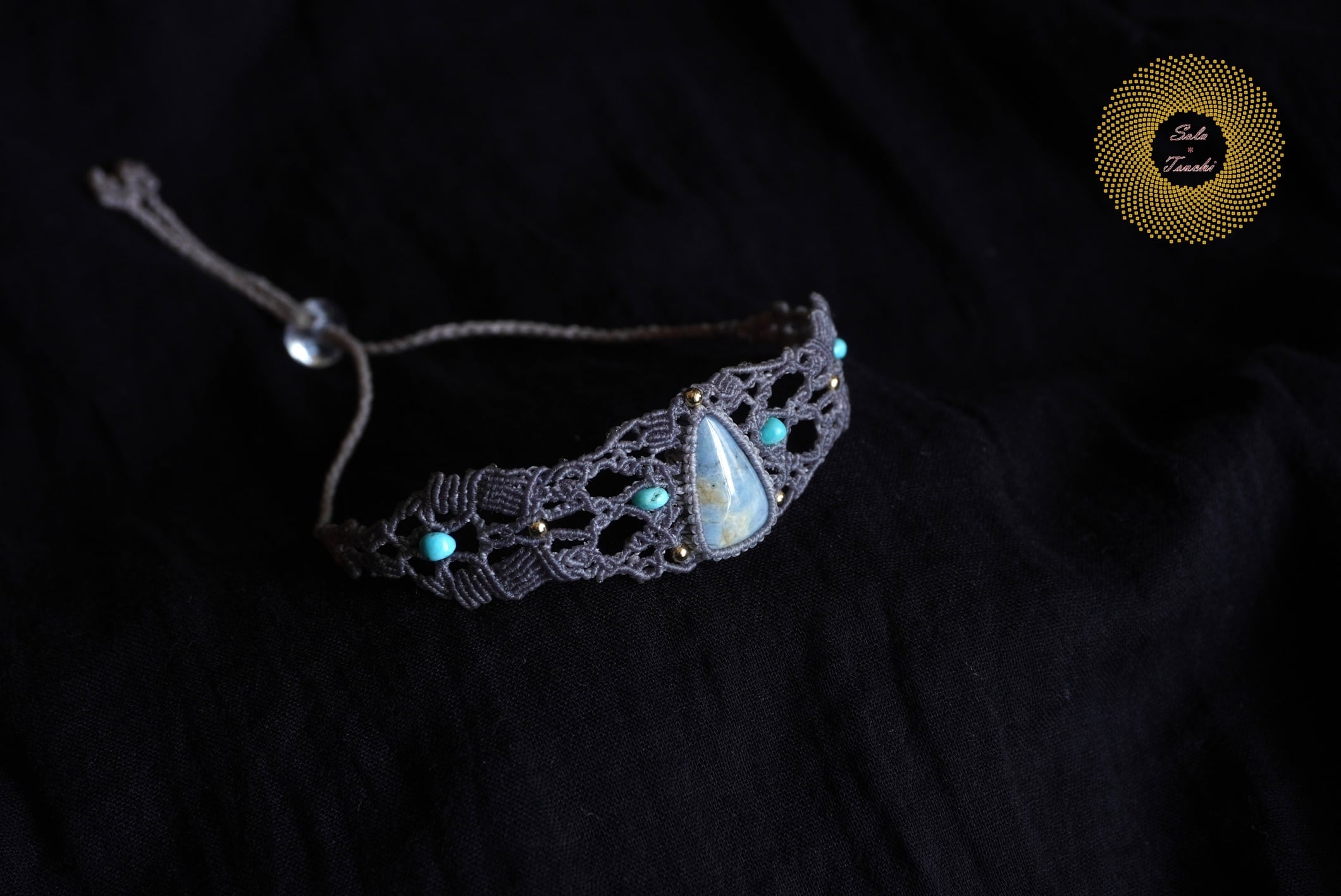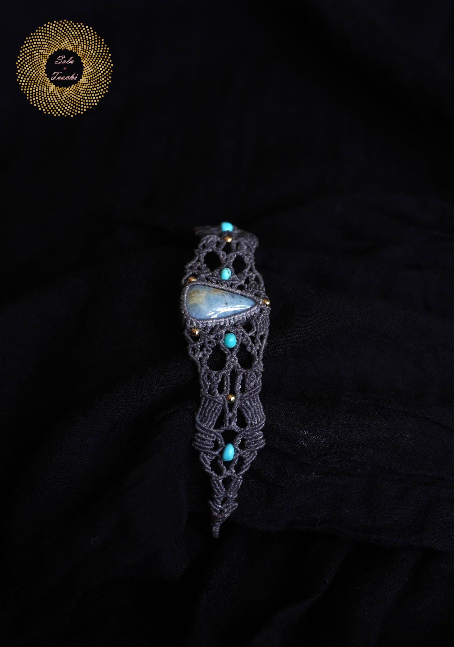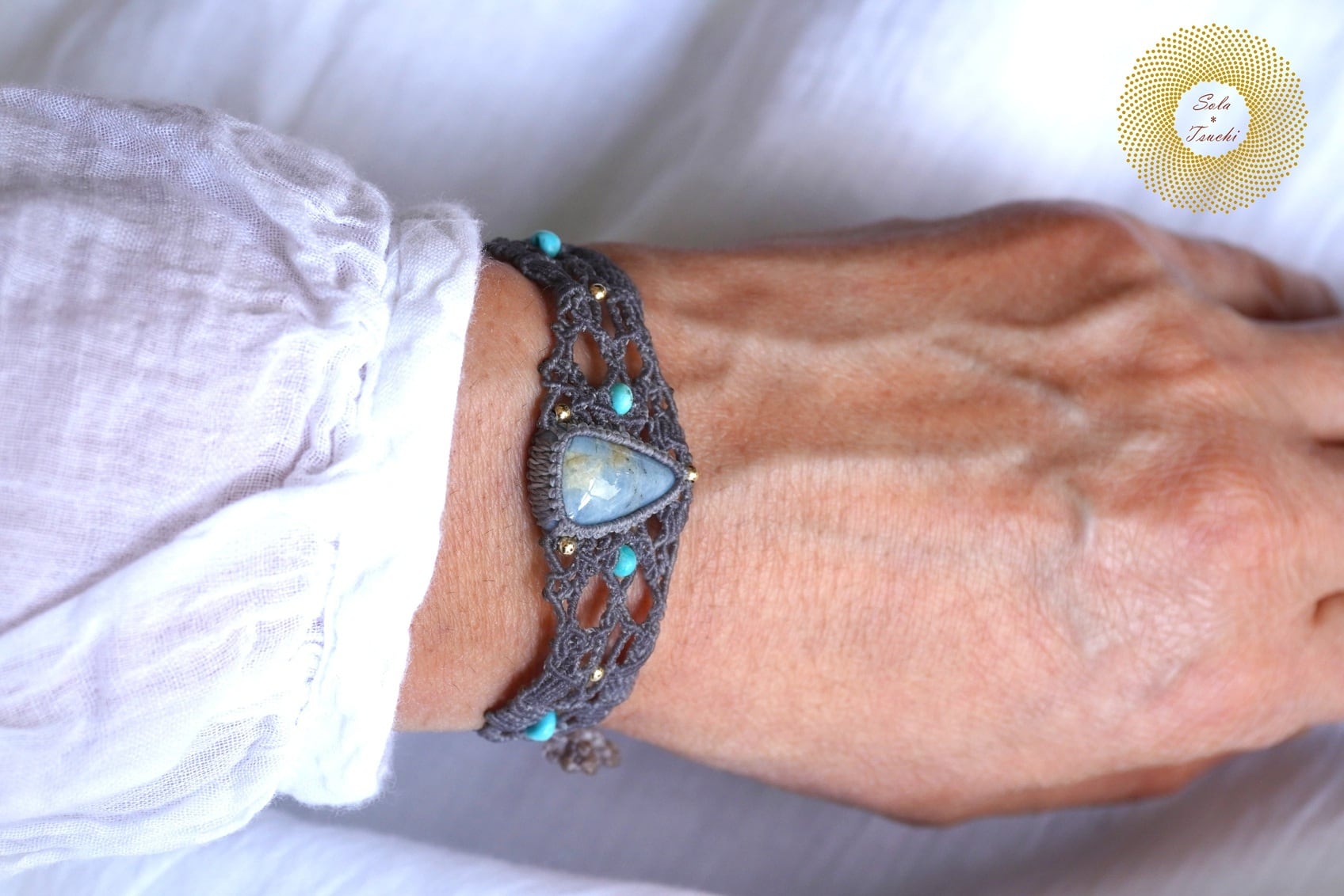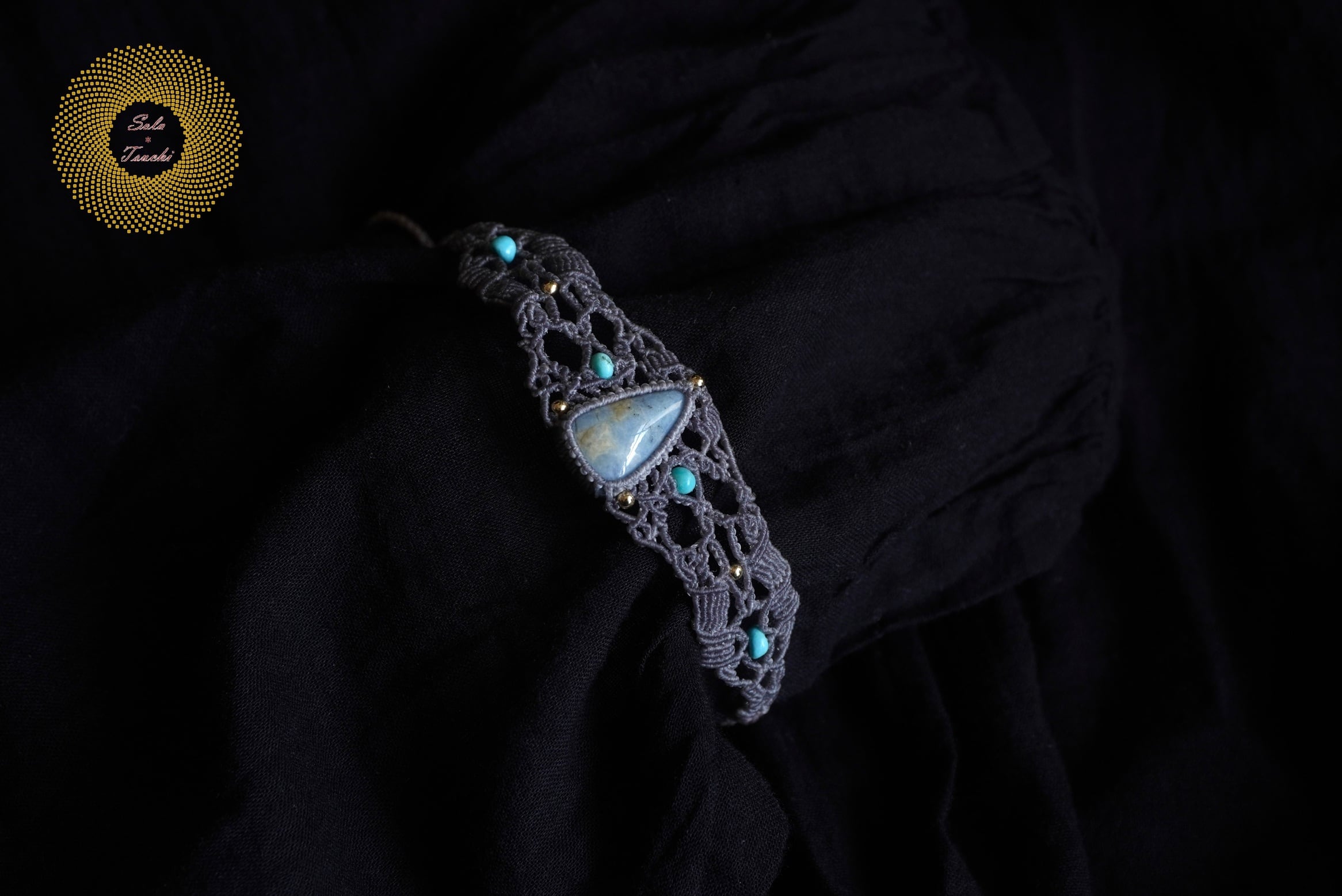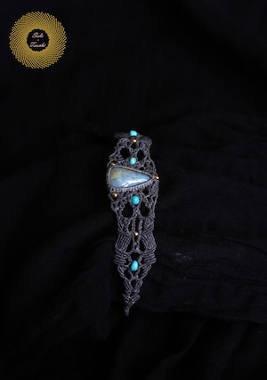 (ワックスコード)鳥取県産 青翡翠のマクラメ編みブレスレット 〜Slow Time〜