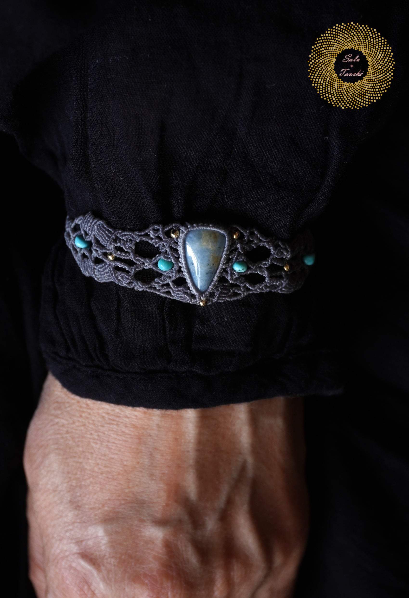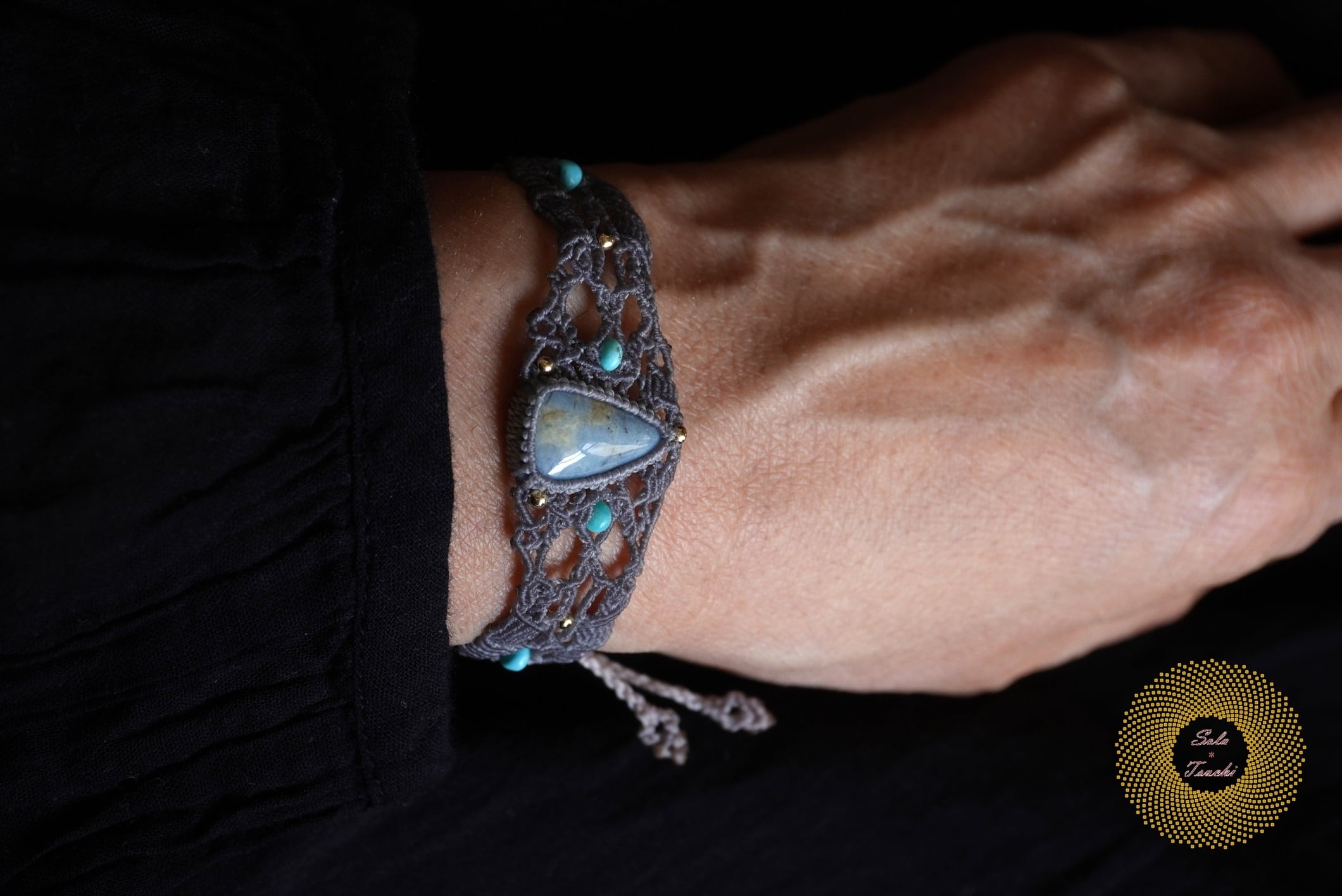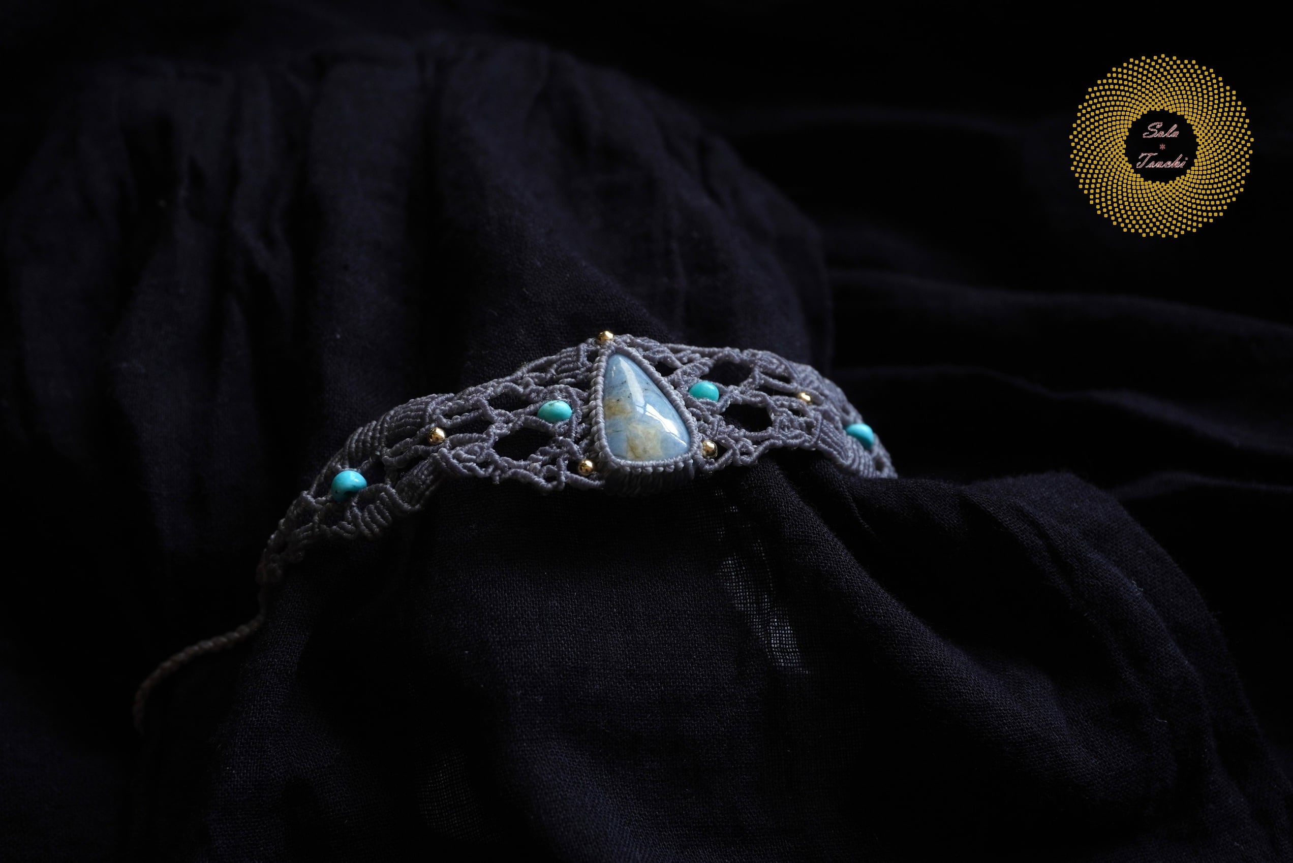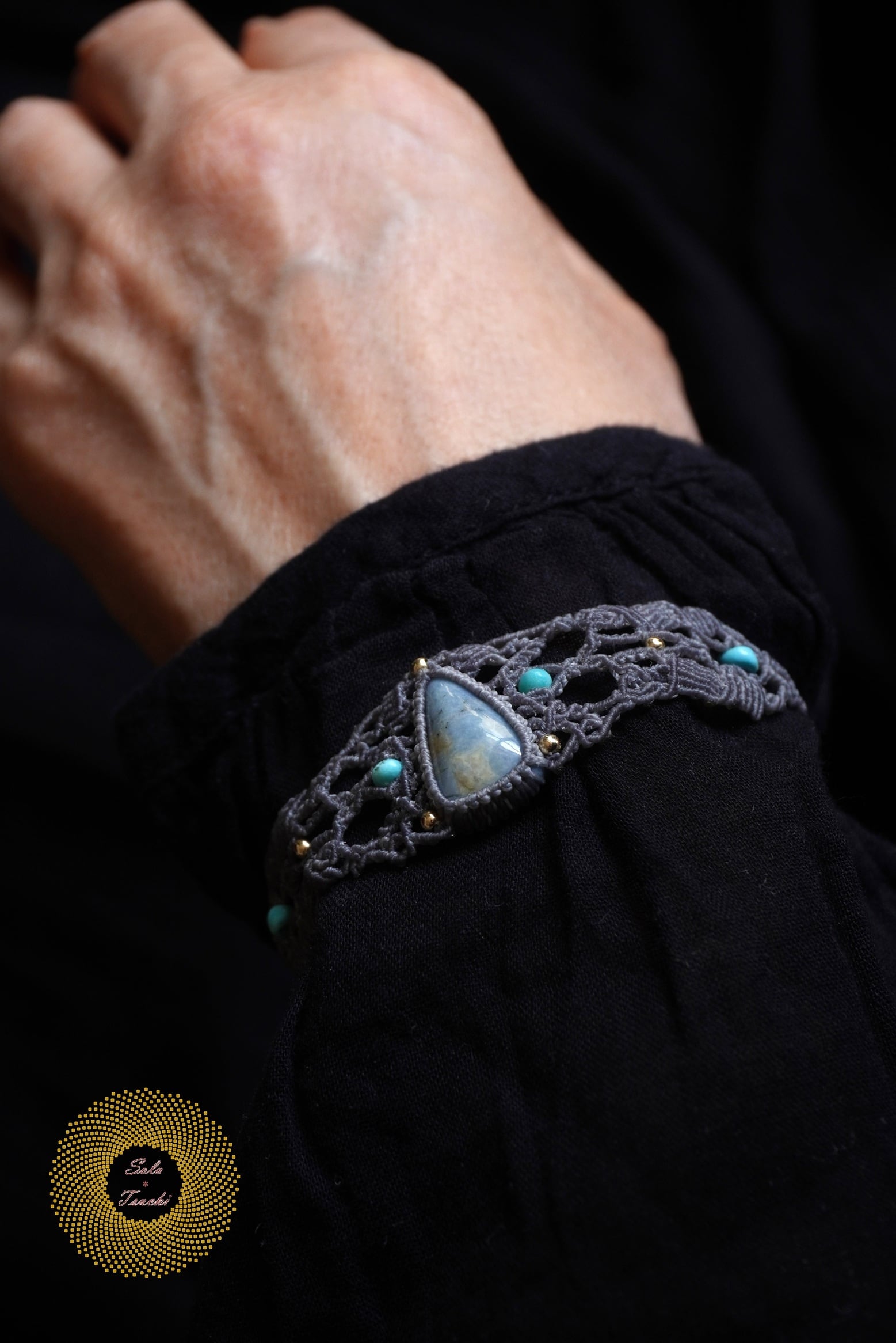 (ワックスコード)鳥取県産 青翡翠のマクラメ編みブレスレット 〜Slow Time〜