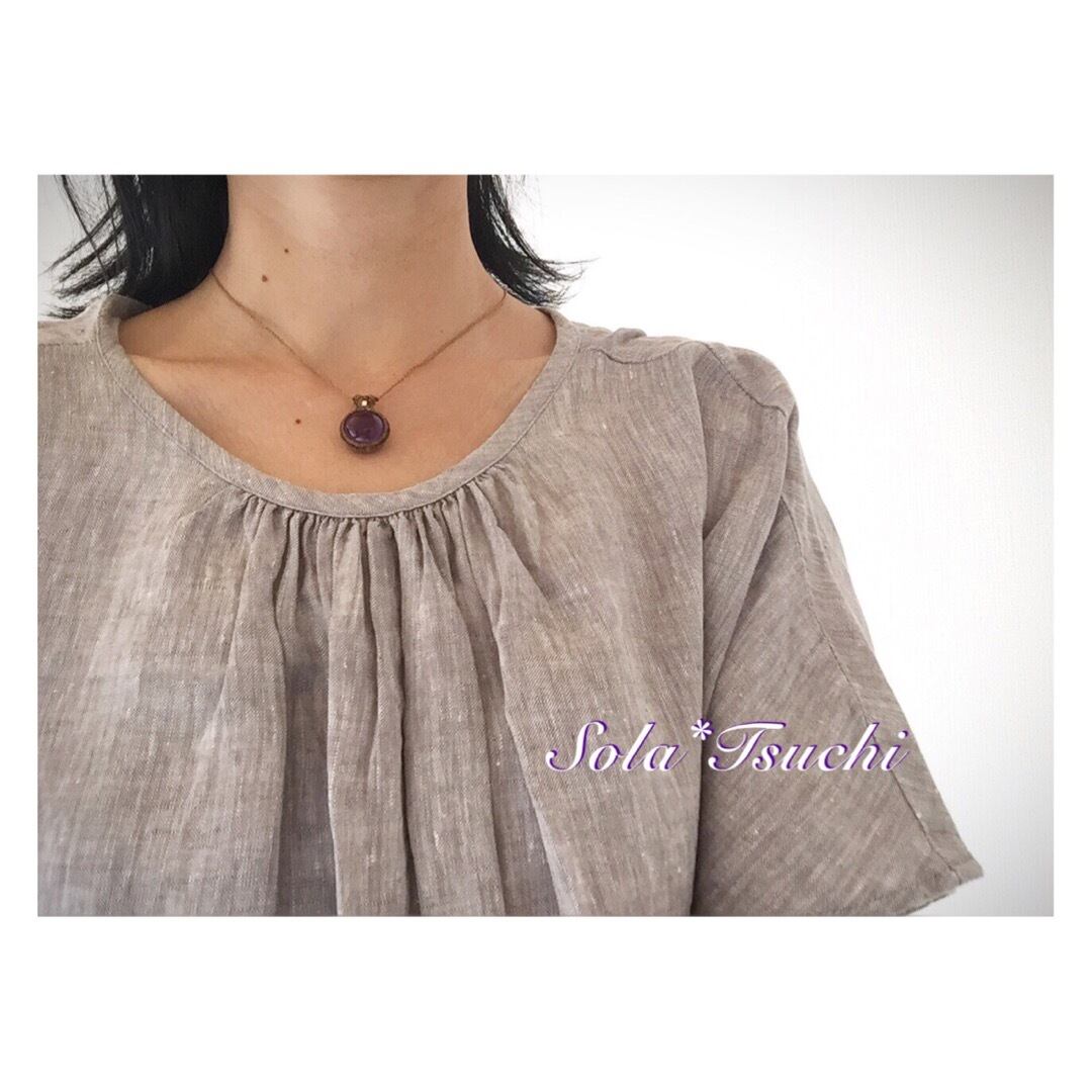 丸アメジストのマクラメ編みペンダント 〜成熟〜