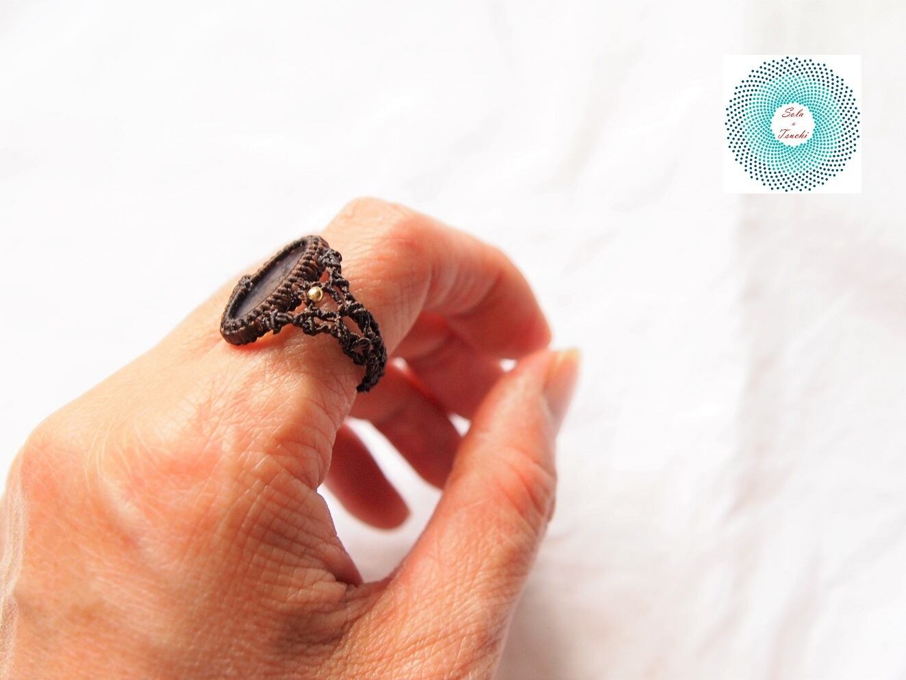 (ワックスコード)デンドリティックアゲートのマクラメ編みリング 〜運命のいたずら〜