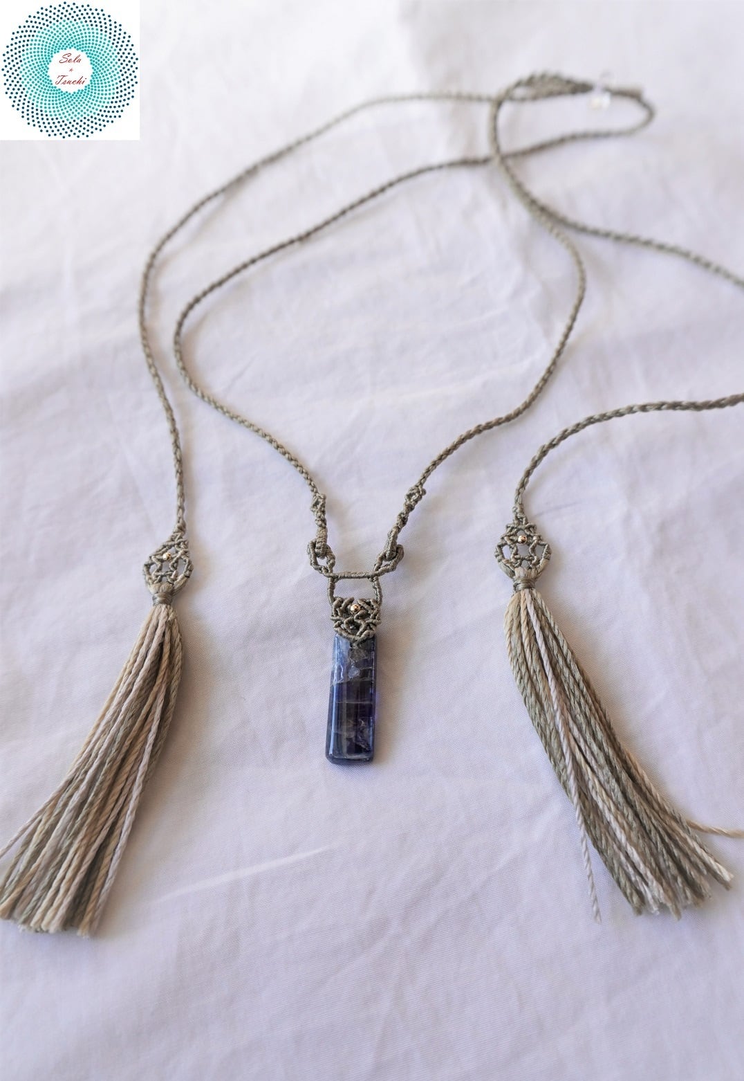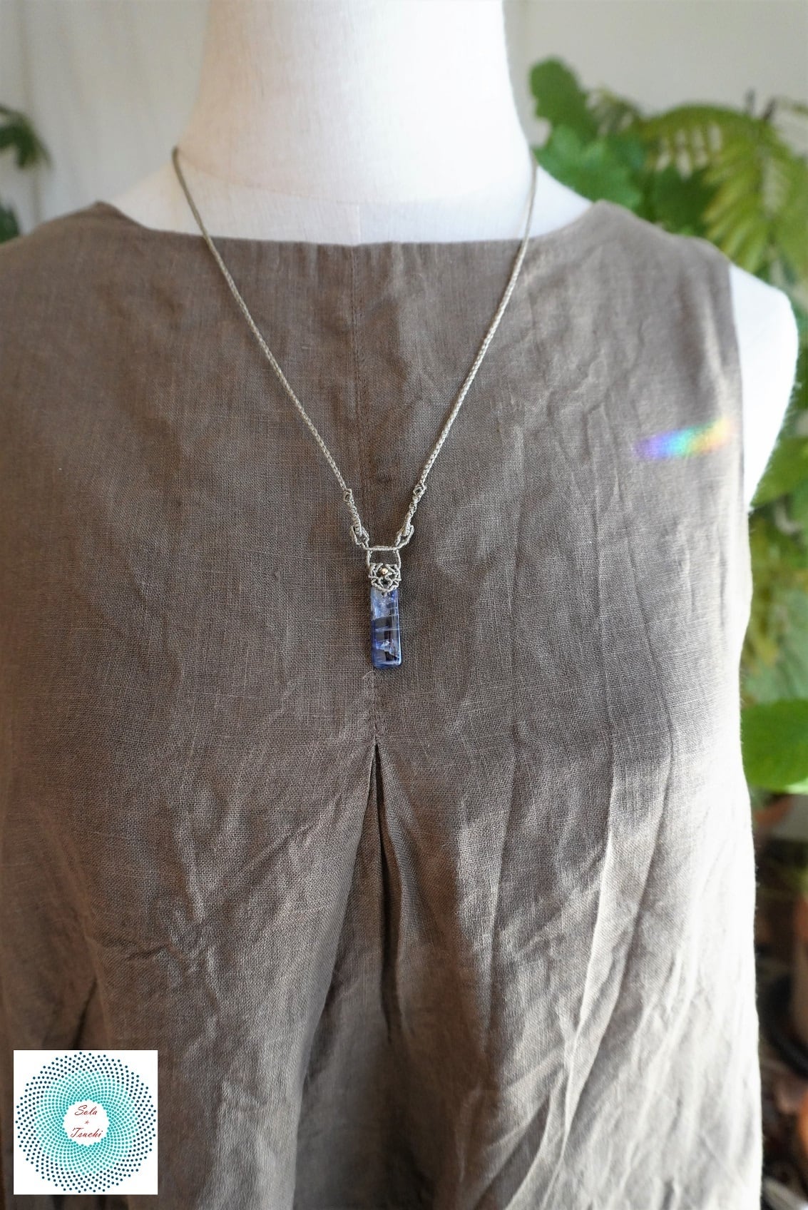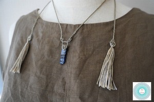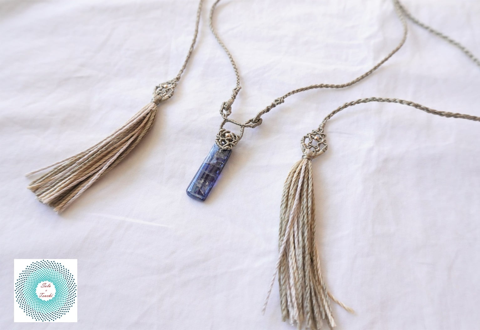 (絹糸)カイヤナイトのマクラメ編みペンダント 〜青写真〜