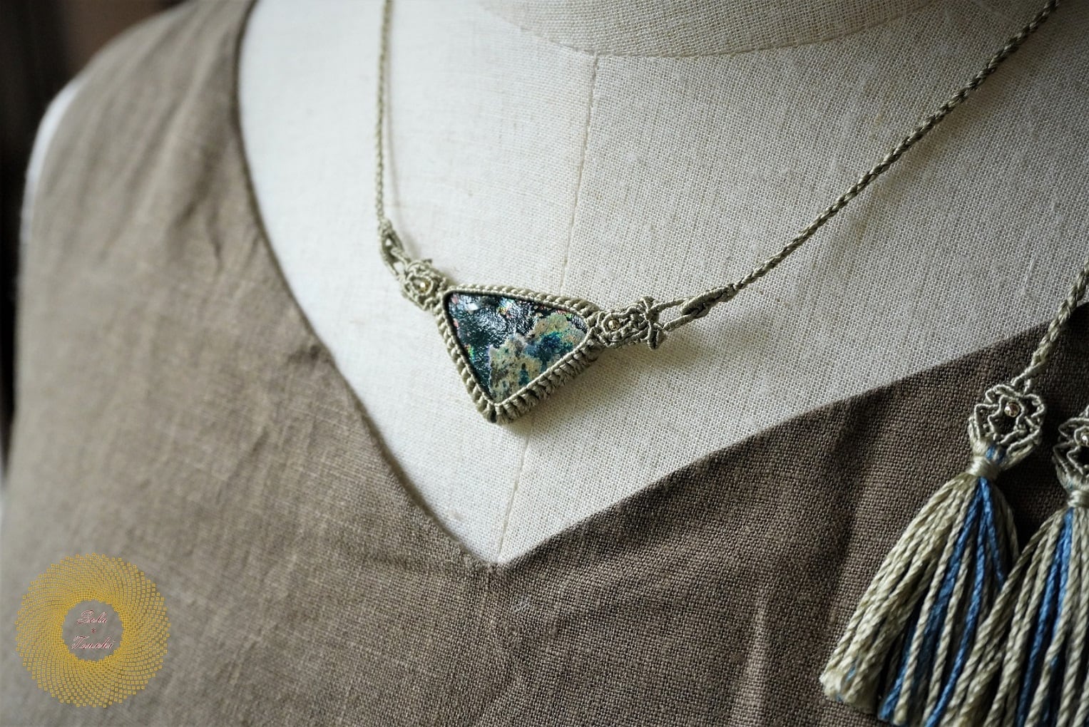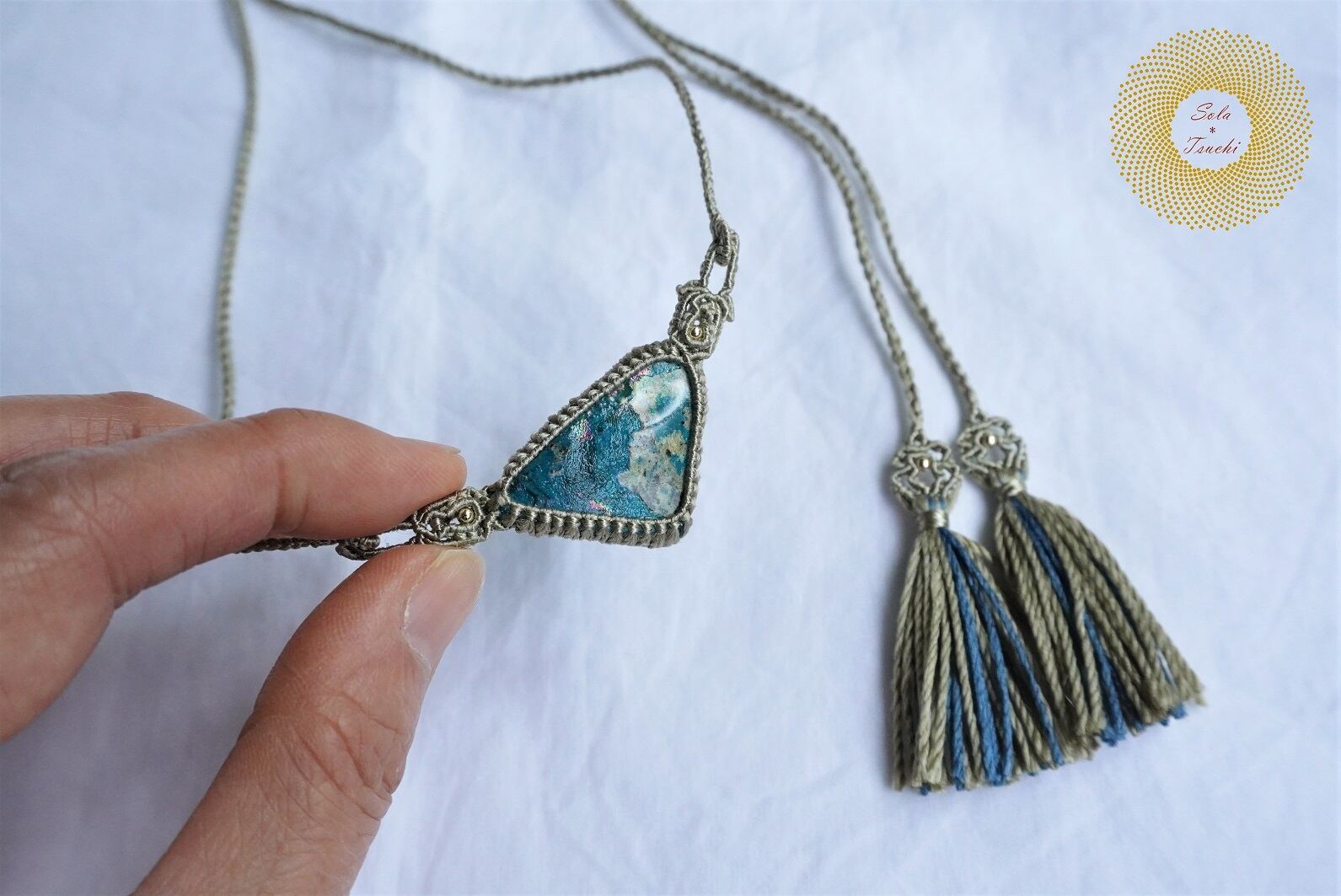 (絹糸)ローマングラスのマクラメ編みネックレス 〜Romantic〜