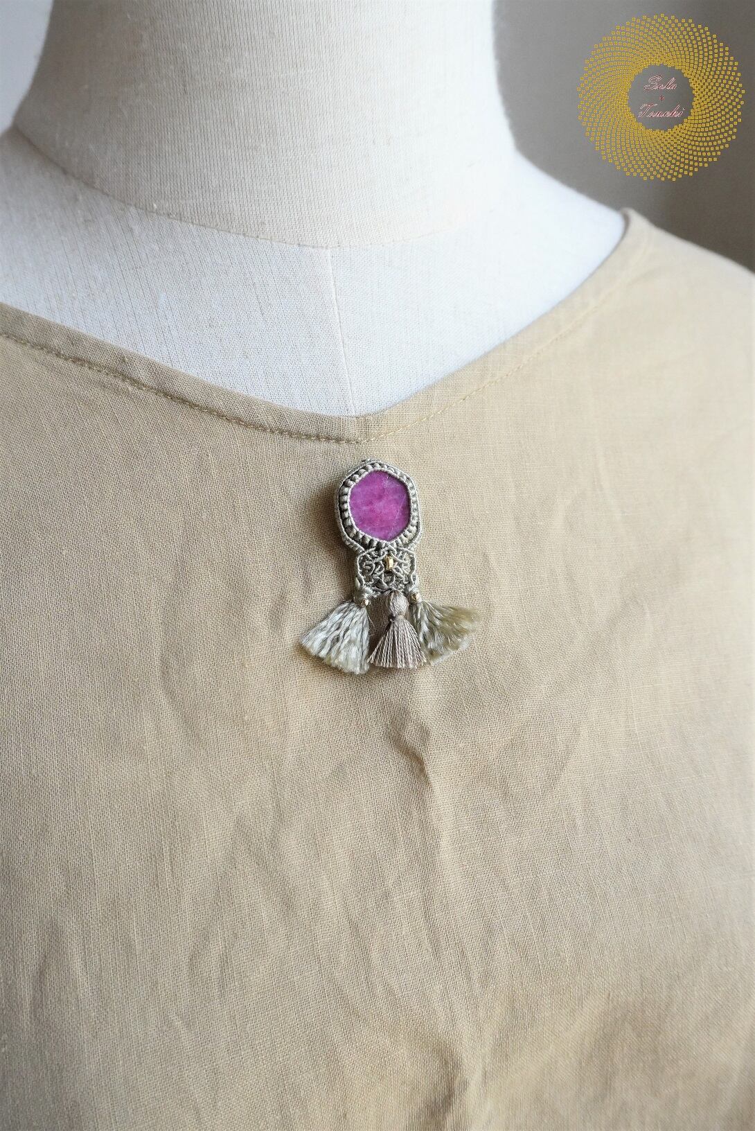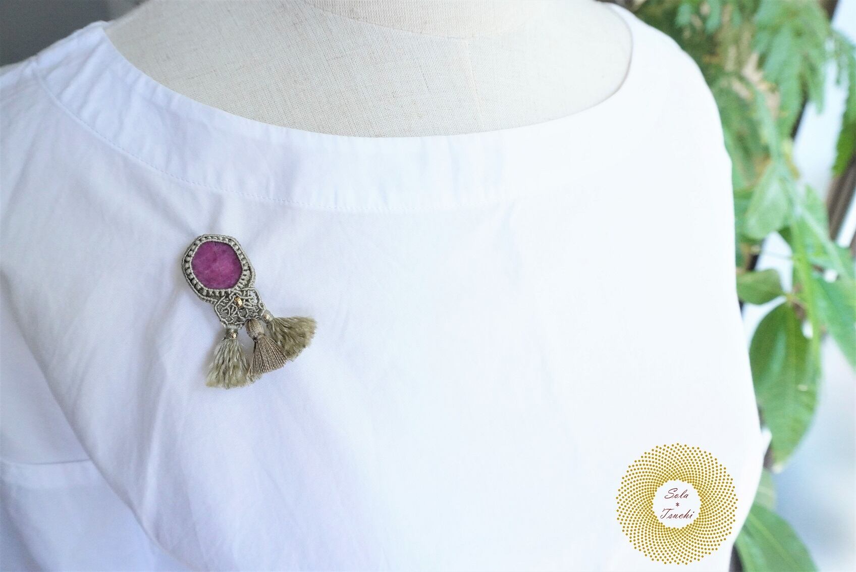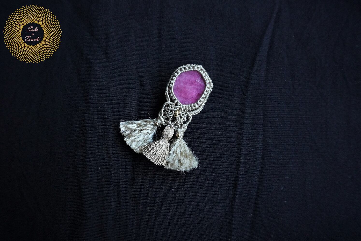 (絹糸)六角形ルビーのマクラメ編みブローチ 〜praise〜