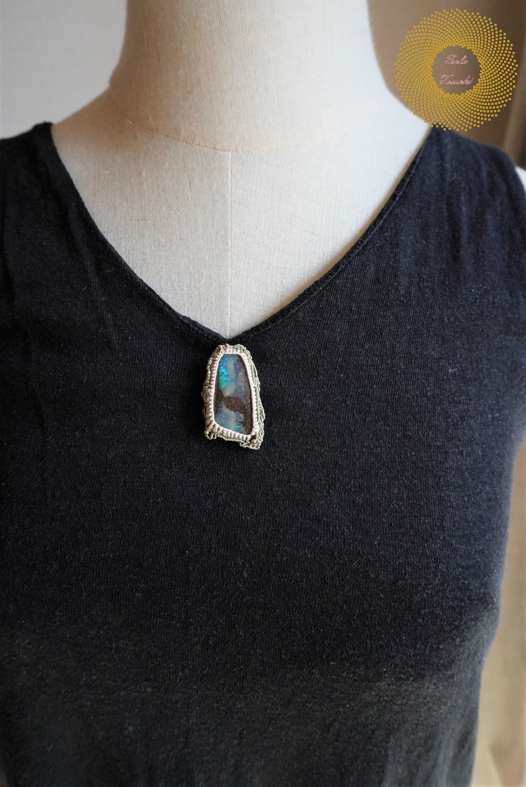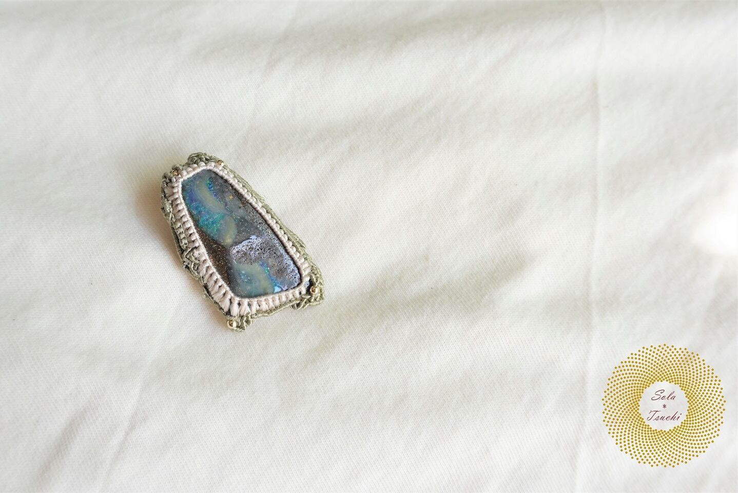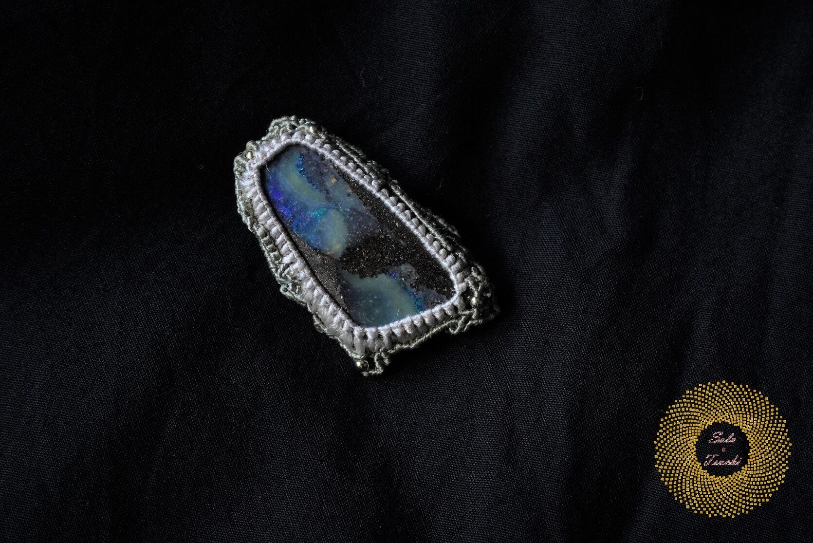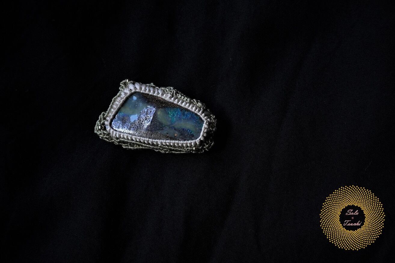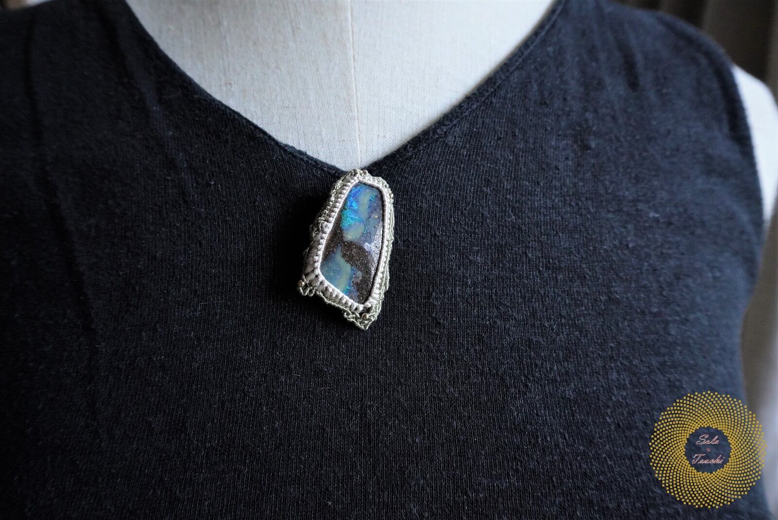 (絹糸)ボールダーオパールのマクラメ編みブローチ 〜Mountain High〜