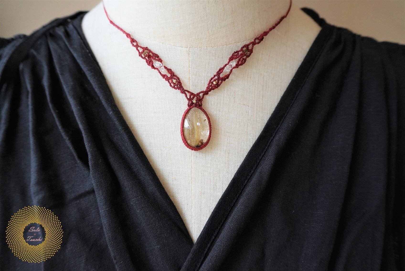(ワックスコード)ルチルクォーツの マクラメ編みペンダント 〜これから〜