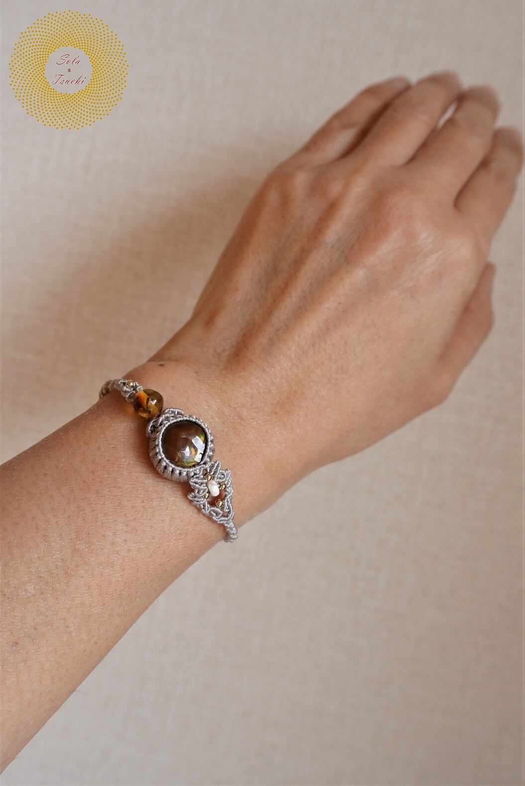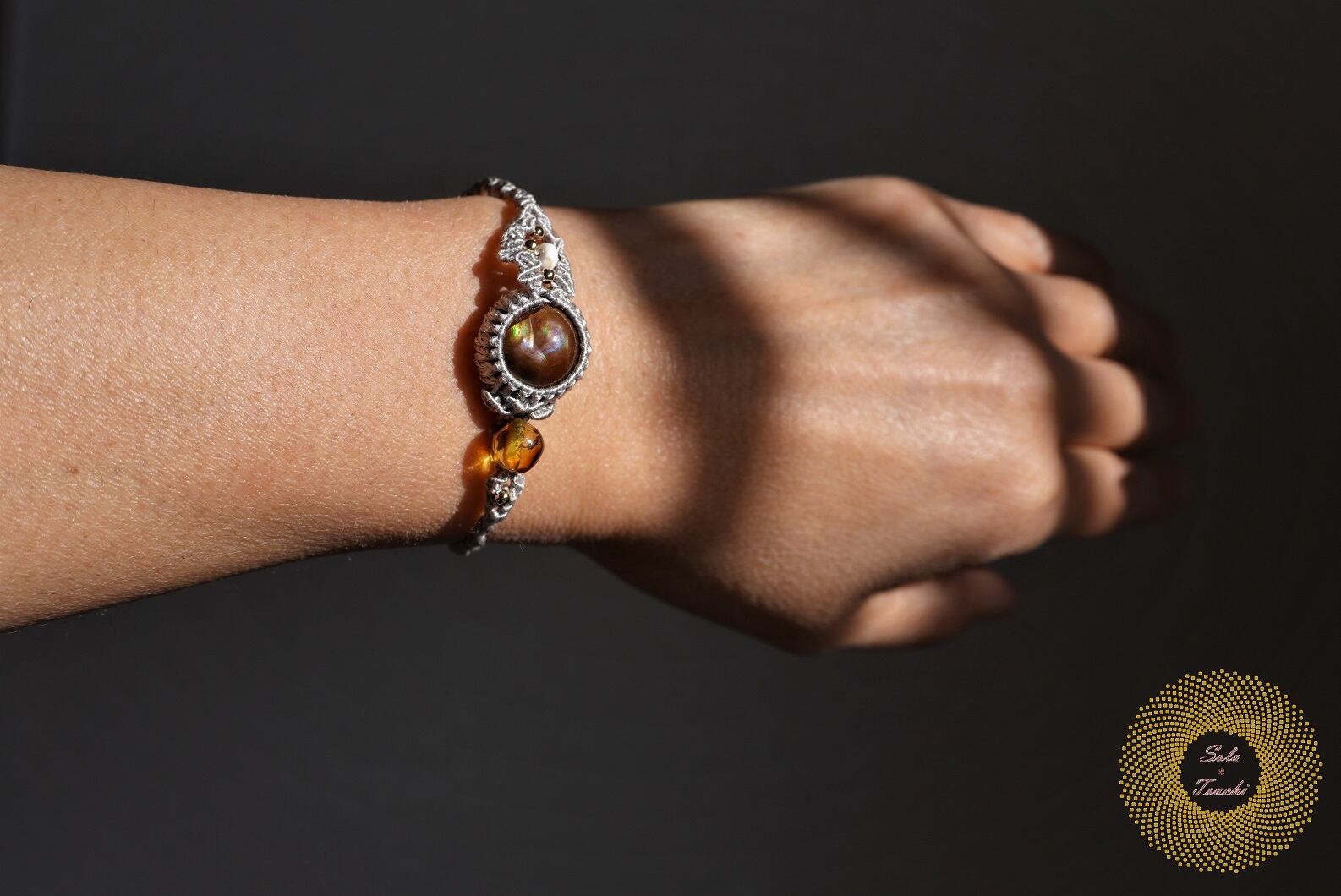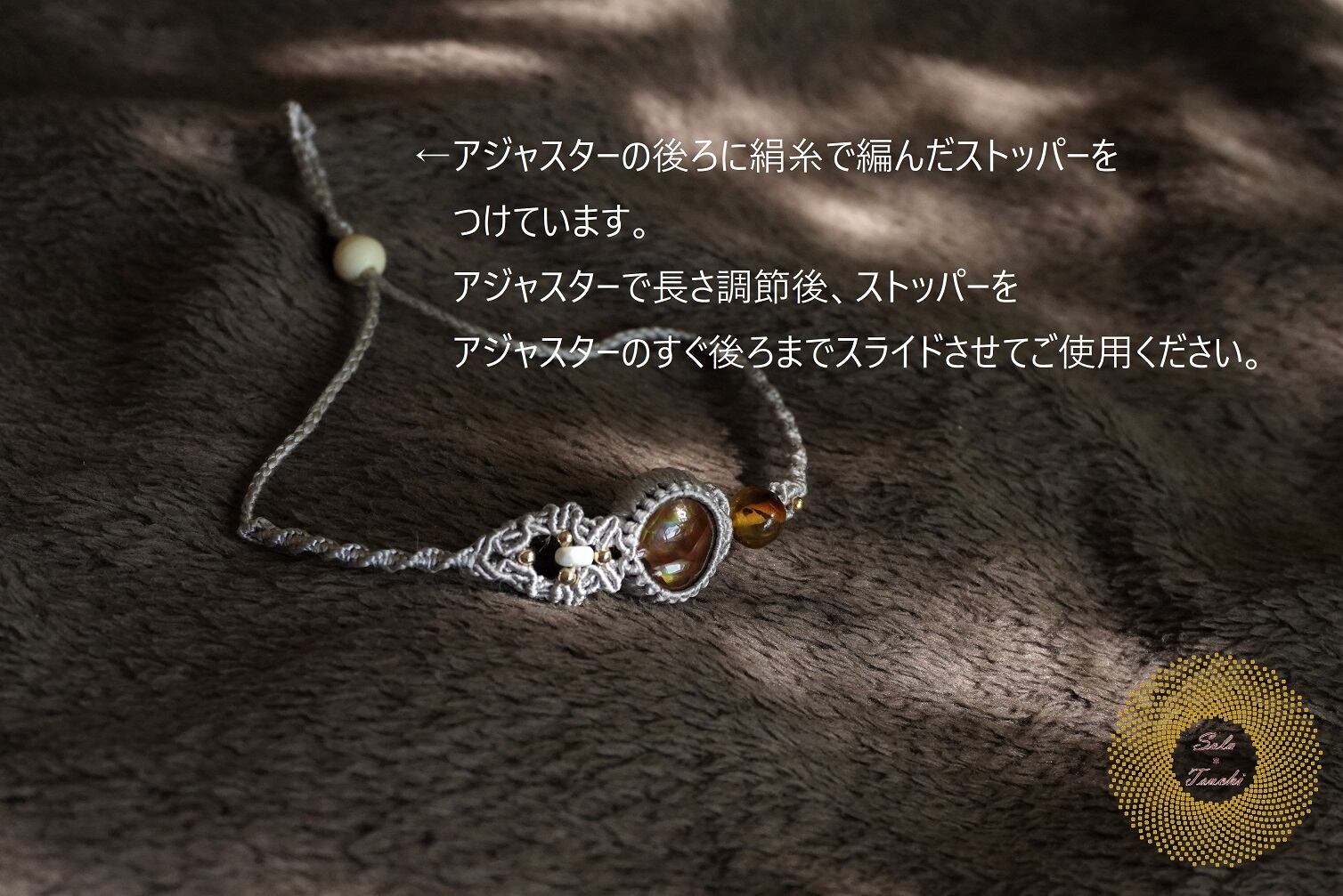 (絹糸)ファイヤーアゲートと琥珀の マクラメ編みブレスレット 〜Step〜