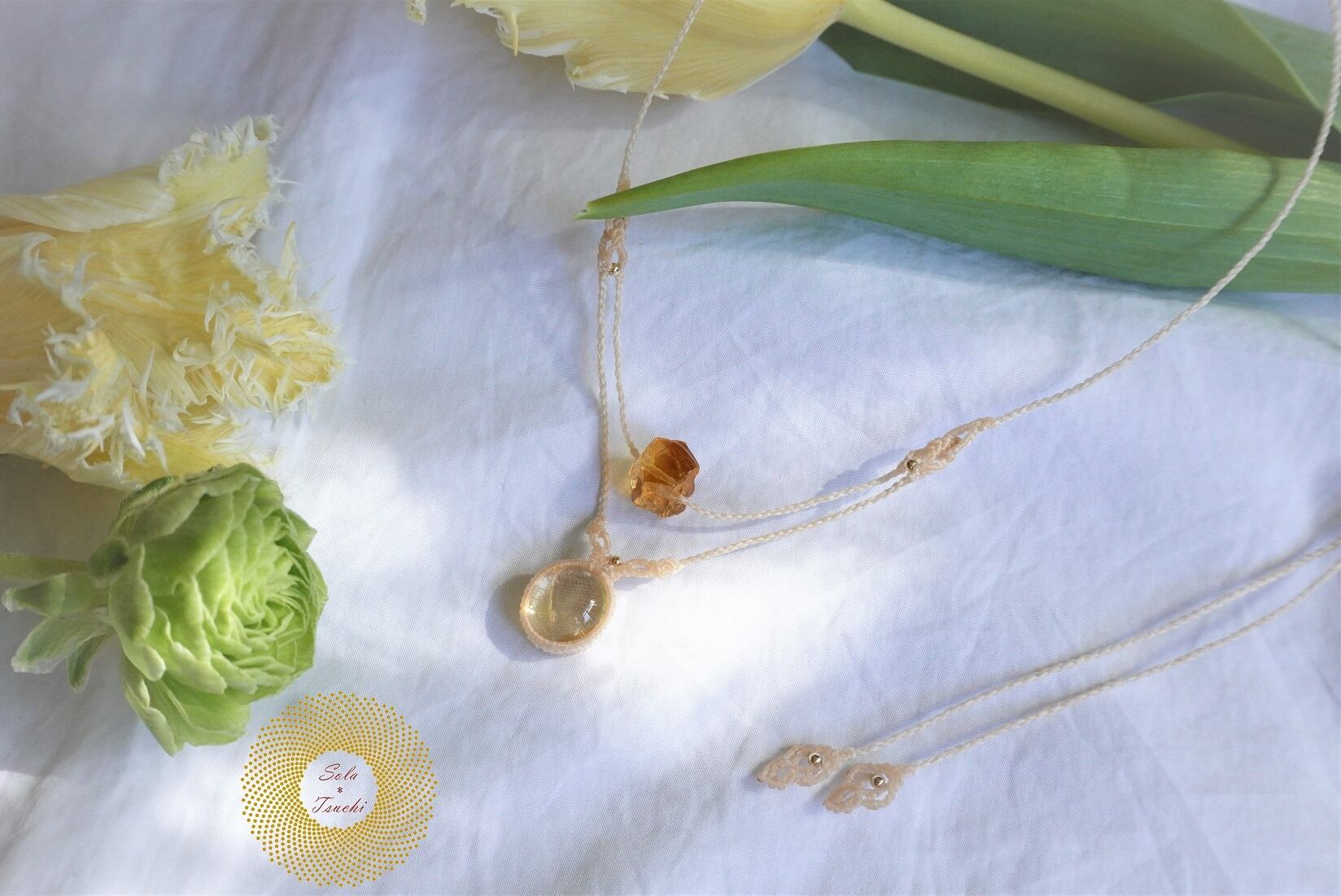 (ワックスコード)シトリン×シトリンの マクラメ編みネックレス 〜Sun wheel〜