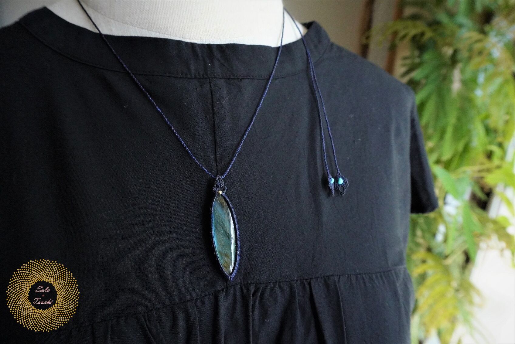 (ワックスコード)ラブラドライトのマクラメ編みペンダント 〜Peacock〜