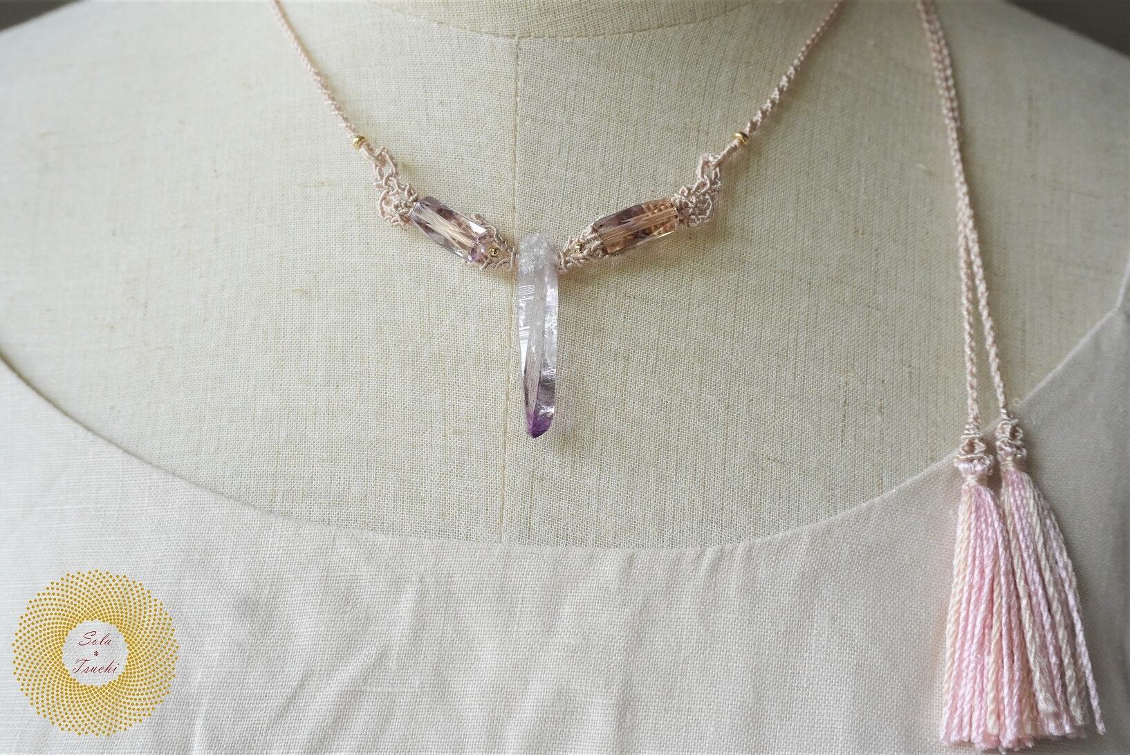 (絹糸)ベラクルス産アメジストとアメトリンのマクラメ編みペンダント 〜Celebrate〜