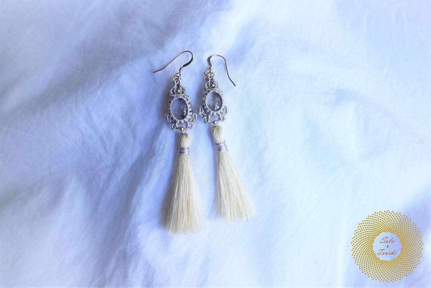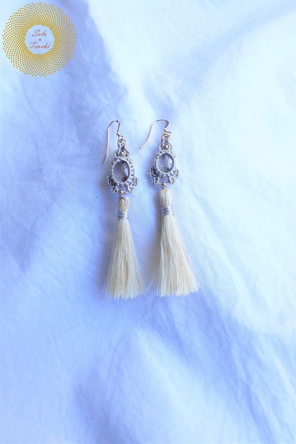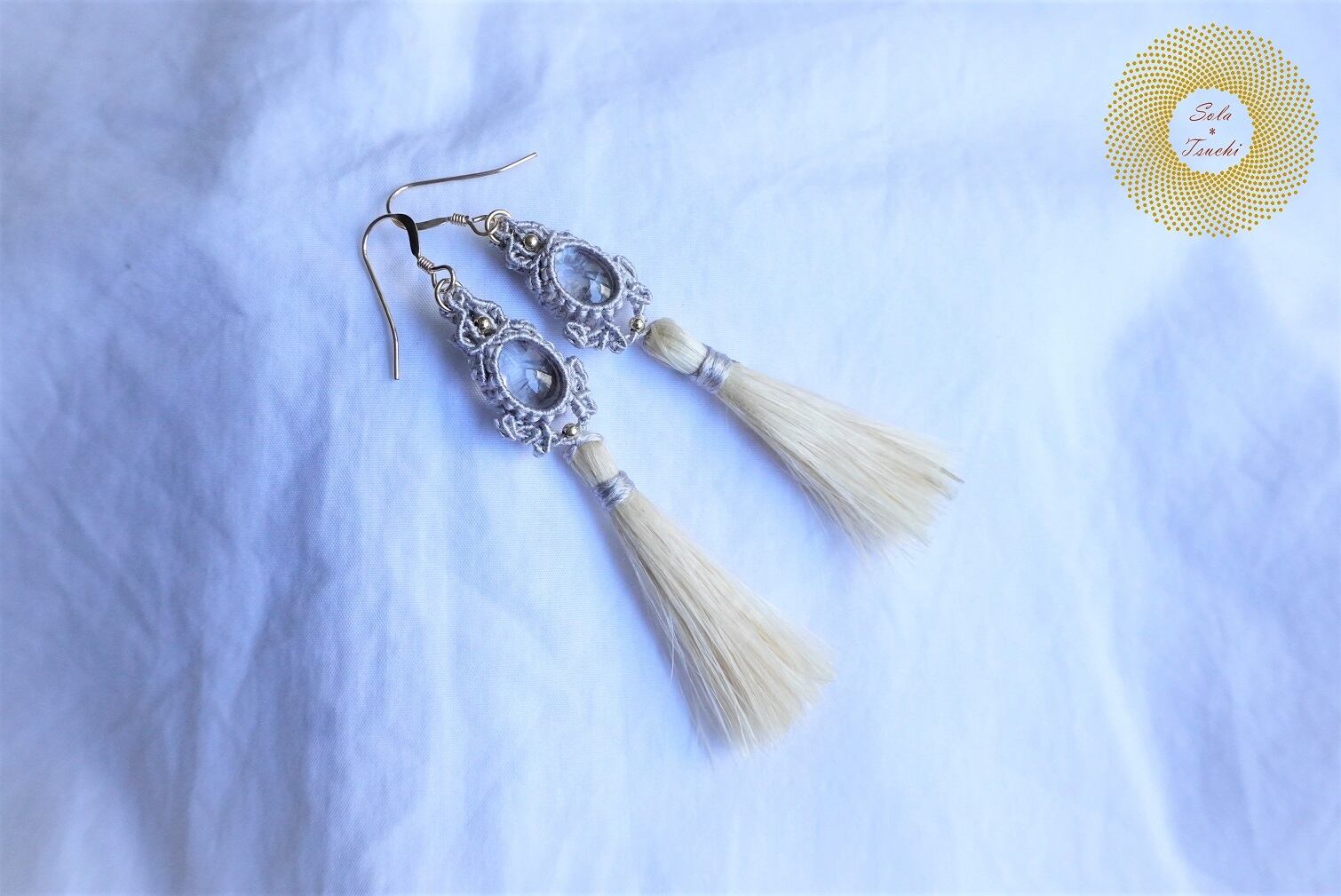 【(絹糸)ブルッカイトinクォーツと精麻のマクラメ編みピアス 〜Awake〜】