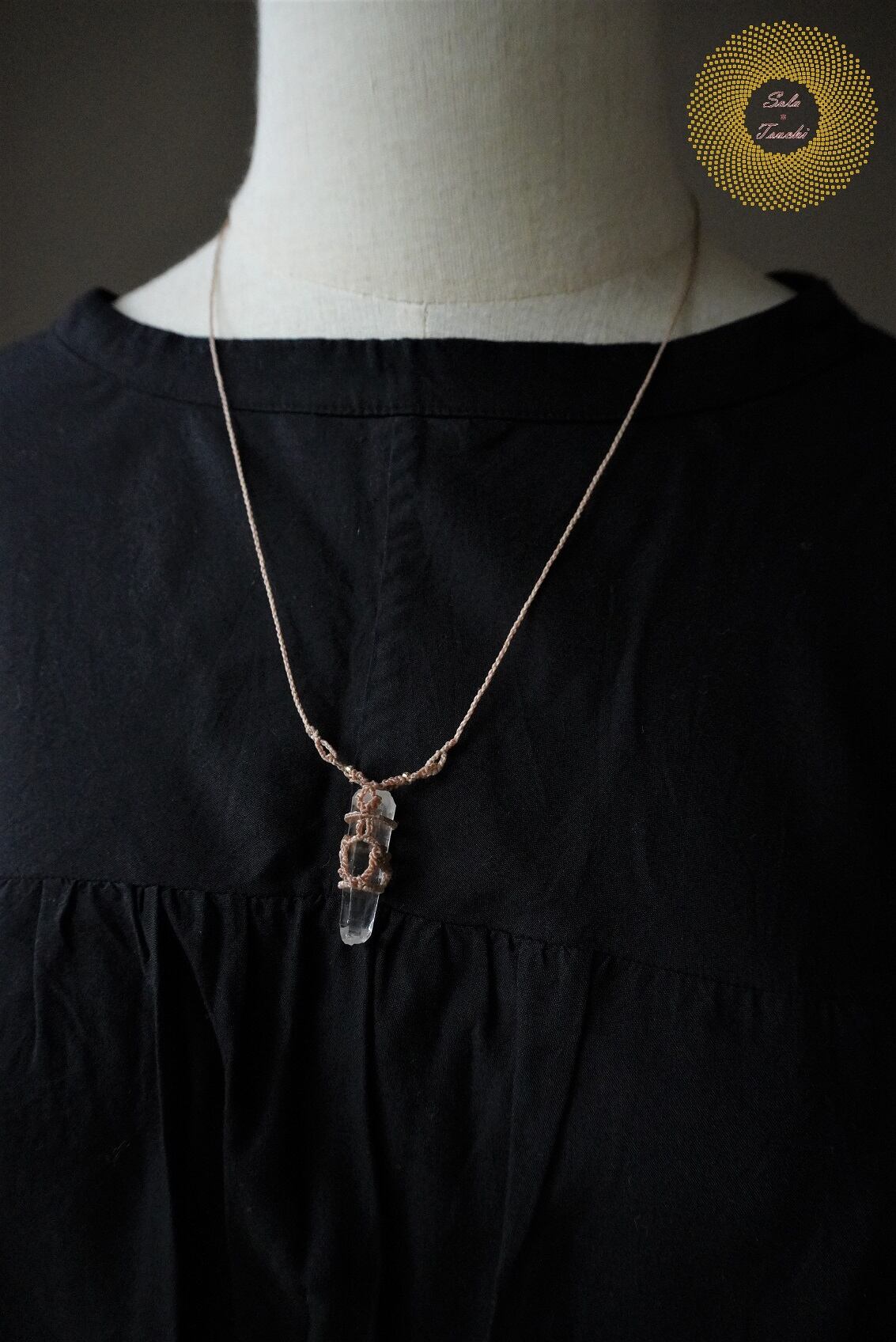 【(ワックスコード)山梨県産水晶のマクラメ編みリバーシブルペンダント 〜I feel 〜】