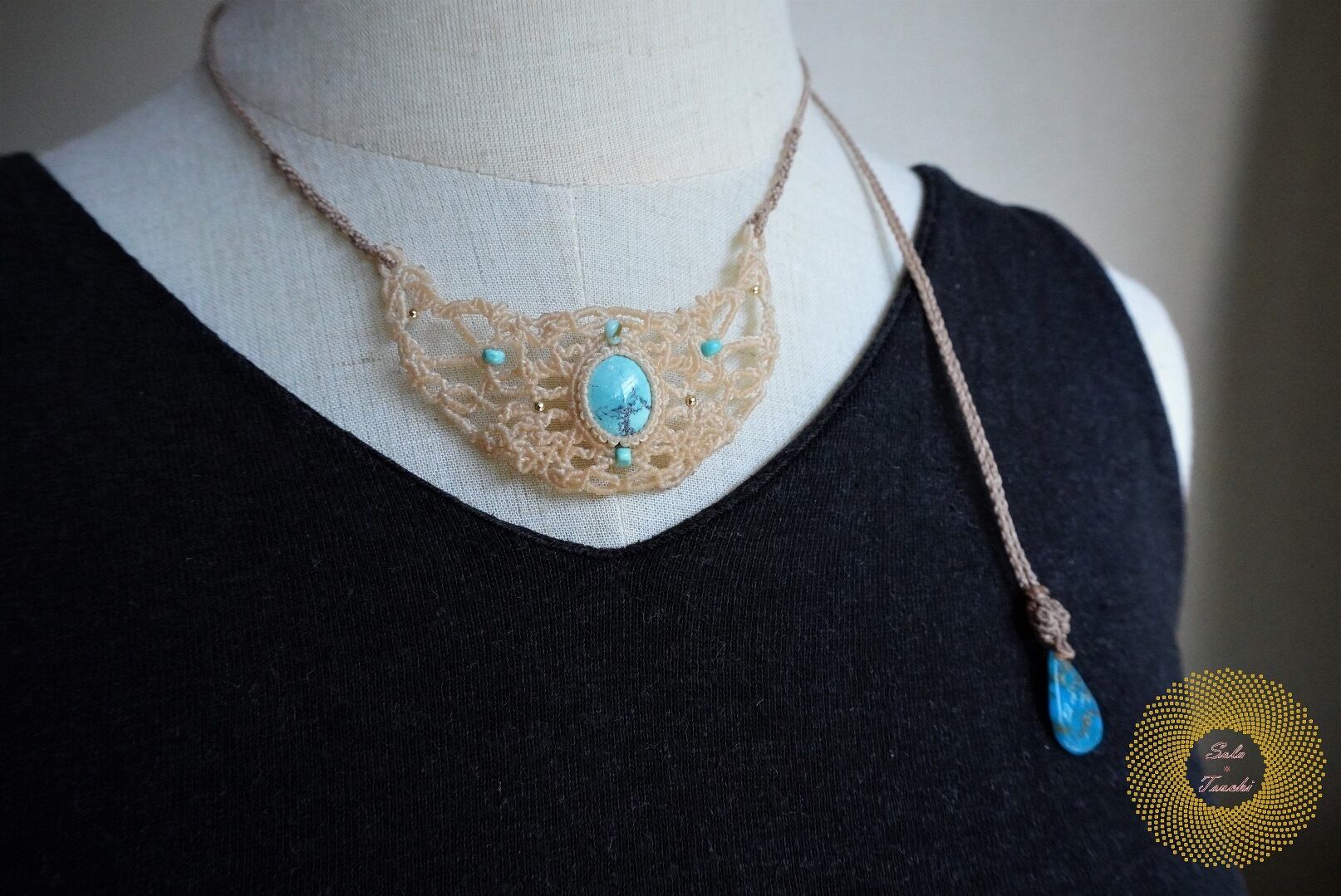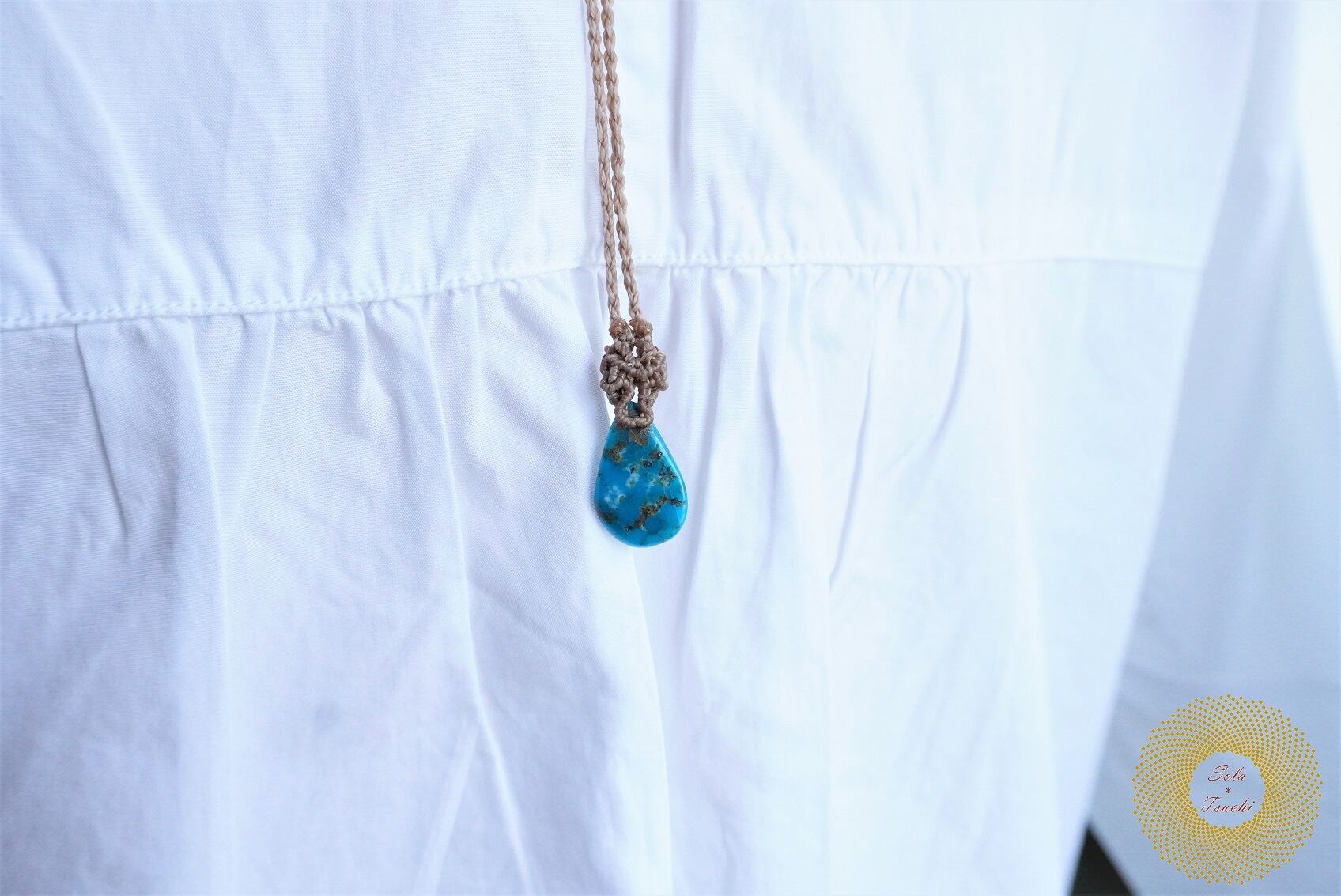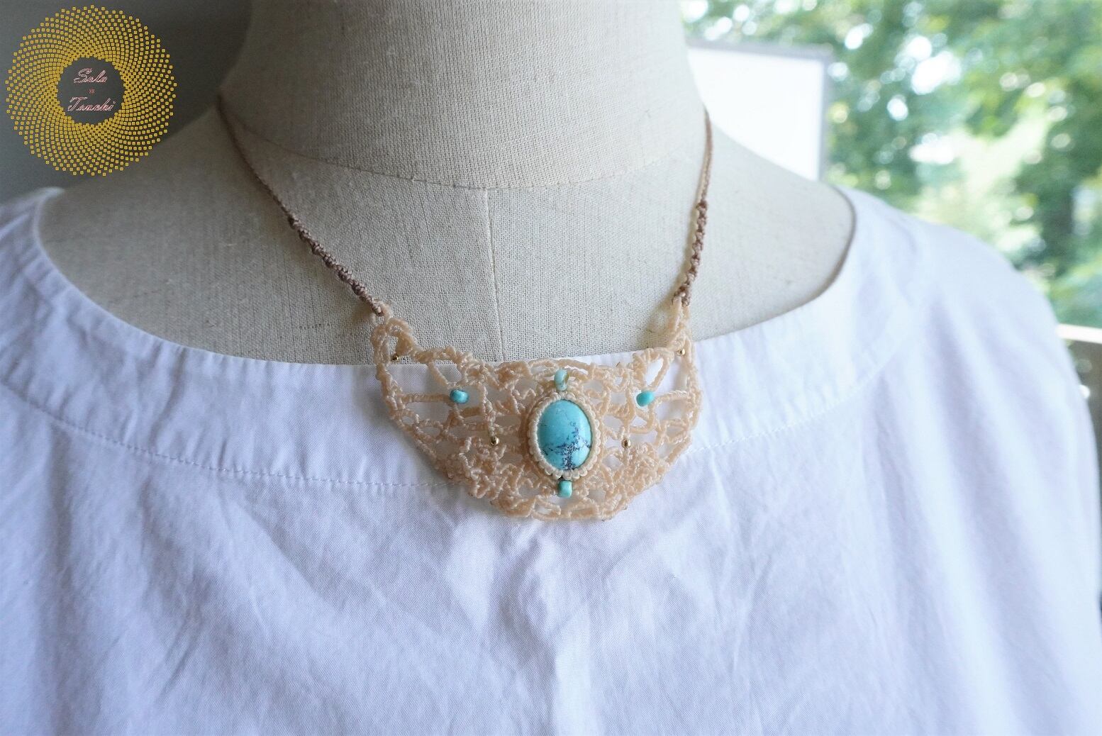 【(ワックスコード)チベタンターコイズのマクラメ編みペンダント 〜天空より〜】
