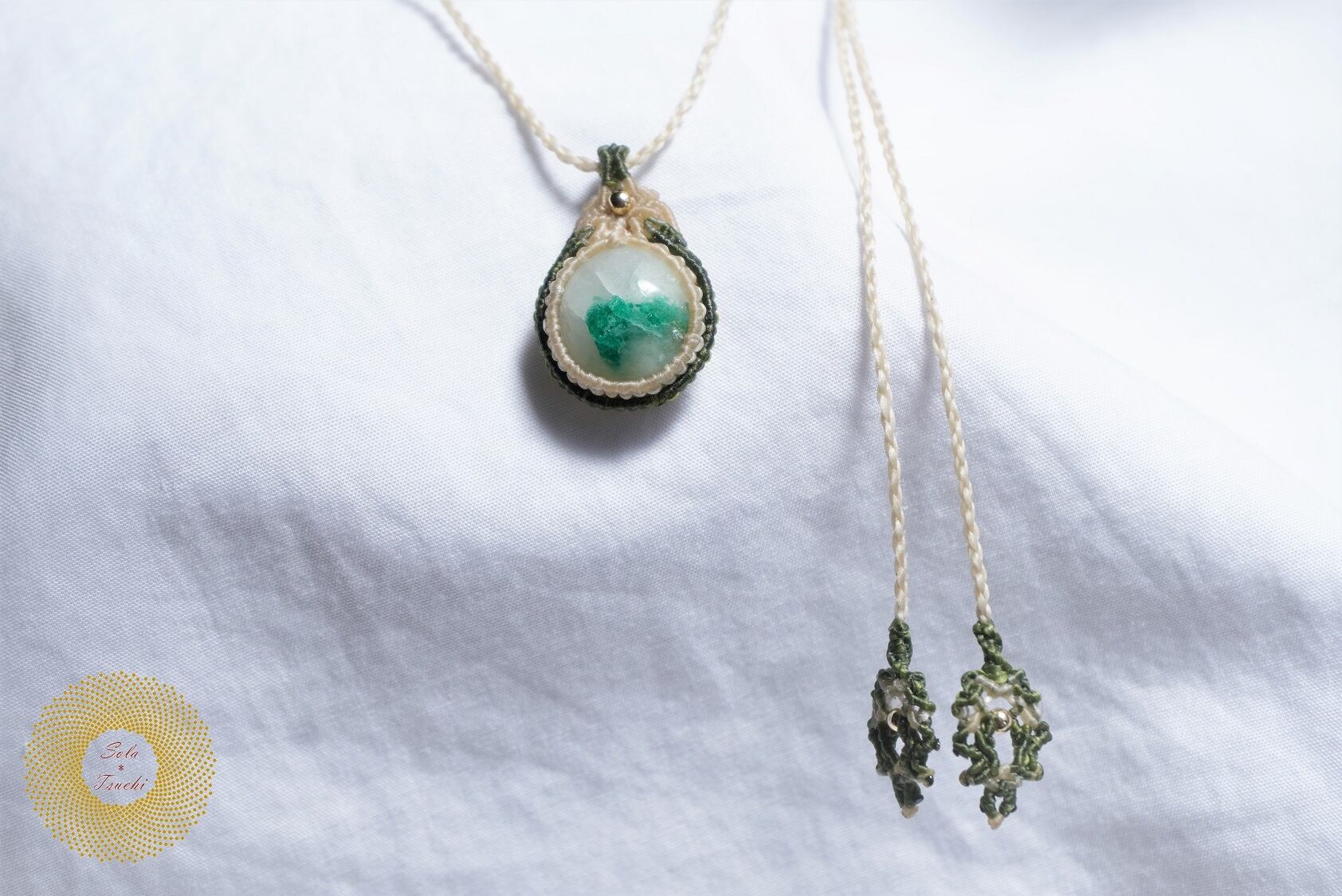 (ワックスコード)エメラルドインクォーツのマクラメ編みペンダント 〜Comet〜